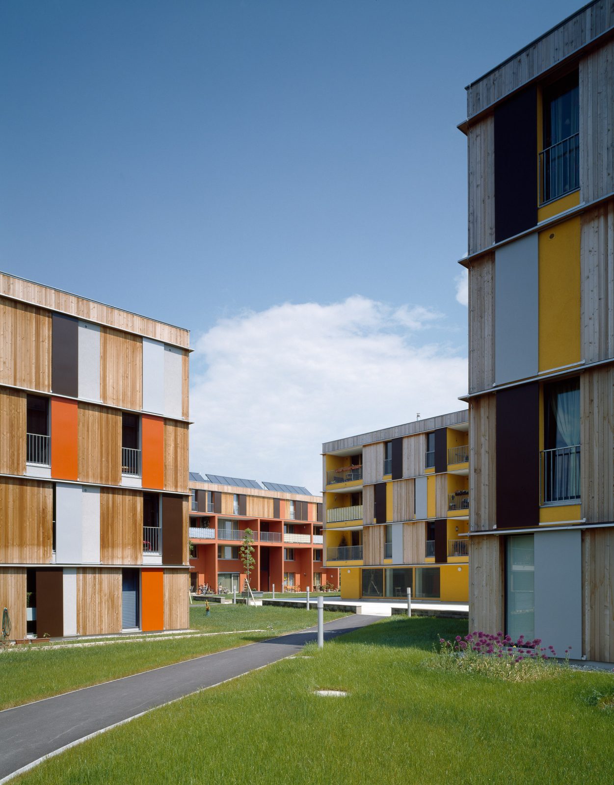 In 2003, the Vienna Land Procurement and Urban Renewal Fund invited tenders for the “timber and mixed-timber construction” of a residential complex with 250 apartments. In the context of the “Climate Protection Program of the City of Vienna”, the city wanted to demonstrate the feasibility of energy efficient timber construction for affordable housing in urban areas. Amendments to the local building regulations paved the way for multi-story timber structures to be subsidised within Vienna’s social housing program.