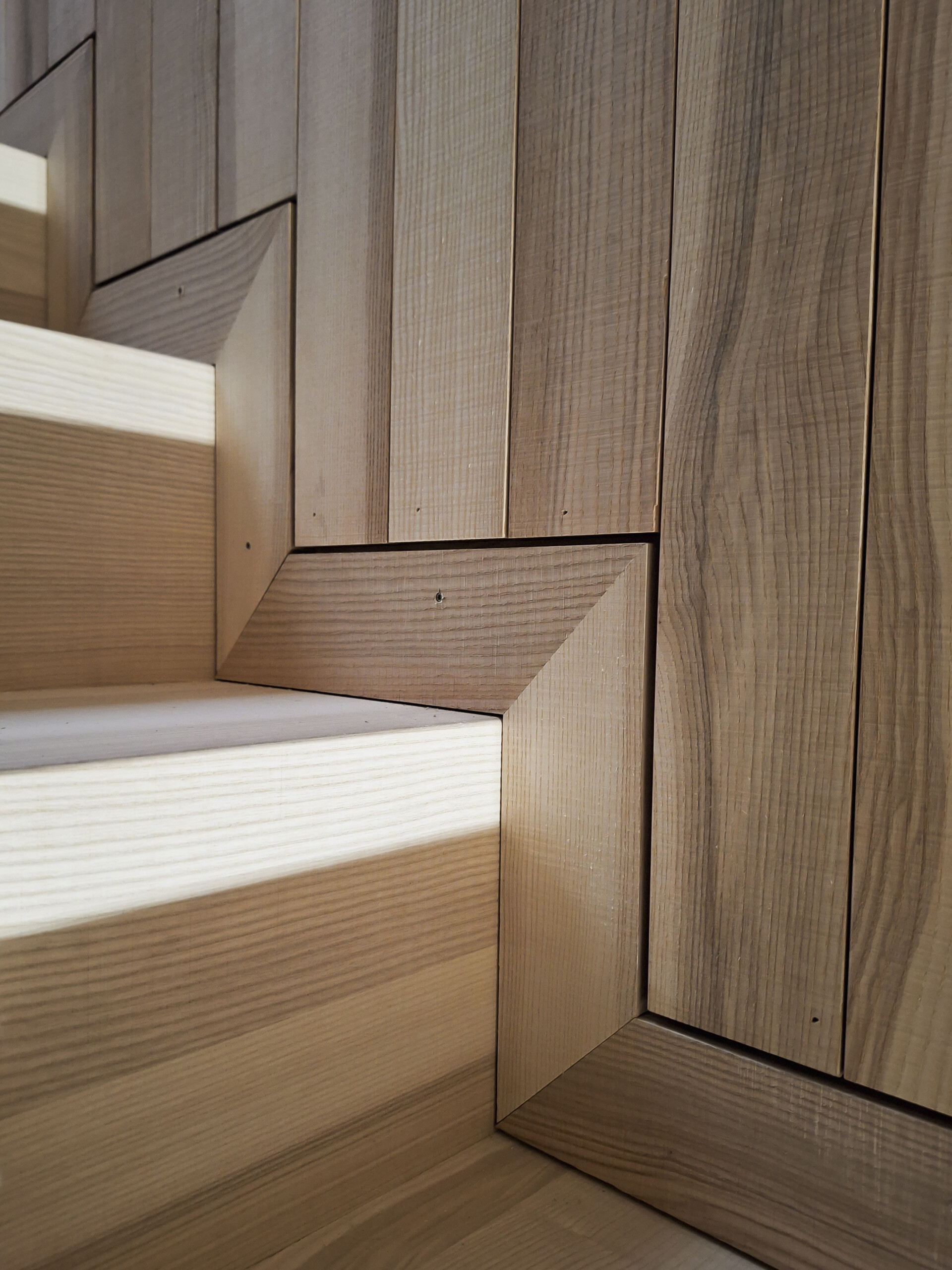 Durch die Verwendung speziell ausgewählter Esche mit feinjähriger Jahrringe rift/halbrift, wird die 3-Schichtplatte mit erhöhter Verleimgenauigkeit in der Planität hergestellt, welche nach dem Lasercutten mit einem Planetenkopf-Schleifvorgang bearbeitet wird, um die angesengte Oberfläche zu entfernen und die Kanten leicht zu brechen.