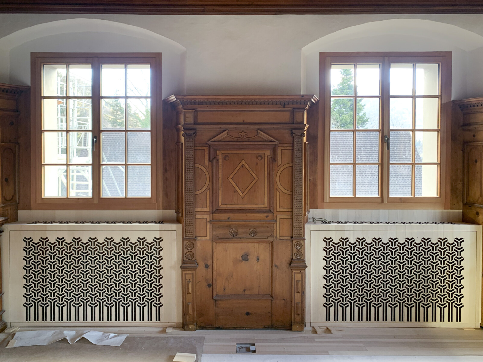 Anschließend wird der Restaurator Edgar Waldner die Verkleidung mit einem passenden Firnis versehen und fachmännisch einbauen, um eine perfekte Anpassung an den Bestand sicherzustellen.