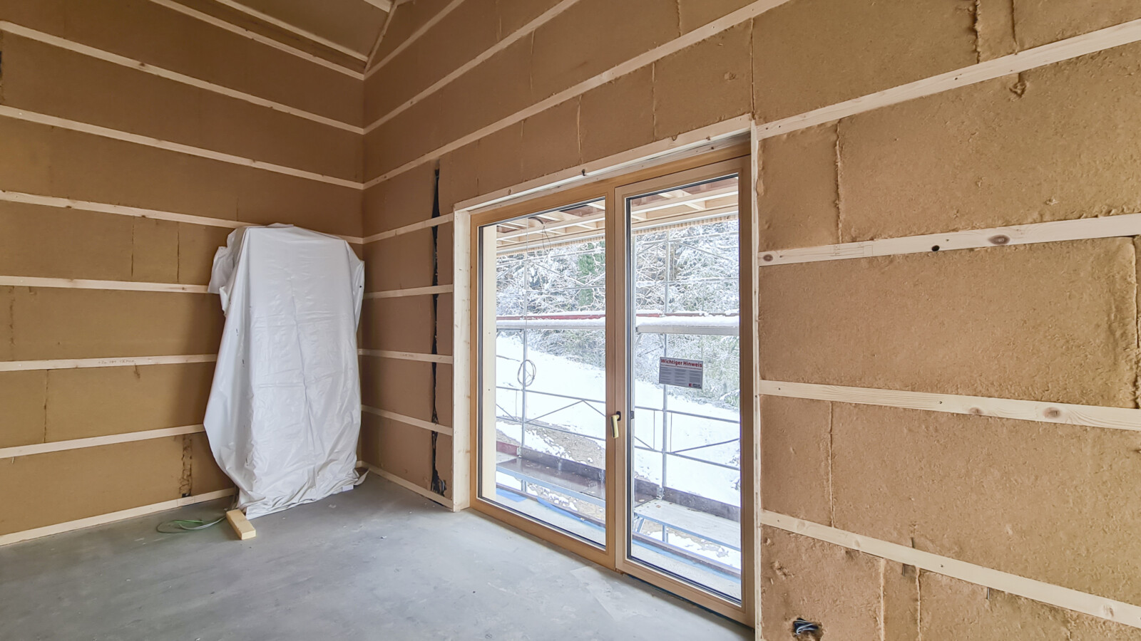 Holzständerwand mit Holzfaserplatten als Dämmung