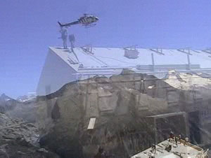 Filmaufnahmen, die während der Aufbauarbeiten der auf 2400 Meter gelegenen Olpererhütte des Architekten Hermann Kaufmann entstanden sind.