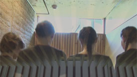 RaumSpurHotel ist ein Kurzfilm, der innerhalb des Projekts „BaustelleHeimat – TourismusMachtHeimat“ in Zusammenarbeit mit dem architekturforum allgäu entstanden ist. Drehort ist das Hotel Chesa Valisa in Österreich/ Hirschegg. Bewegungsskizzen von vier hauseigenen MitarbeiterInnen werden in Bezug zu architektonischen Elementen des Alt- und Neubaus gestellt. Die gestisch reduzierten Bewegungen sind unter Anderem angelehnt an eine vorausgegangene Hausführung durch den Hotelbesitzer Klaus Kessler. Beispielsweise sitzen die Darsteller im Gastraum metaphorisch für ein schon immer Seiendes, ohne dass „dazu gefügt oder weggenommen“ wurde. Eine Bescheidenheit des Neu-Anbaus , die sich nicht über das 500 Jahre alte Gebäude erhebt, war auch eine der architektonischen Herausforderungen für den Architekten Hermann Kaufmann. Die MitarbeiterInnen gehen teils blind tastend, teils sich den Holzkonstruktionen einfügend oder schwebend durch ein Sichtfenster zwischen alt und neu… Es entstehen scheinbar weitere Räume, auch durch Überblendung mit Szenen im Freien, oder ein sozusagen innerer Raum im Hotelzimmer zu Szenen zwischen anonym, intim, anwesend, abwesend, an einem Badezimmerspiegel vorbei schreitend…
