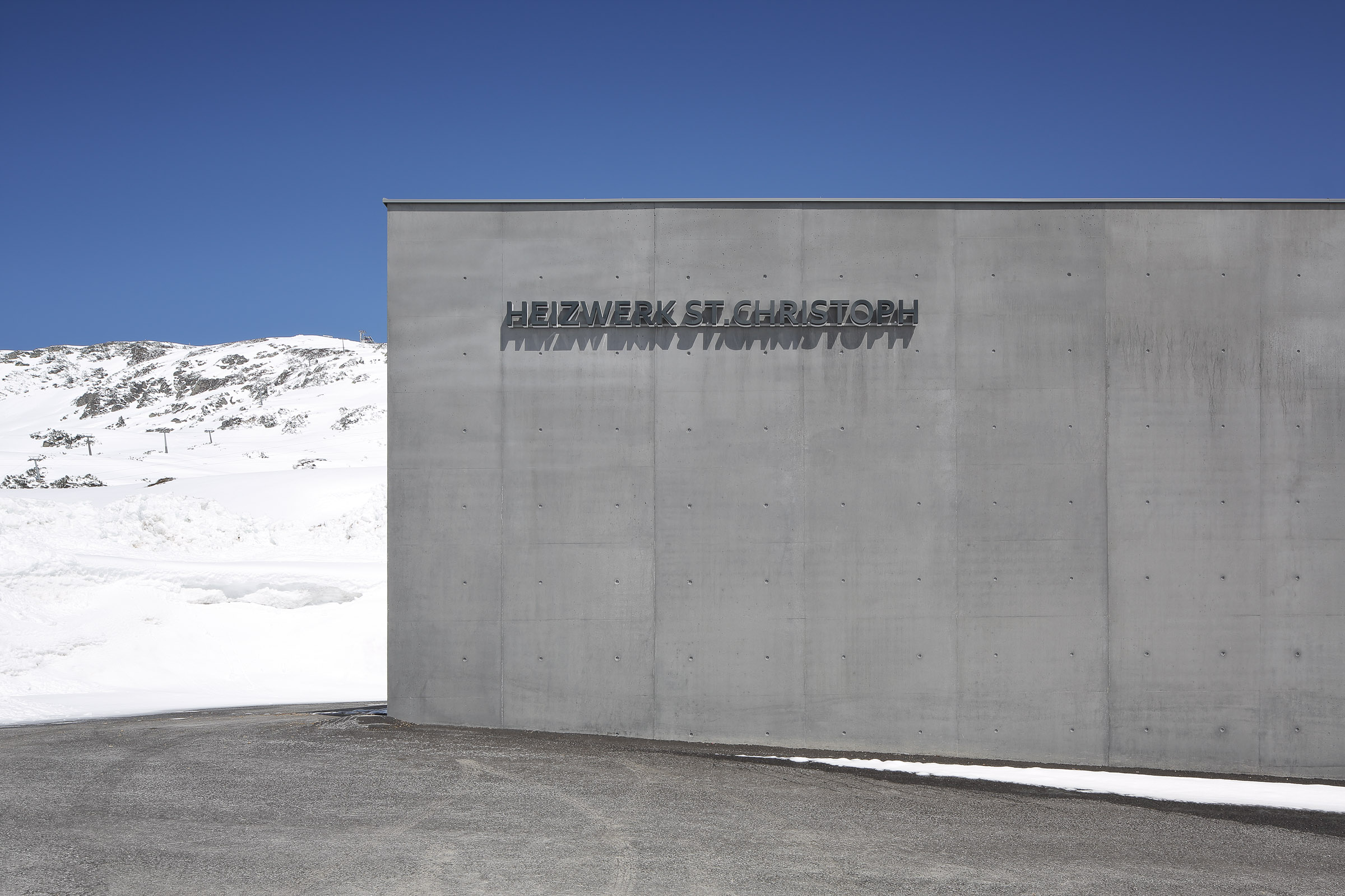 Das Biomasseheizwerk liegt in offener Landschaft süd-westlich des Ortskerns von St. Christoph. Der klare Baukörper integriert sich durch seine zurückhaltende Oberflächengestaltung in die umgebene Landschaft. In dem Baukörper befinden sich die Lagerhalle und das Heizhaus. Die Versorgung mit Hackgut und Entsorgung der Asche erfolgt über durch die südseitigen Tore zum bestehenden Platz.
