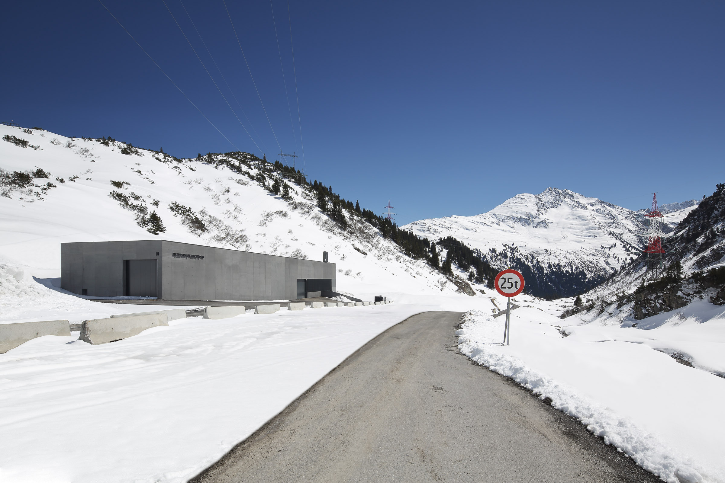 Das Heizwerkgebäude ist in Massivbauweise geplant. Die Tragstruktur, Außenwände und die Zwischendecken werden als sichtbare Stahlbetonkonstruktion erstellt. Im Heizhaus ist geplant die Zwischendecken und Treppen teilweise als Gitterost- / Stahlkonstruktion auszuführen. Aufgrund der Situierung müssen die südseitigen Fassaden inkl. Verglasungen, Türen und Toren dem Lawinendruck (3 KN/m² bzw. 2 KN/m²) standhalten. Um die über das Gebäude führende Hochspannungsleitung vor Brand und Hitze zu schützen wird das gesamte Gebäude in REI 90, EI 90bzw. R 90 ausgeführt. Die Fassade inkl. Dach wird als nicht brennbare (A2) Konstruktion ausgeführt. Für die Türen und Tore werden in der Lagerhalle die Anforderung EI2 90-C und im Heizhaus EI2 30-C eingehalten. Sämtliche Lüftungsöffnungen werden mit Brandschutzklappen EI 90 ausgeführt.