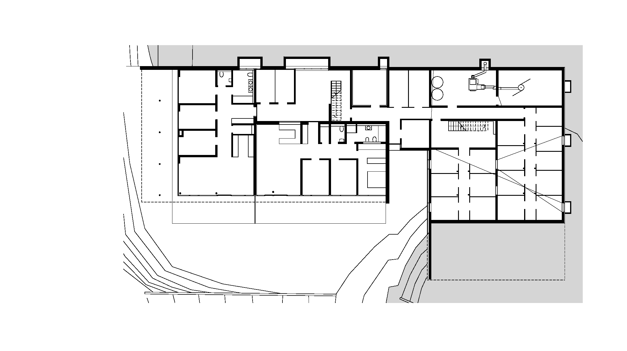 Bei der Anlage wurde der Situation entsprechend aus der Größe der Volumen, ihrer Lage zueinander und der Berührung mit dem Gelände eine kompakte Figuration geschaffen, die die Beiläufigkeit der Bebauung zumindest an diesem Ort verfestigt. Die Lage der gedeckten Parkplätze bereichert dieses städtebauliche Konzept. Das heißt, die Wohnanlage nimmt in ihrer Präsenz auch eine übergeordnete ästhetische Aufgabe wahr. Wohltuend, dass ein Teil des Grundstückes aufgrund des Freihaltebereiches der Hochspannungsleitung unbebaut geblieben ist. Von Westen hat man einen Blick auf einen dünn bebauten Hang mit größeren Distanzen zwischen den Objekten, welche sich dem alten Gefüge anpassen.