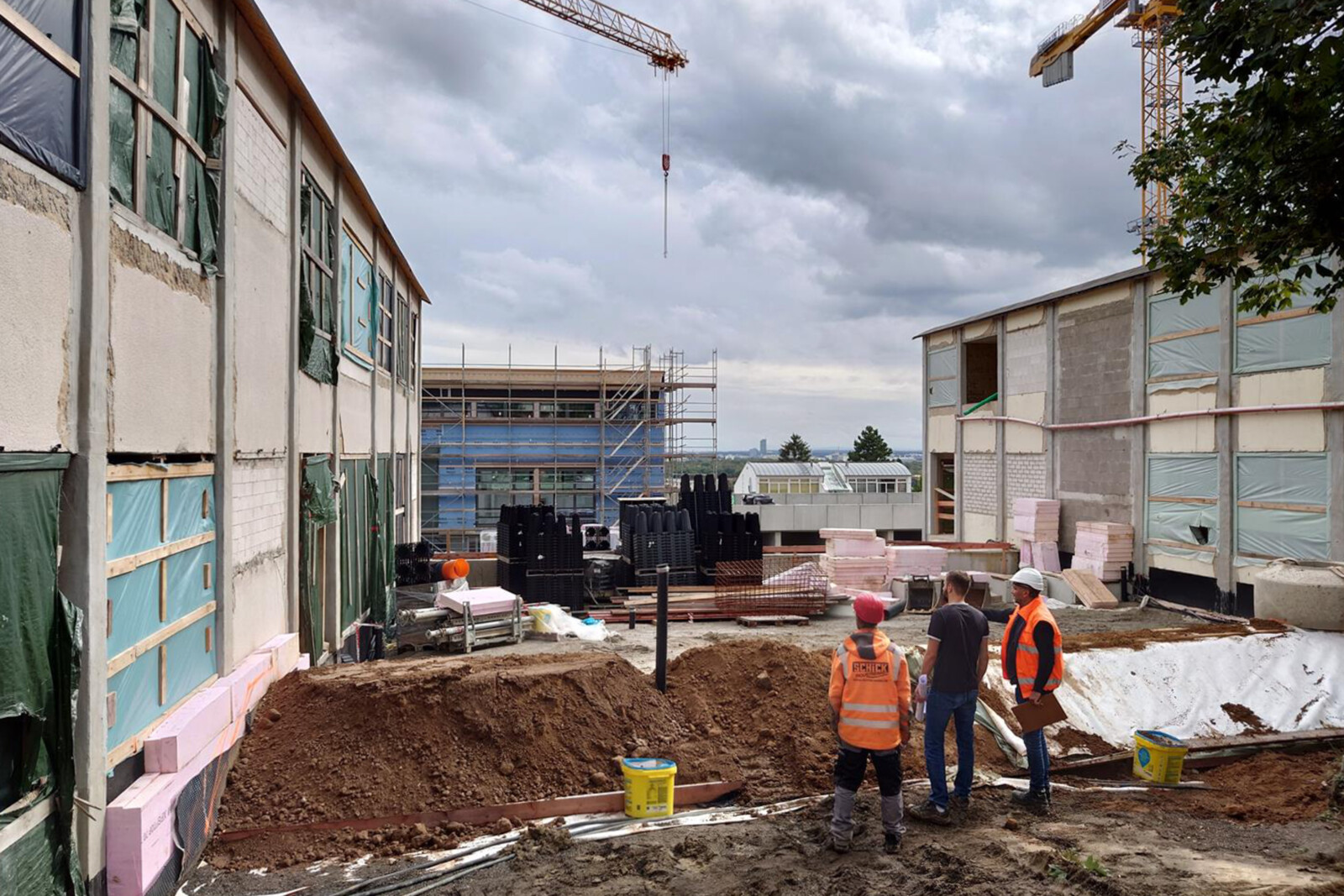 On Tuesday, May 6, Schule am Hang in Bergen-Enkheim celebrated a major milestone in its renovation and expansion project. While not a traditional topping-out ceremony—with a completed structural frame and roof—the event marked the installation of the final prefabricated timber elements of the new building.