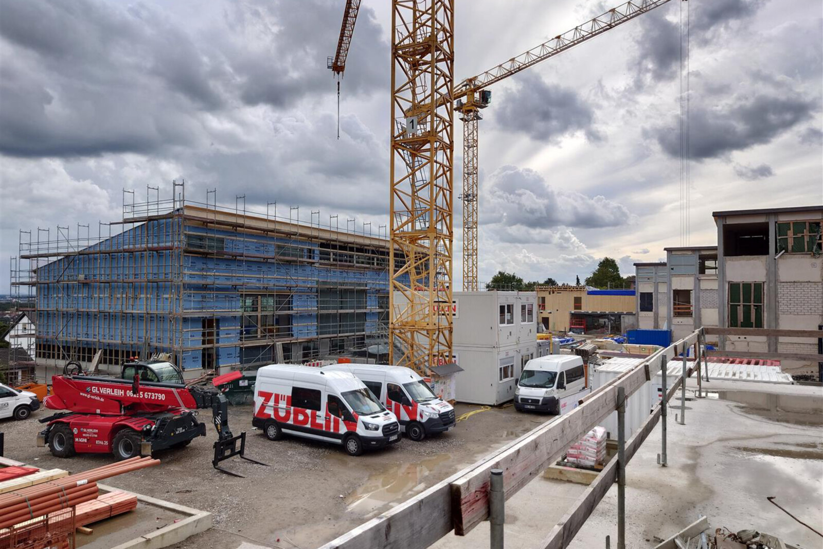 Work on the project began in late 2021 with demolition and interior gutting, requiring the school to temporarily relocate to a site on “Barbarossastraße”. Starting in summer 2026, the elementary school will move into its brand-new building at the “Am Bächelchen” location….