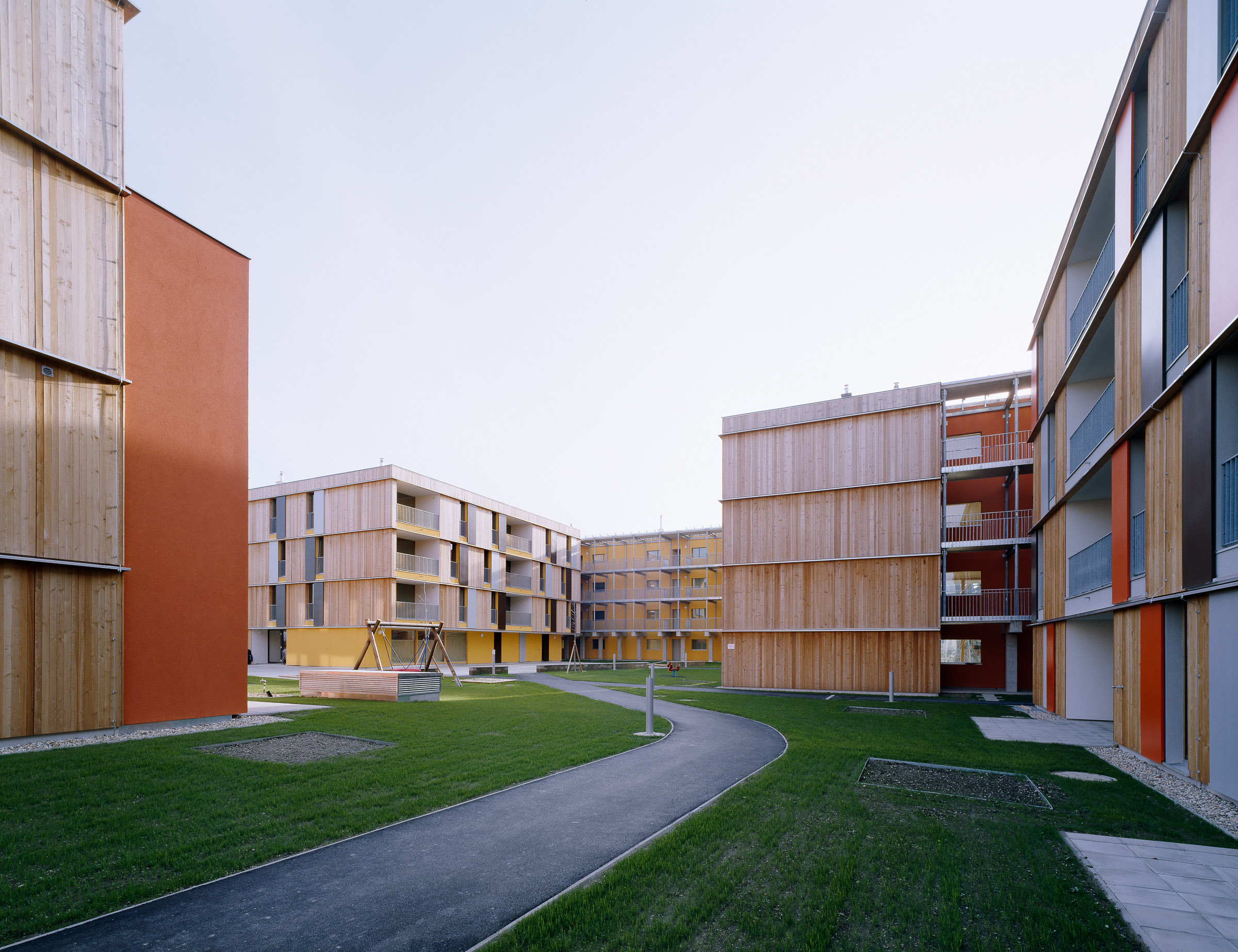 In 2003, the Vienna Land Procurement and Urban Renewal Fund invited tenders for the “timber and mixed-timber construction” of a residential complex with 250 apartments. In the context of the “Climate Protection Program of the City of Vienna”, the city wanted to demonstrate the feasibility of energy efficient timber construction for affordable housing in urban areas. Amendments to the local building regulations paved the way for multi-story timber structures to be subsidised within Vienna’s social housing program.