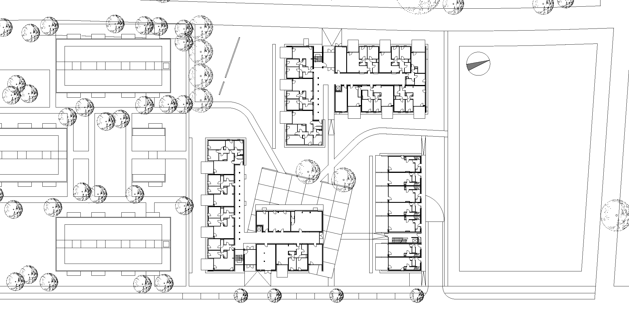 Selected from the public competition was the proposal from Johannes and Hermann Kaufmann. Tit was a site-specific design that linked the existing residential buildings from the 1960s to the west, with the adjacent green space to the east.