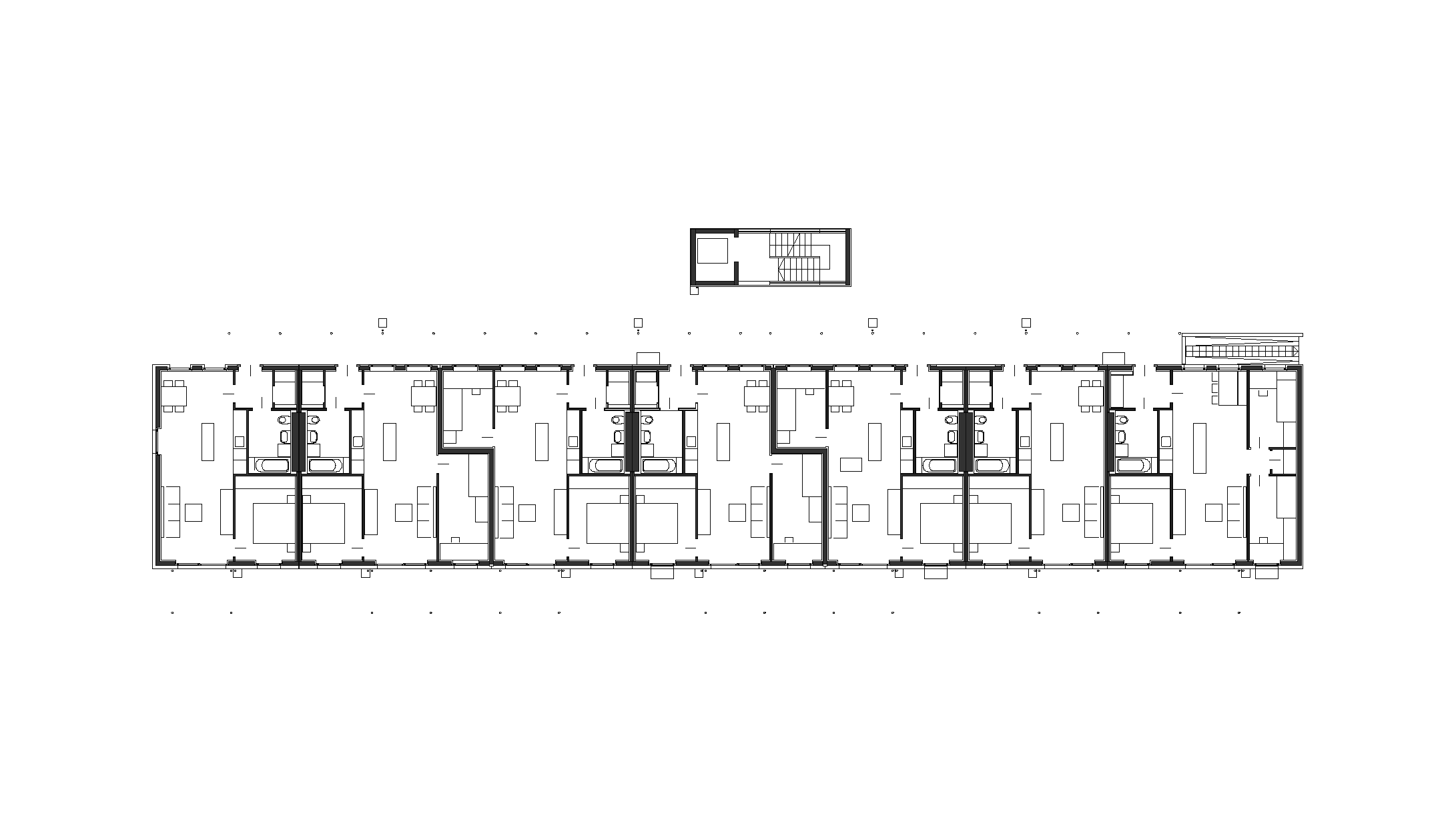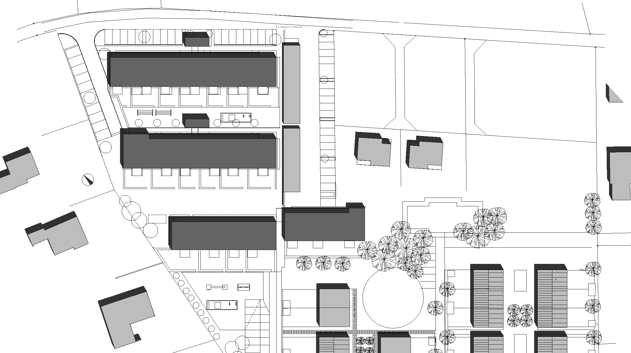 Diese Anlage in Ludesch wurde – etwa zeitgleich mit dem Bau in Telfs-Schlichtling – als Folgeauftrag nach Wolfurt- Neudorfstraße mit demselben Bauträger errichtet. Sie bringt eine weitere Variante des Typus mit pragmatischen Grundrissen und primärer Orientierung der Wohnungen nach Südwesten. Eine Neuerung bedeuten die bis zu den Wandauslässen in der Werkstatt vorgefertigten Installations- Kerne. Die 2,80 m breiten und drei Etagen hohen Elemente wurden in einem Stück geliefert und als Erstes auf die Kellerdecken gesetzt. Die Haustechnik ist insgesamt anspruchsvoller und bietet Solaranlagen für Warmwasser, Pellets-Biomasseheizung, Kalt- und Warmwasserzähler zur individuellen Kontrolle, Fotovoltaik in der Fassade des südlichsten Traktes. Die schwierige Grundstücksform ist durch breite Grünräume, Spielflächen und ebenerdige Wohngärten gut genützt. Bei den Stiegenhäusern sind bereits konstruktive Schächte vorgesehen, die, wenn sich später eine zusätzliche Finanzierungsmöglichkeit ergibt, zum Einbau von Liften genützt werden können.