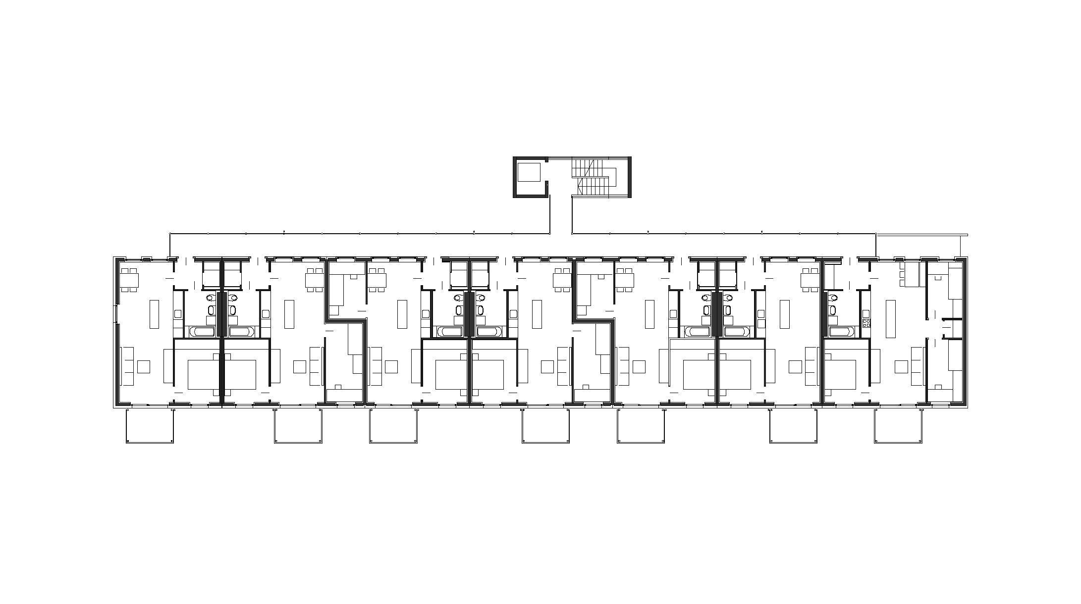 Von der Werkstatt in einem Stück mit allen Auslässen an die Baustelle: drei Etagen hohe Installations-Kerne in Holz-Kastenelementen.