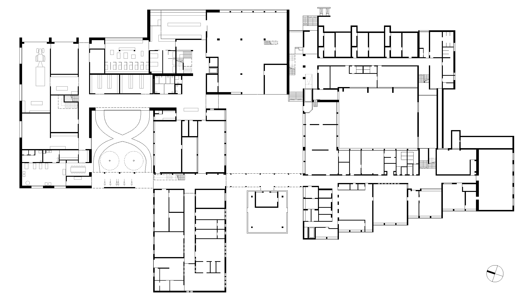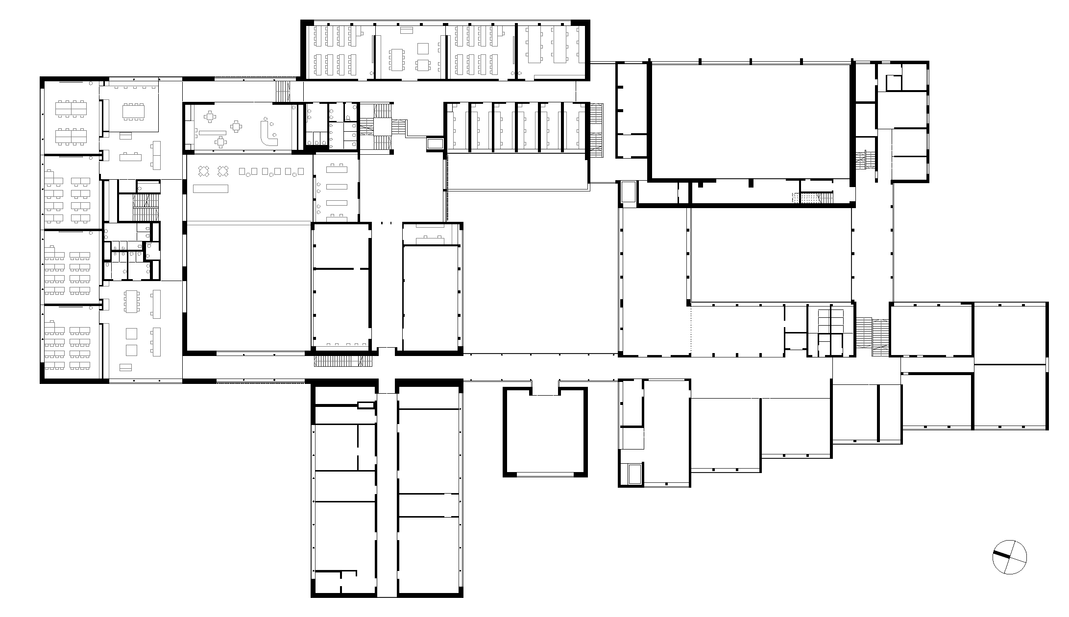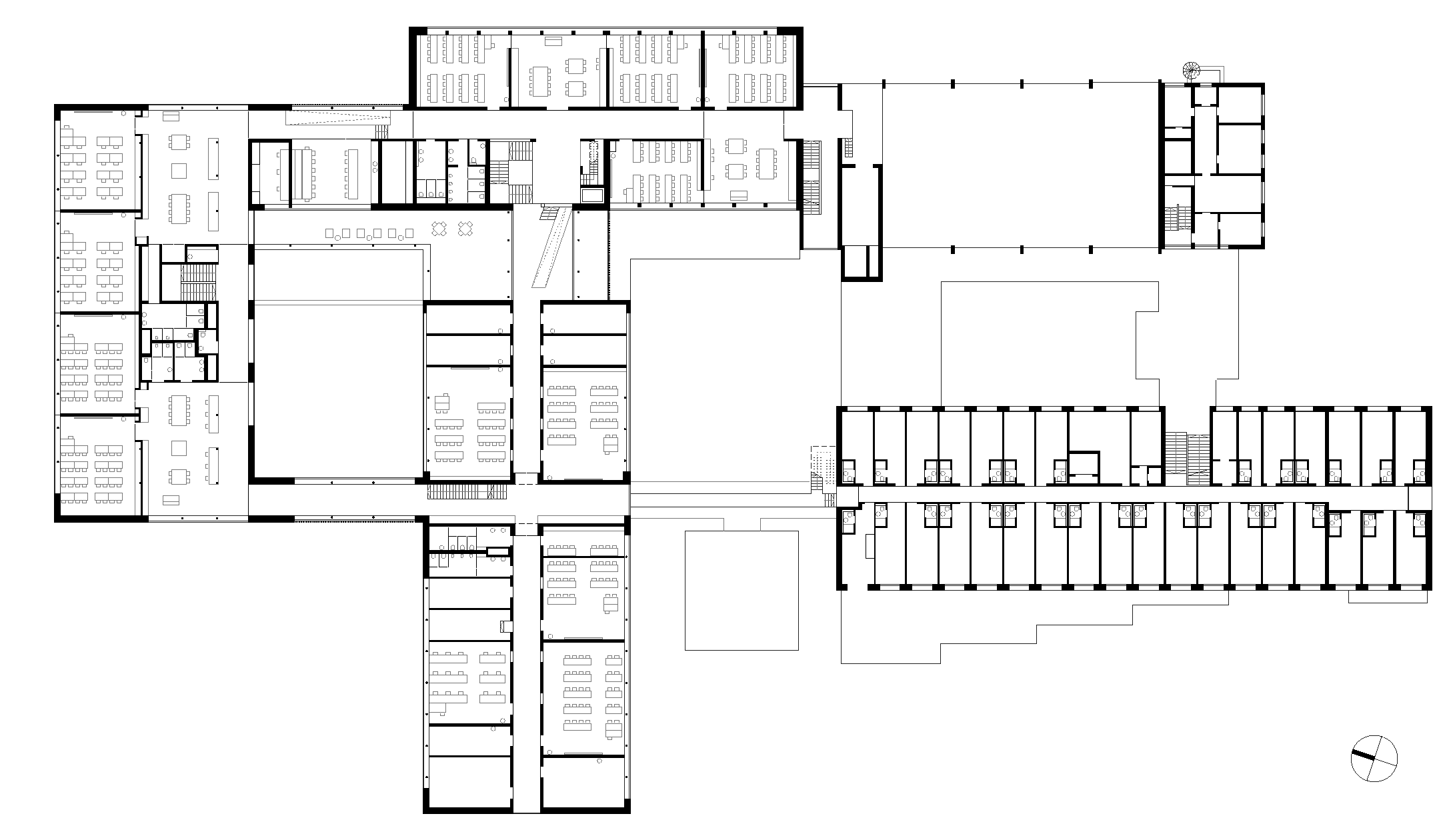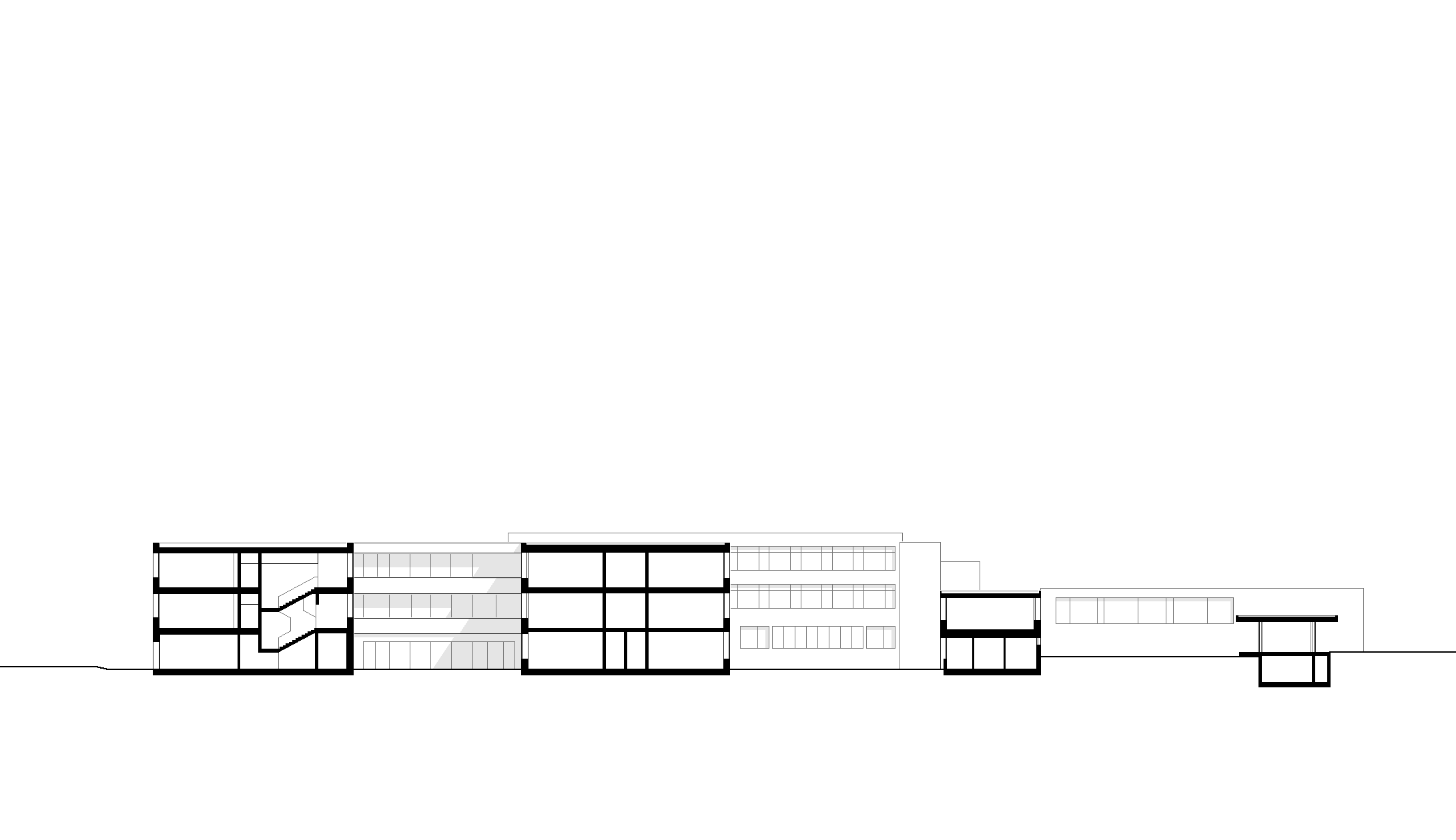Der neu errichtete Klassentrakt erweitert diesen Bestand in Sinne einer Stärkung der vorhandenen räumlichen Potentiale. Er ergänzt die gegebene Erschließungsstruktur zu einem Rundgang und formt so einen weiteren Innenhof, welcher durch den naturbelassenen Garten und großzügig dimensionierte Terrassen als geschützter Erholungsraum für die Schüler konzipiert ist.