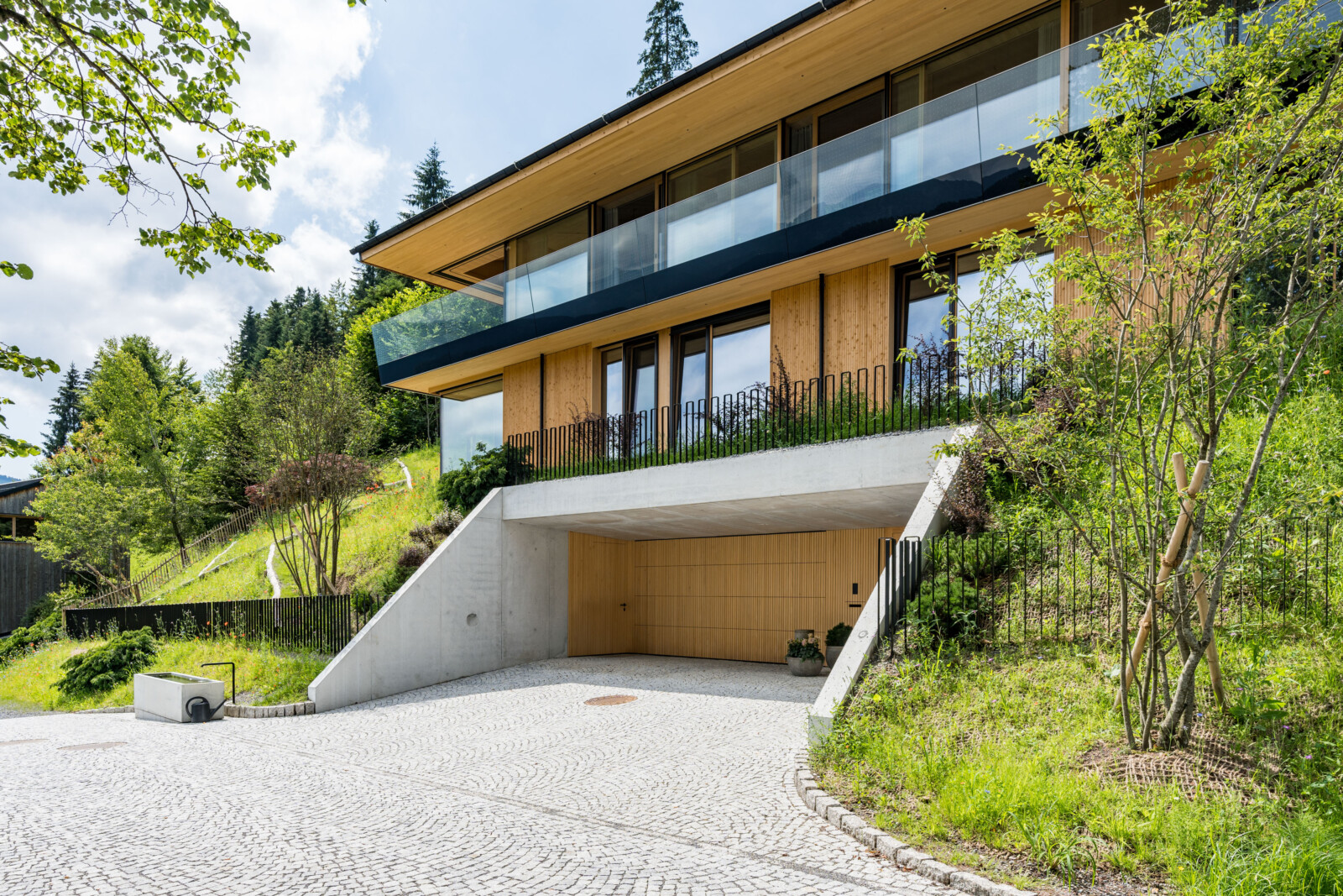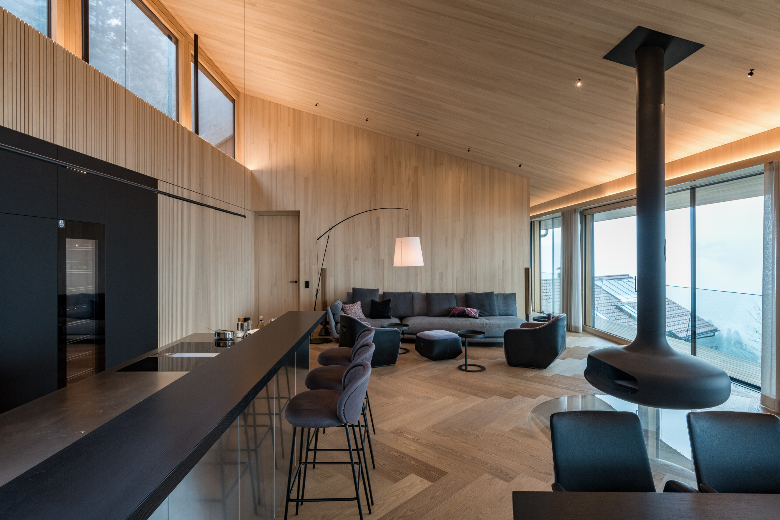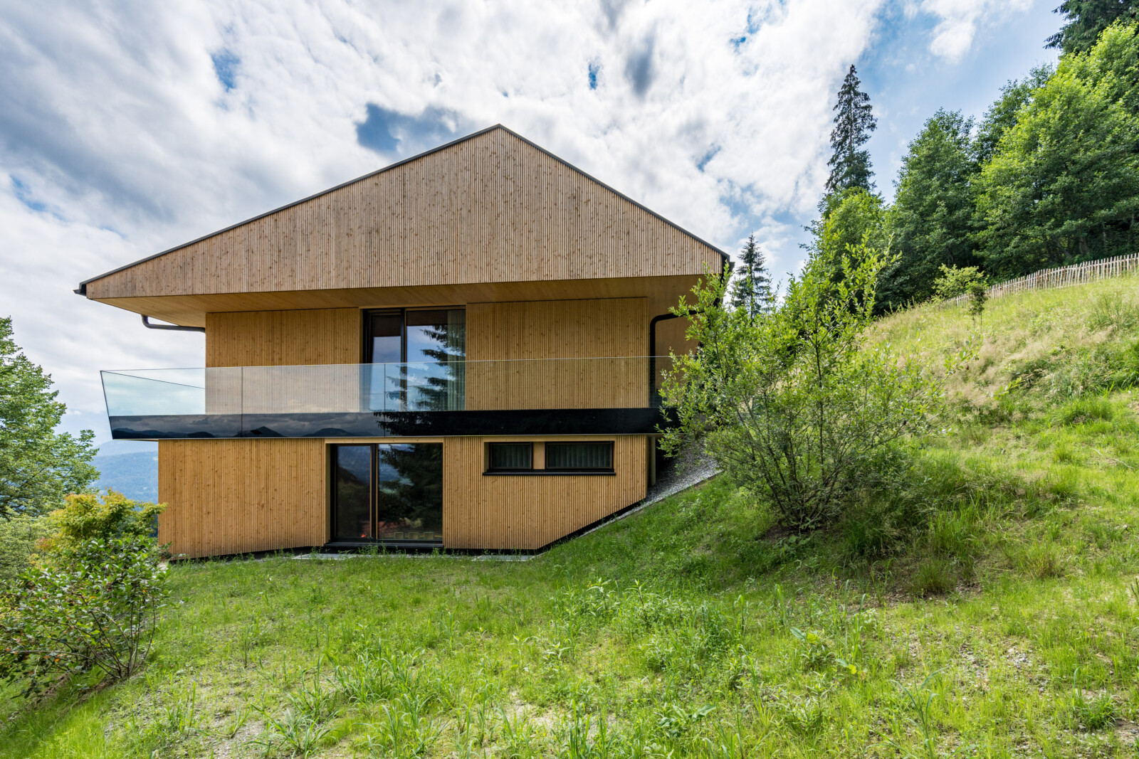 Ein Haus für Genießer und ihre Gäste, selbstbewusst in den steilen Südhang gesetzt, mit freiem Blick über den Bregenzerwald und seine Bergkämme. Die Großzügigkeit zeigt sich nicht in Quadratmetern, sondern in der sorgfältigen und inspirierten Planung. Der fein gearbeitete Weinkeller, eine exquisit ausgestattete Küche und behagliche Essbereiche drinnen und draußen erzählen von der Freude, das gute Leben zu teilen.