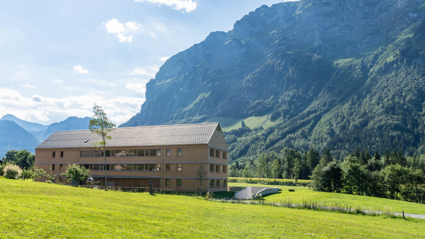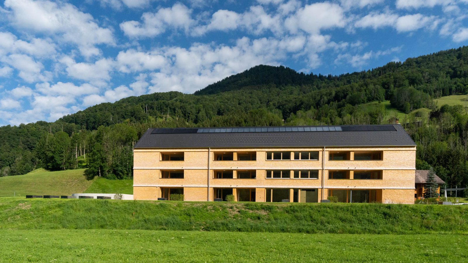Die Konstruktion des Gebäudes erfolgte in Mischbauweise. Stahlstützen tragen eine massive Grundstruktur aus Betondecken, die Innenwände sind in Trockenbauweise gefügt. In Anlehnung an die regionale Holzbautradition wurden die hochgedämmten Holzelemente der Außenhülle mit einem umlaufenden Schindelwurf verkleidet. Das Passivhaus zeichnet sich durch seine hohe Energieeffizienz aus und ist mit flächenbündig in die Dachhaut integrierten thermischen Kollektoren und Photovoltaik-Modulen ausgestattet.