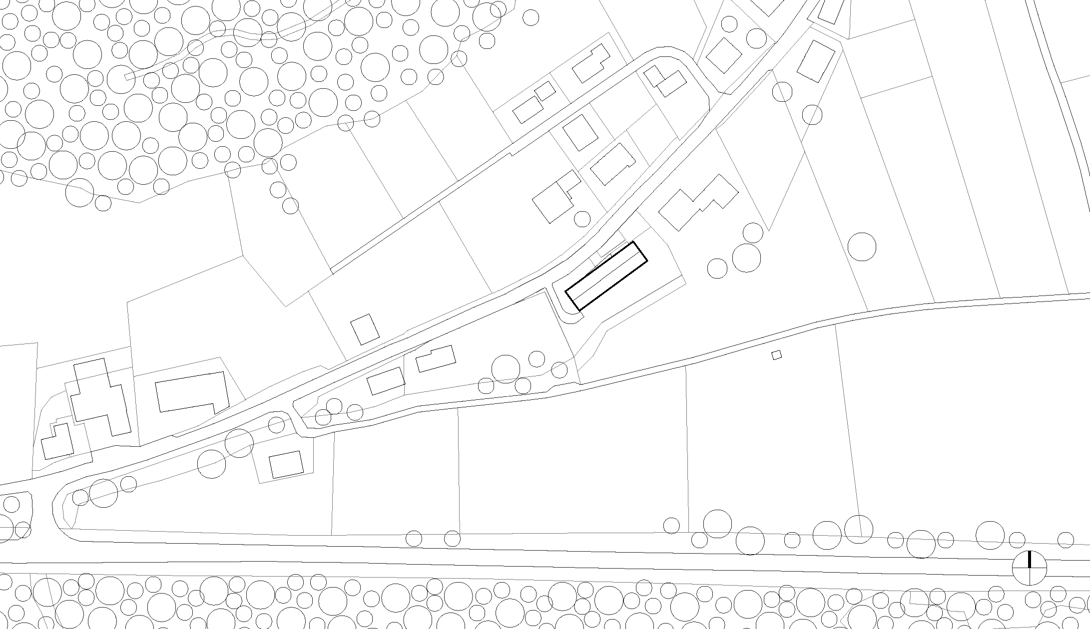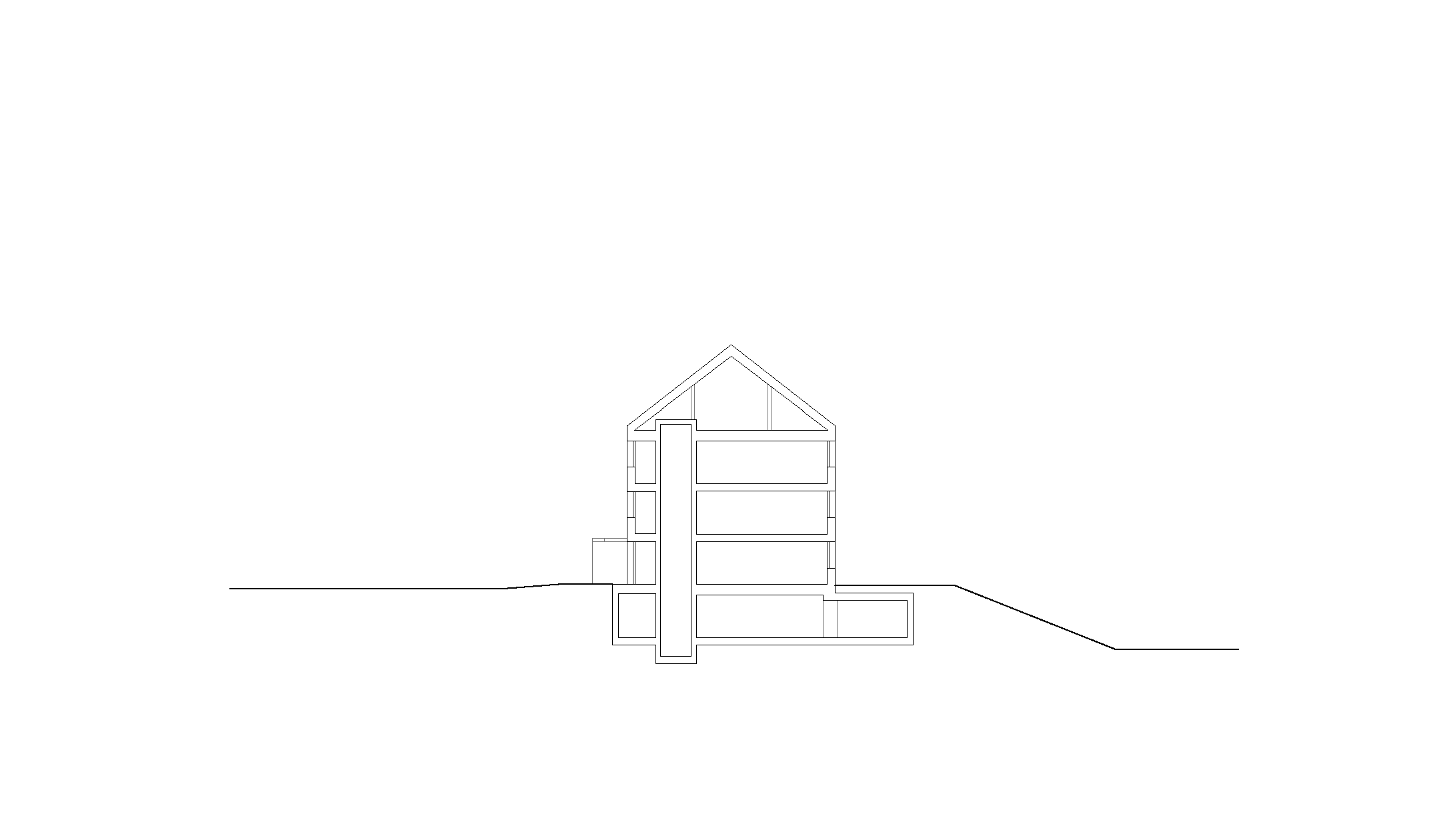 Der kompakte Baukörper mit steilem Satteldach fügt sich selbstbewusst in den räumlichen und historischen Kontext. Als zeitgenössische Interpretation des charakteristischen Einhofes des Hinterwaldes orientiert er sich traufständig entlang der Straße und reiht sich ins Gefüge der Siedlungsstruktur.