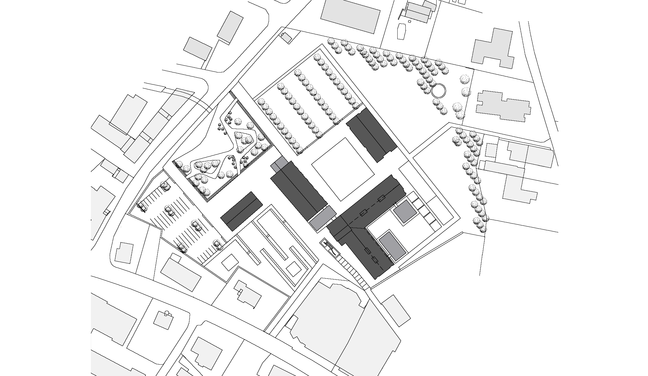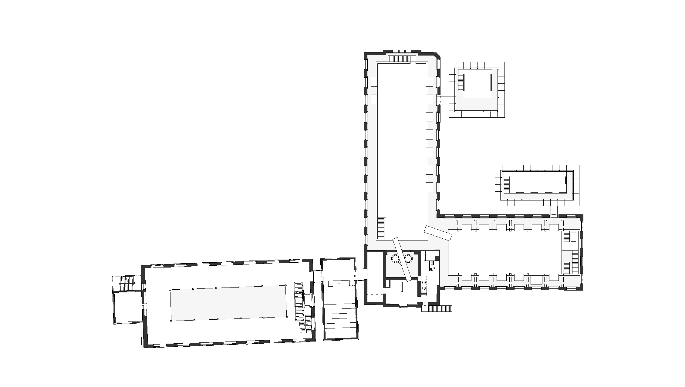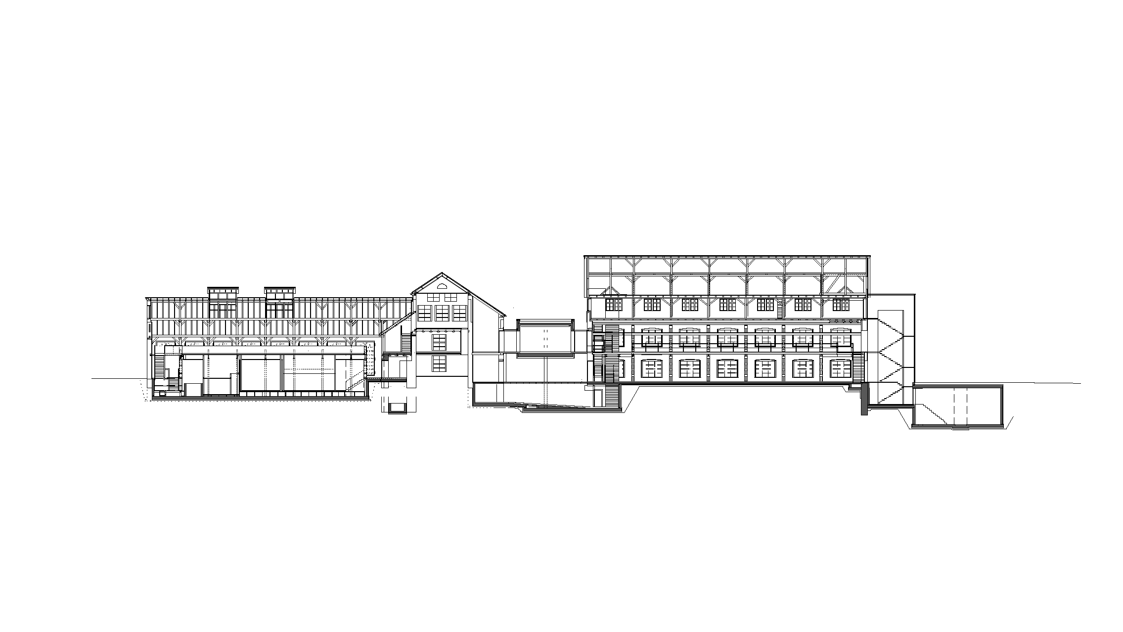 Das Erdgeschoss der beiden Gießereien wurde abgesenkt und bleibt aus technischen Gründen auf Distanz zu den Außenmauern, und mittels Rampen wird der Besucher in das Untergeschoss der Dreherei zurückgeführt. Die Anbindung an Fluchttreppen wird über Brücken bewerkstelligt. Die Schmiede umfasst die Werkstätte und die Studiensammlung. Der Dreherei vorgelagert befindet sich die zentrale Hackschnitzelanlage, die auch umliegende städtische Gebäude mit Heizenergie versorgt.