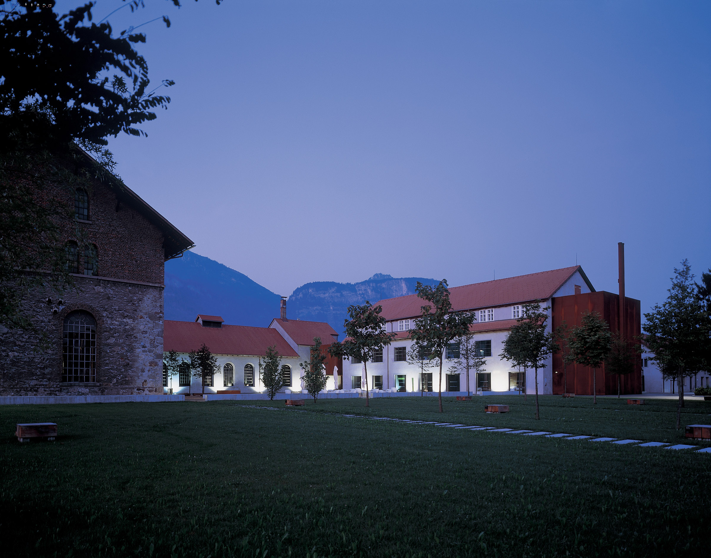 Der Umbau Rüschwerke in Dornbirn umfasste die Rückführung des Gebäudekomplexes auf die ursprüngliche Substanz und dessen sorgsame Adaptierung. Mit Ausnahme der Alten Montagehalle wird das gesamte Areal von der Naturschau Dornbirn genutzt. Im Zuge dieser Neunutzung waren drei Zubauten an die bestehenden Gebäude geplant: Technik, Lagerräume und Büros bei der Dreherei, Vorführsaal zwischen Dreherei und Gießereien, Büros und Ausstellungsflächen bei der Neuen Gießerei.