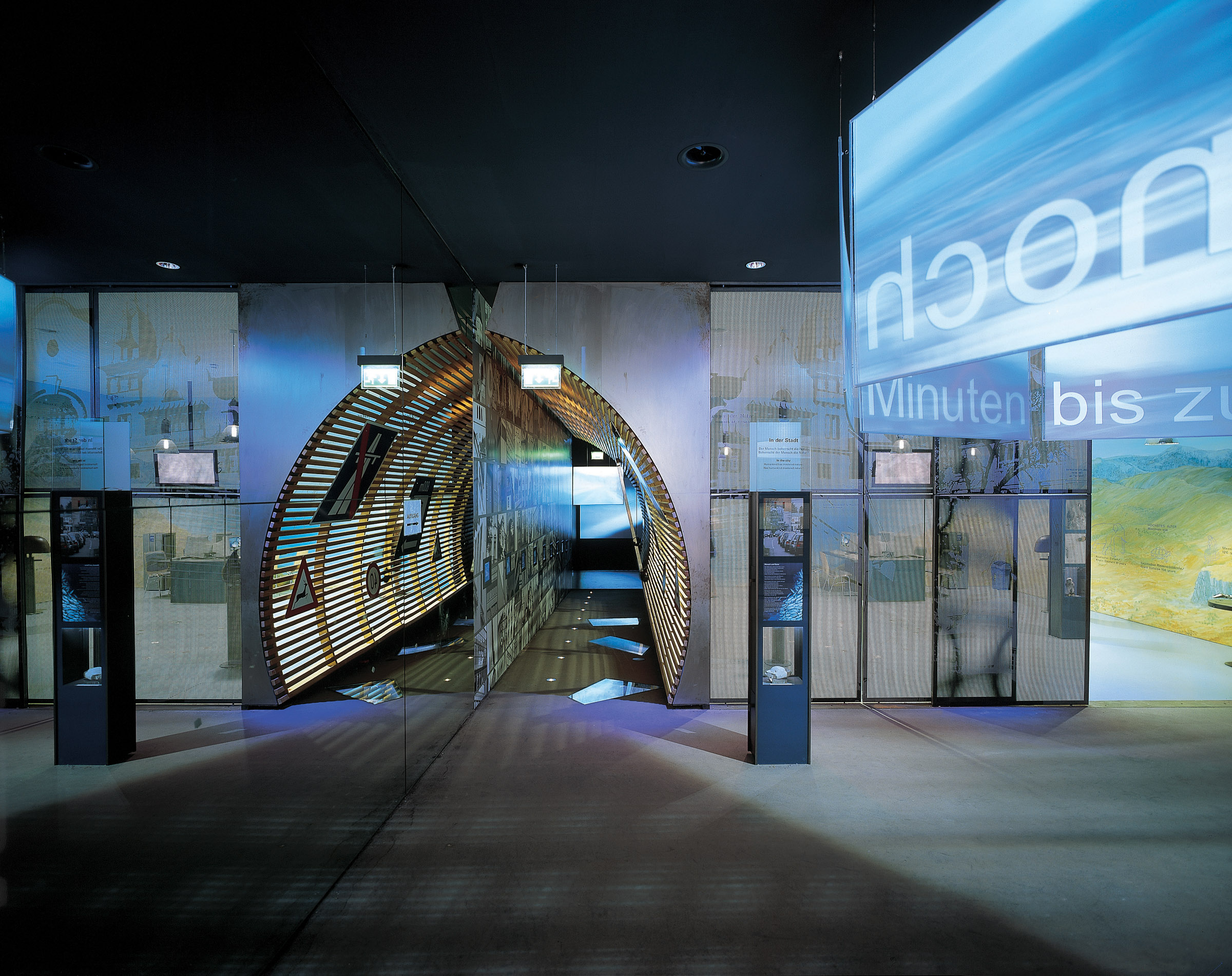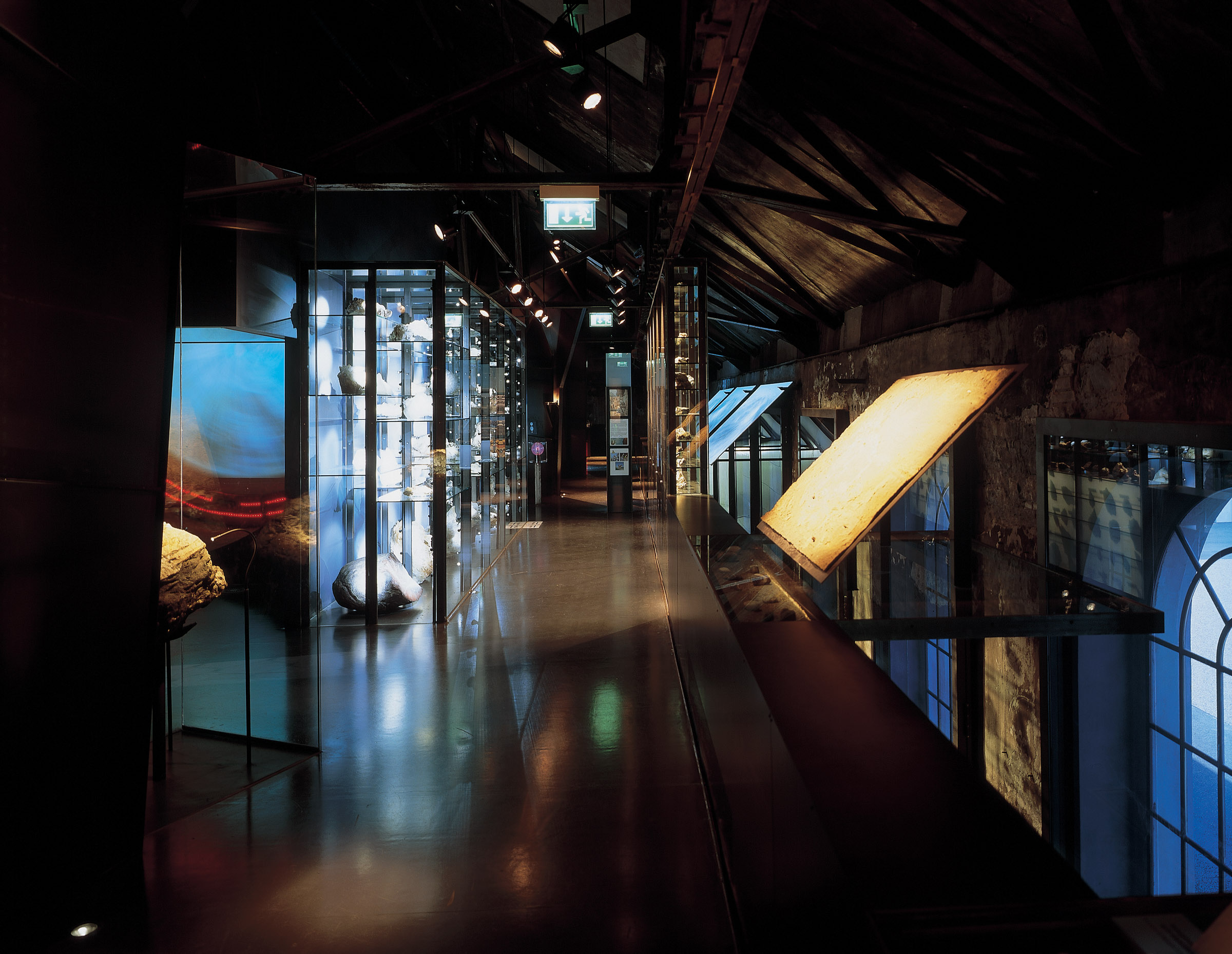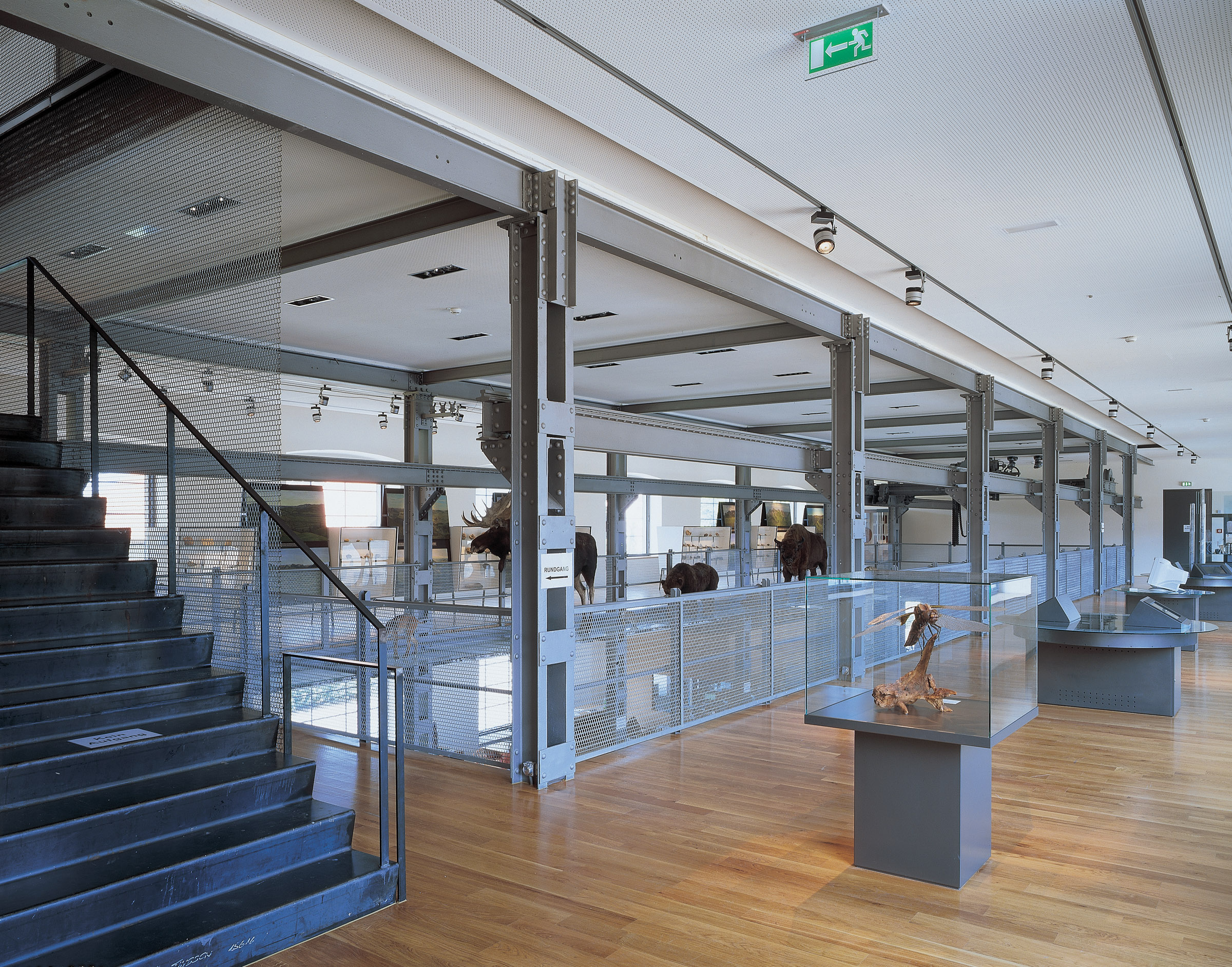Der eigentliche Rundgang im Museum beginnt im dazwischengeschobenen Vorführsaal, der Dreherei und Gießerei verbindet. Über dem konservierten Bereich der Hochöfen betritt der Museumsbesucher die neu errichtete Zwischenebene. Die Wegführung bezieht auch den Neubau mit ein und ermöglicht den Einblick in die Arbeit der Naturwissenschaftler.