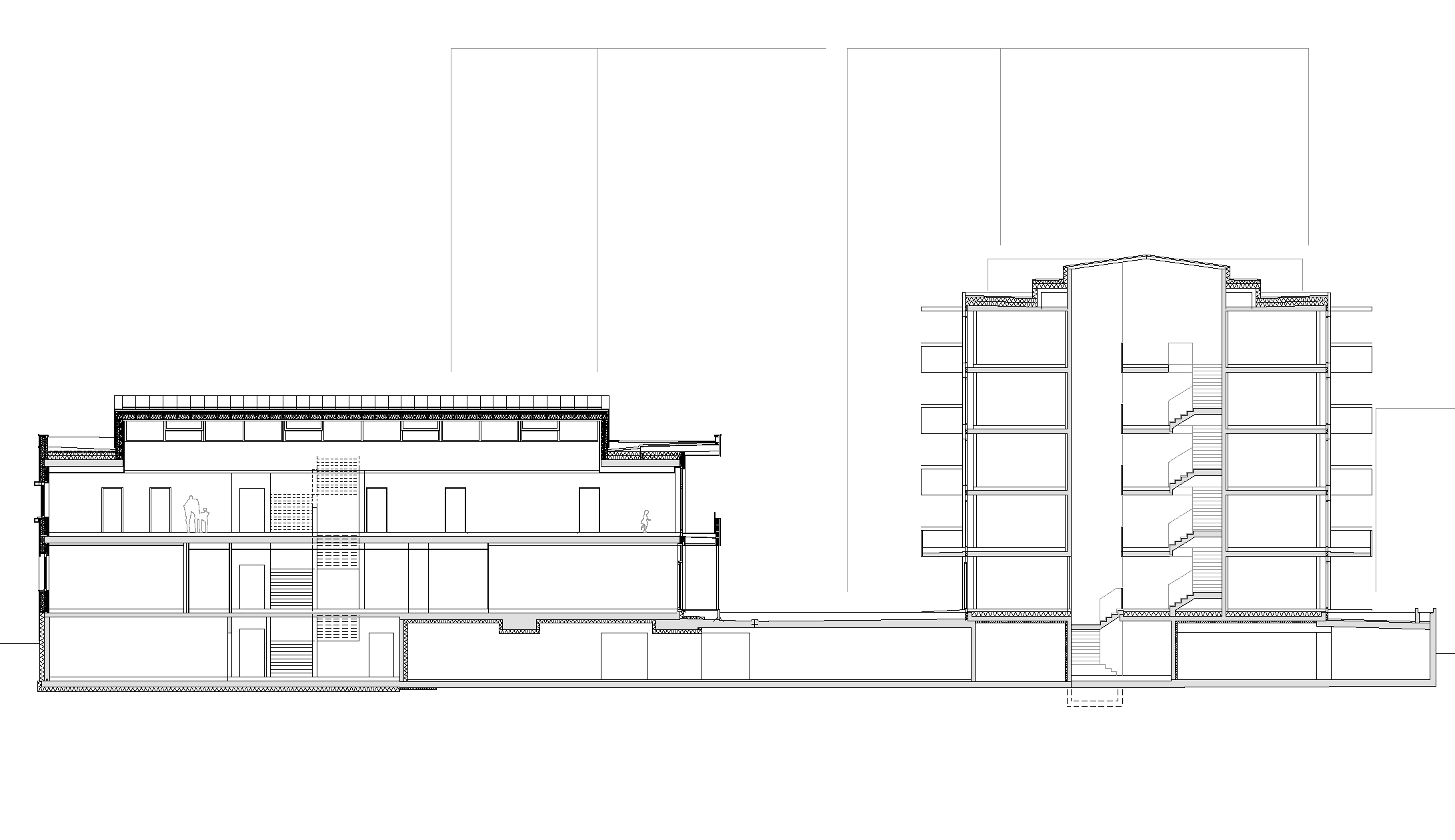 Durch die neue Wohnbebauung wurde ein weiterer Kindergarten für den Ortsteil Rum notwendig. Das Haus der Kinder bildet mit den beiden Wohnbauten einen dreiseitig umschlossenen Hof, einen halböffentlichen Platz, mit Spielbereichen für die Kinder und Wegen zu den Wohnanlagen. Die komplette Unterkellerung bietet Tiefgarage und Nebenräume für alle.