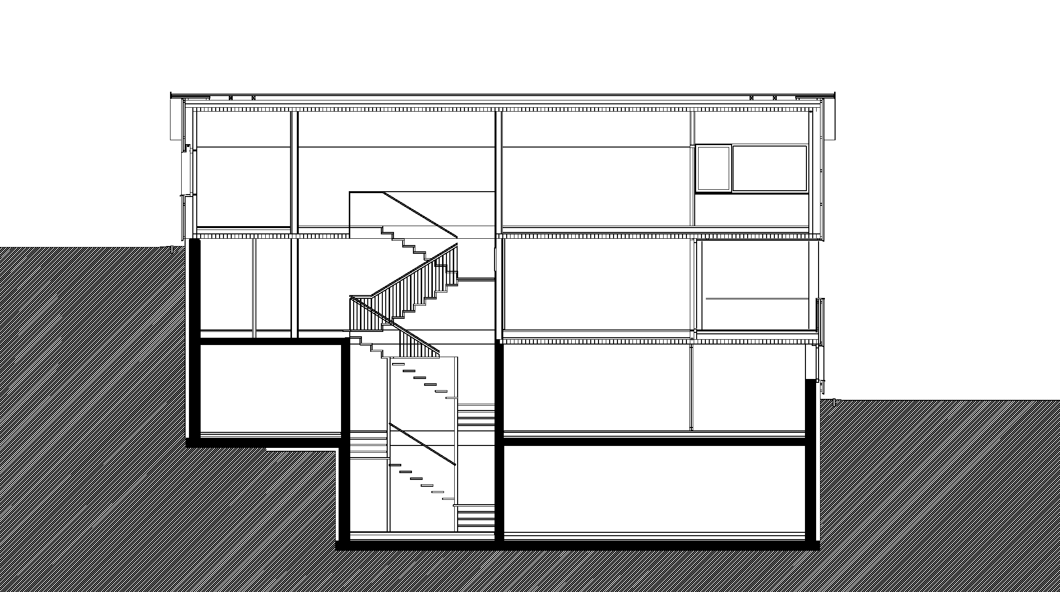 Pionierbeispiel einer vorgefertigten Tafelbauweise aus unverleimten, mit diagonalen Holzdübeln verbundenen Massivholzprofilen.