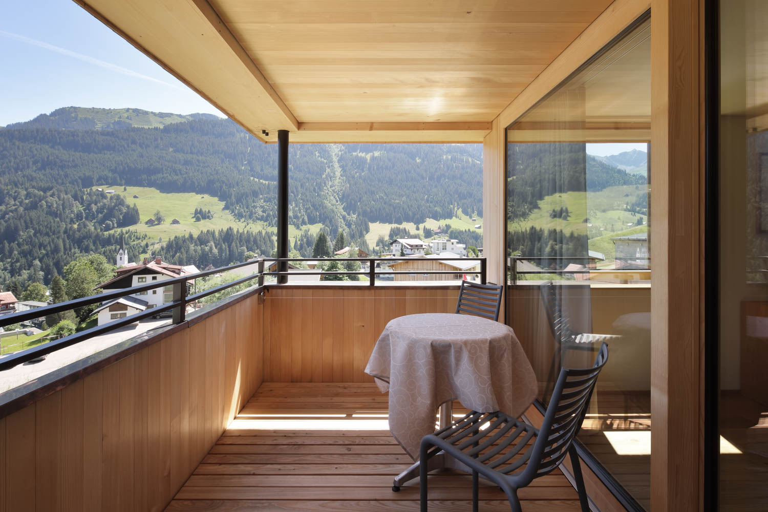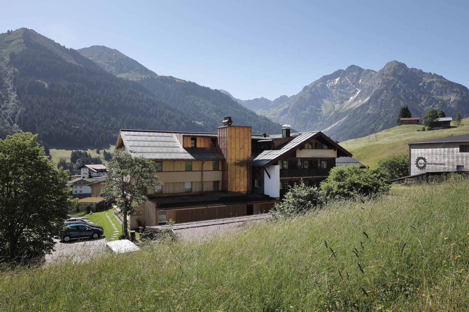 Um die Bauarbeiten in der Zwischensaison möglichst zügig durchzuführen, beschloss das Planungsteam, den Zubau aus vorgefertigten Wandelementen mit massiven Holzdecken zu fügen. Die Balkenlage des Dachstuhles wurde ergänzt, durch Holzwolle ausgedämmt und mit Kupferblechen gedeckt. Als Referenz an den traditionellen Baustil des Tales sind Fenster und Schiebeläden aus Holz gefertigt, während die Fassaden mit Schindeln und vertikalen Brettern in graphisch fein strukturierten Flächen verschalt wurden.