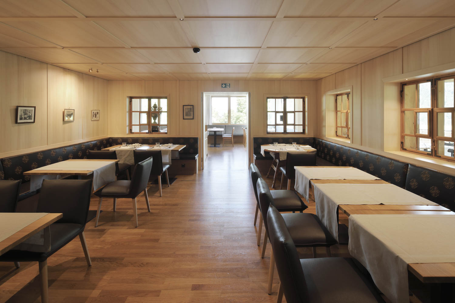 Diese ursprünglich stark heterogene Bestandessituation sollte durch wohldurchdachte architektonische Eingriffe zu mehr Ruhe und Klarheit in ihrer Gestaltung finden, doch auch organisatorische, infrastrukturelle und thermische Verbesserungen wurden angestrebt. Eine Vergrößerung der Küche und ihrer Lagerräume war ebenso notwendig wie eine Optimierung der Lieferantenzufahrt, das bestehende Restaurant wurde durch zwei Stuben und einen Buffetbereich erweitert. Der Zimmertrakt der oberen Stockwerke konnte verlängert und durch großzügige Loggien ergänzt werden, das Dachgeschoss vollständig ausgebaut und über eine Weiterführung der Liftanlage barrierefrei erschlossen.