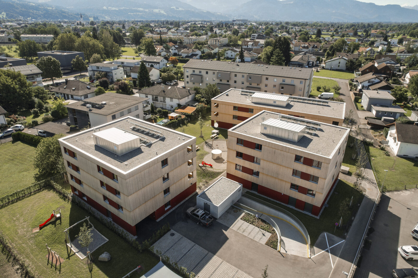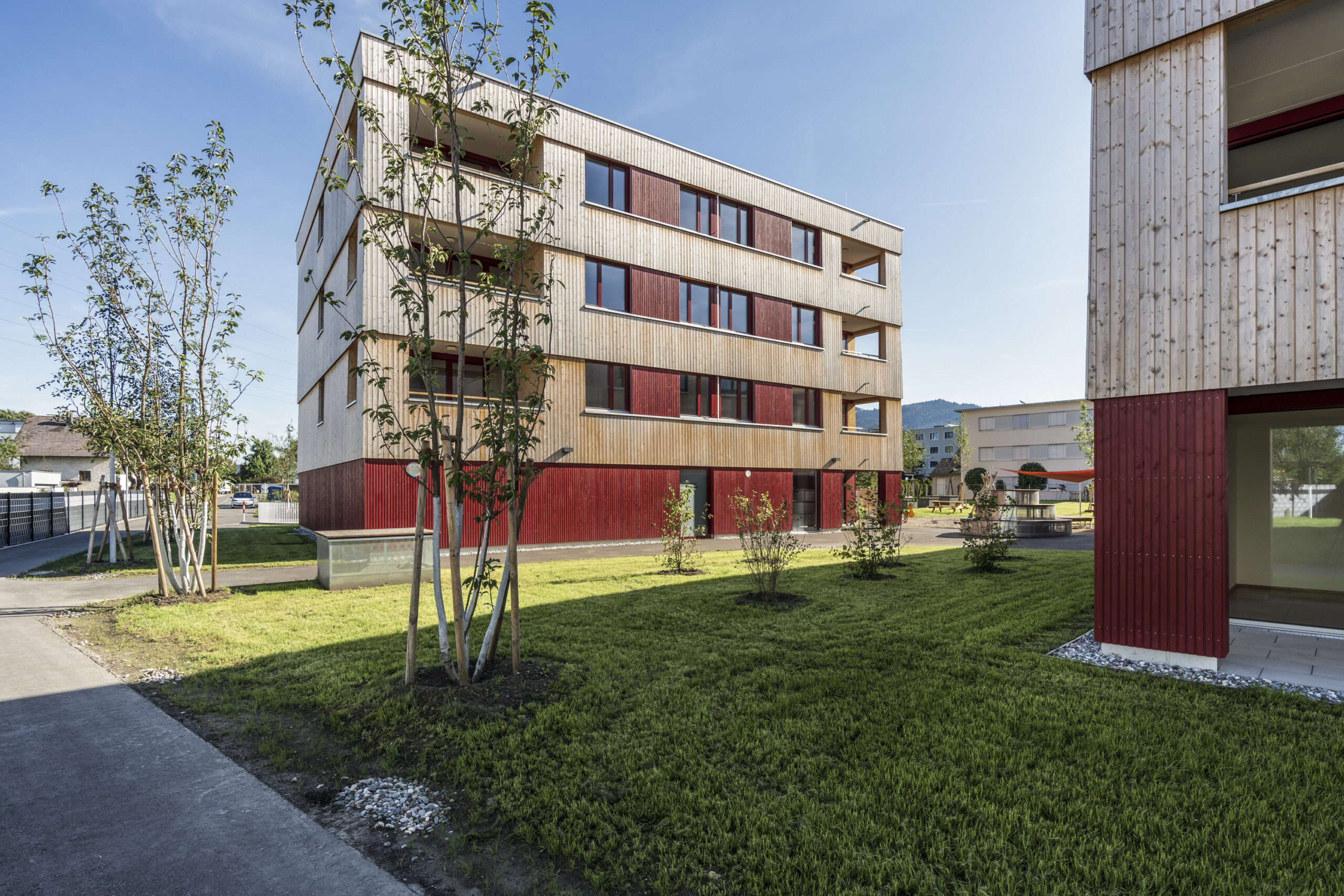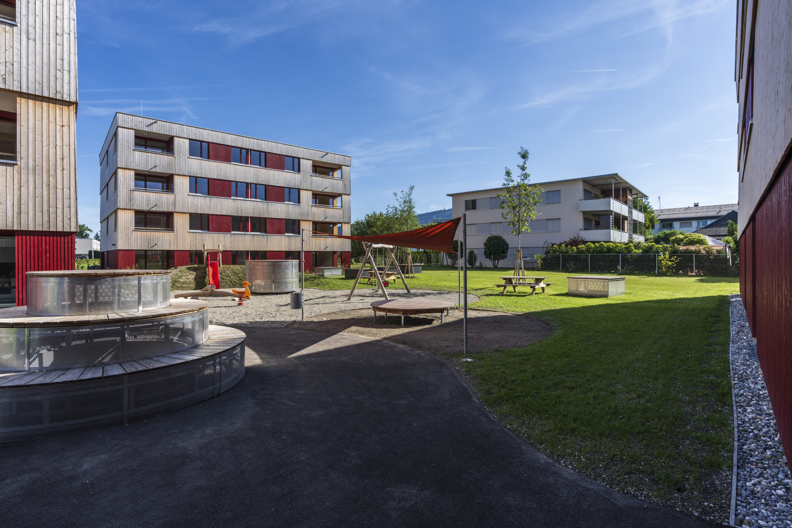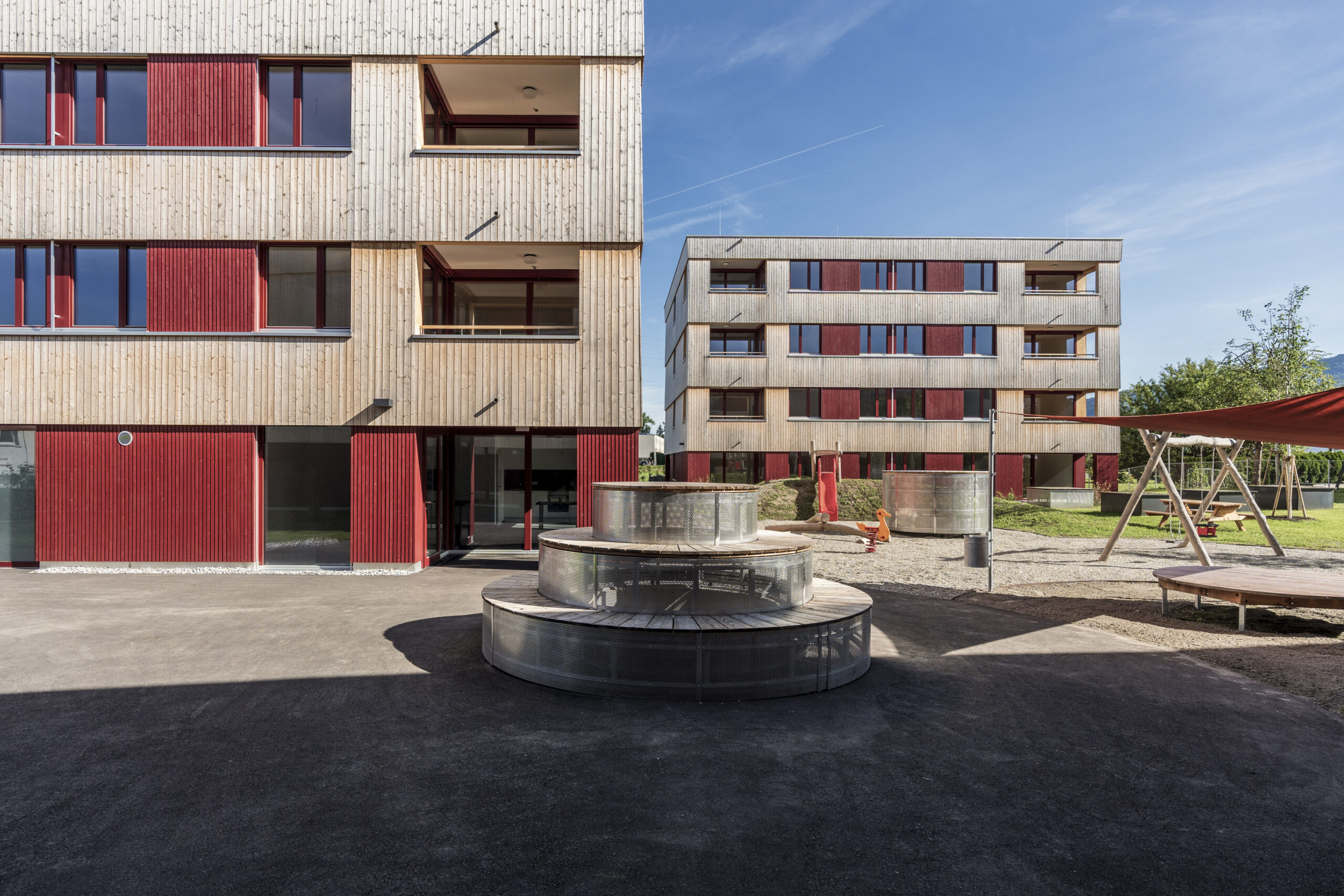 Das engmaschig gewirkte Siedlungsgeflecht des Vorarlberger Rheintales wird von Ackerland, Obstwiesen und Gärten durchgrünt. Im Rahmen einer nachhaltigen Raumplanung erfolgt die behutsame bauliche Verdichtung, um den ursprünglichen Charakter der gewachsenen Mischquartiere zu bewahren. In diesem Sinne entstand im Nordwesten der Marktgemeinde Lauterach eine familienfreundliche und kostengünstige Wohnanlage auf dem Grund der Pfarre im Baurecht.