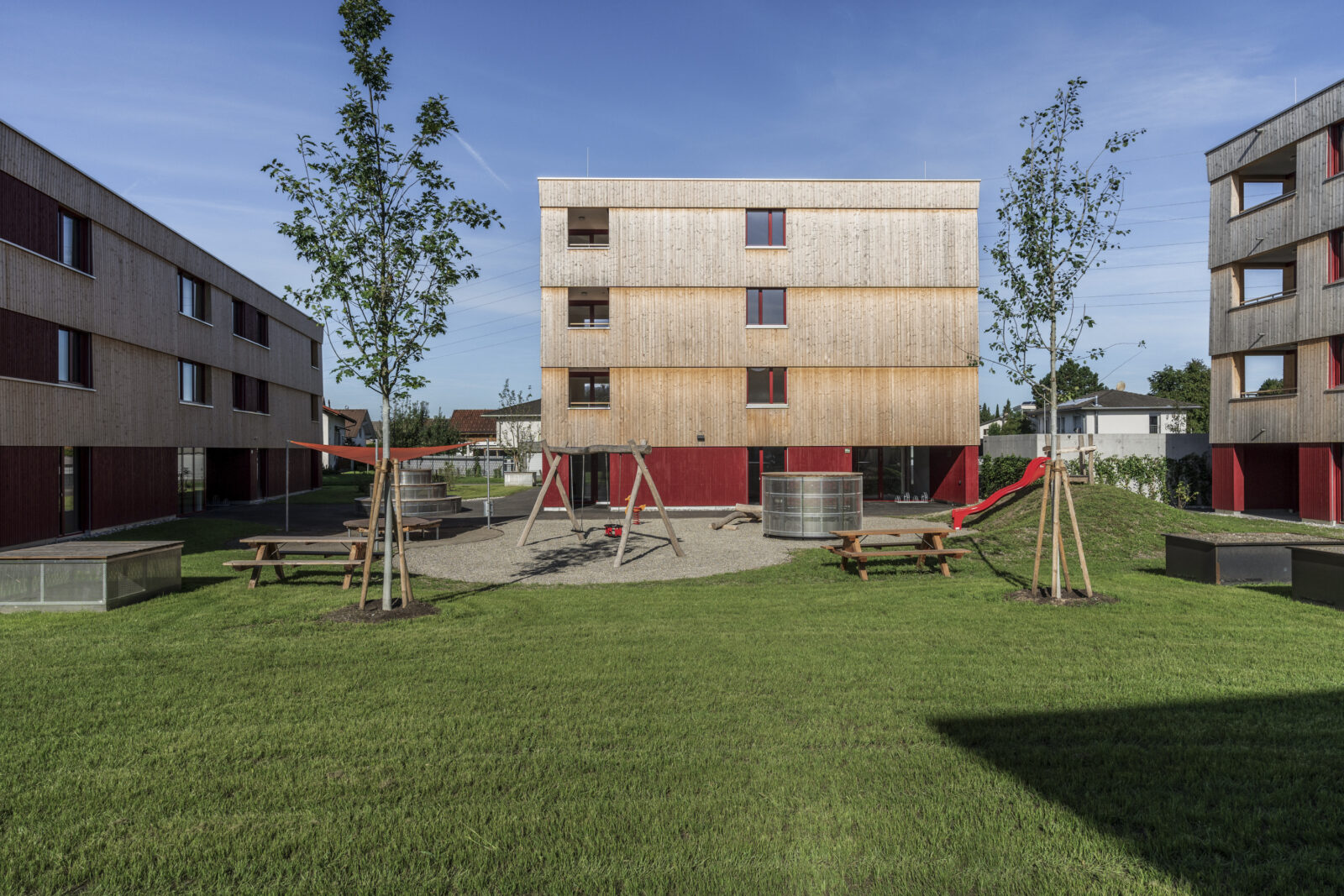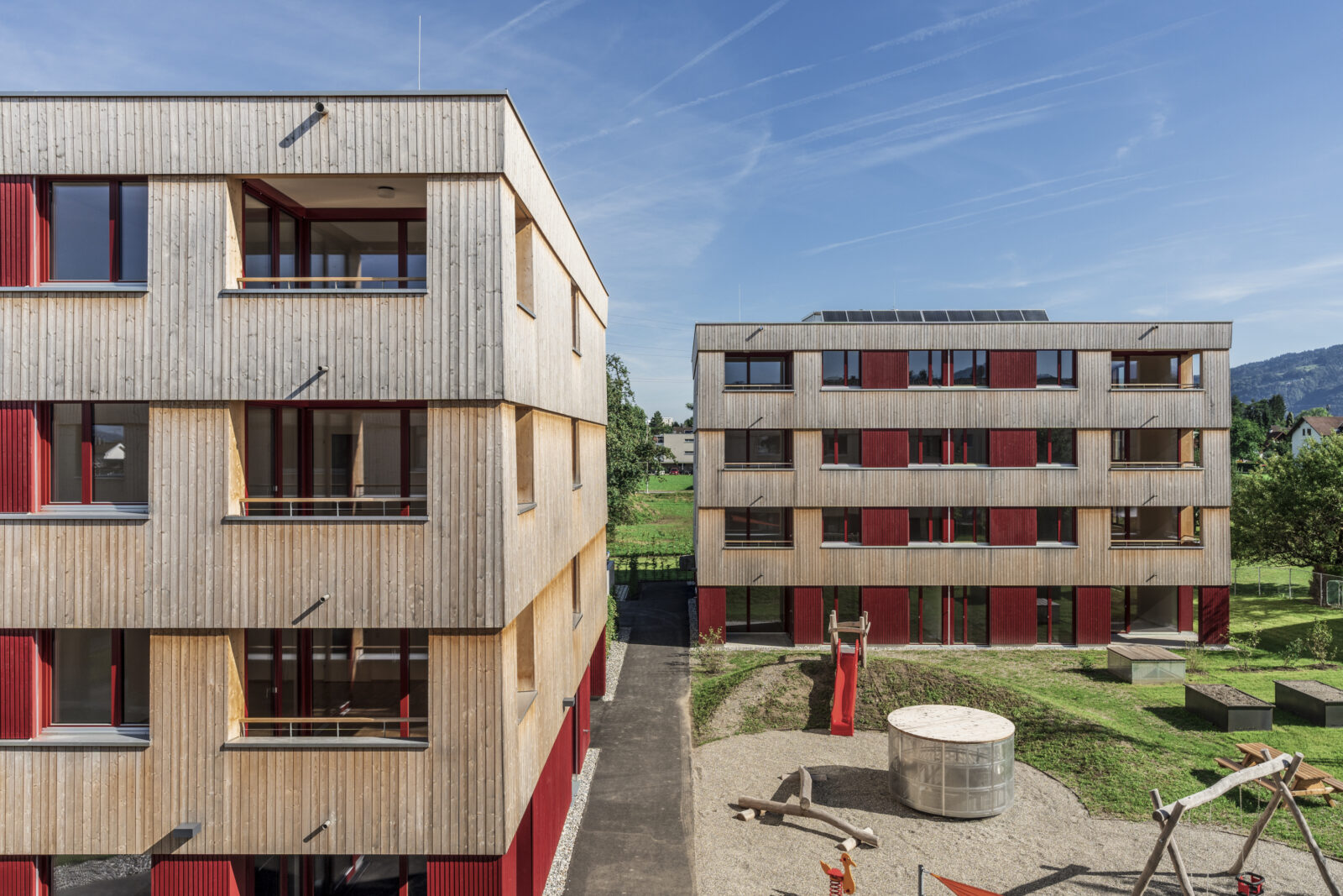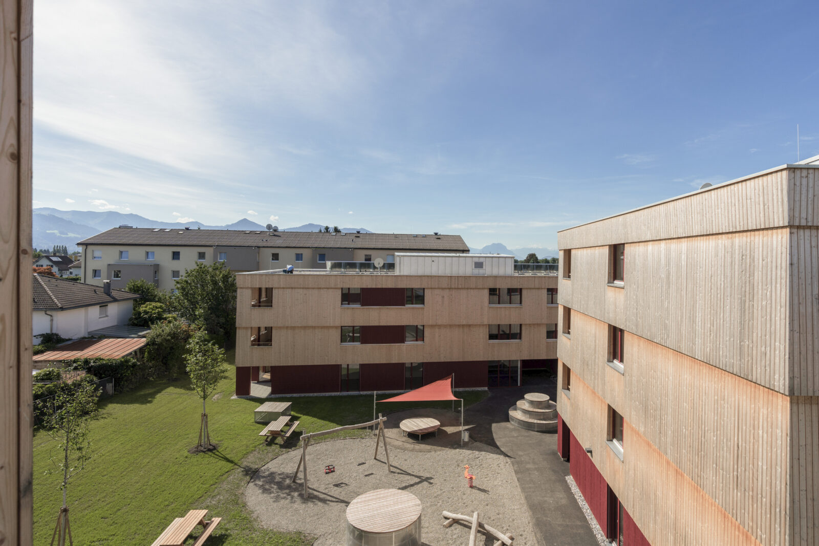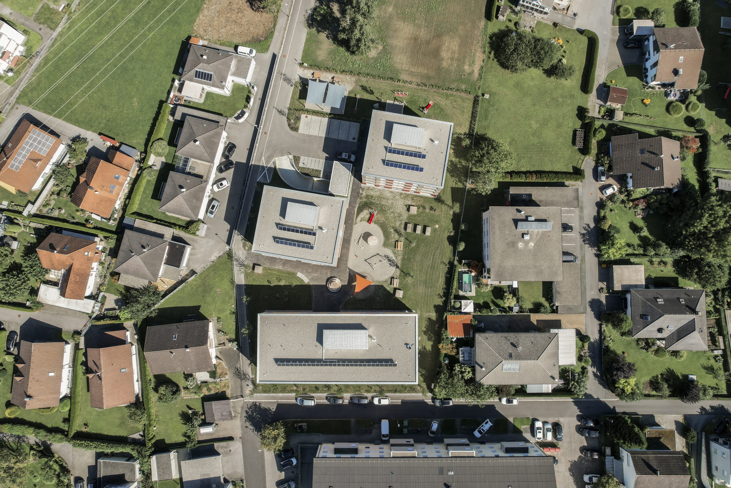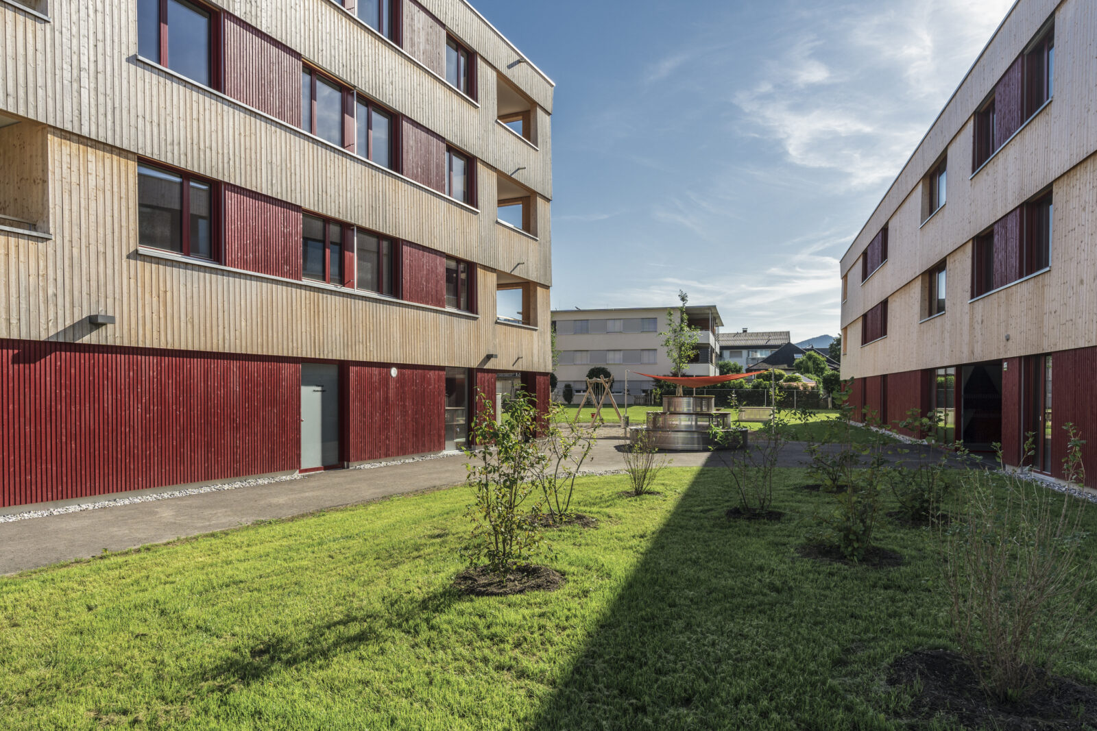 Das engmaschig gewirkte Siedlungsgeflecht des Vorarlberger Rheintales wird von Ackerland, Obstwiesen und Gärten durchgrünt. Im Rahmen einer nachhaltigen Raumplanung erfolgt die behutsame bauliche Verdichtung, um den ursprünglichen Charakter der gewachsenen Mischquartiere zu bewahren. In diesem Sinne entstand im Nordwesten der Marktgemeinde Lauterach eine familienfreundliche und kostengünstige Wohnanlage auf dem Grund der Pfarre im Baurecht.