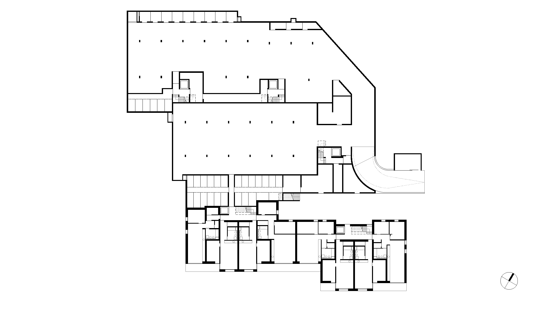 Im ersten Bauabschnitt werden 42 Einheiten errichtet. Dieser bildet einen Hof, von dem aus alle Wohnungen erschlossen werden und der als Kinderspielfläche sowie großer Kommunikationsraum angeboten wird. Es sind hier auch alle großen Wohnungen angeordnet, ein familiengerechtes Wohnen ist hier das Hauptthema.