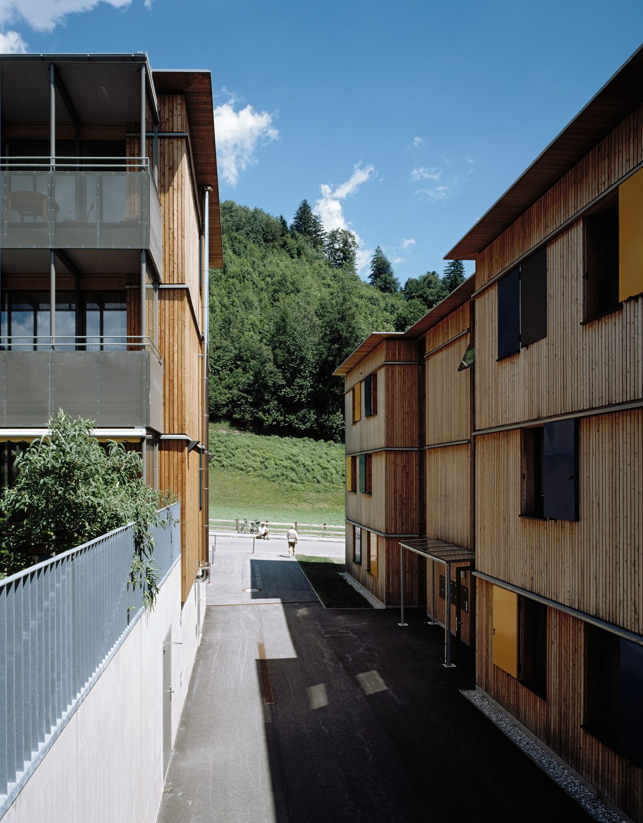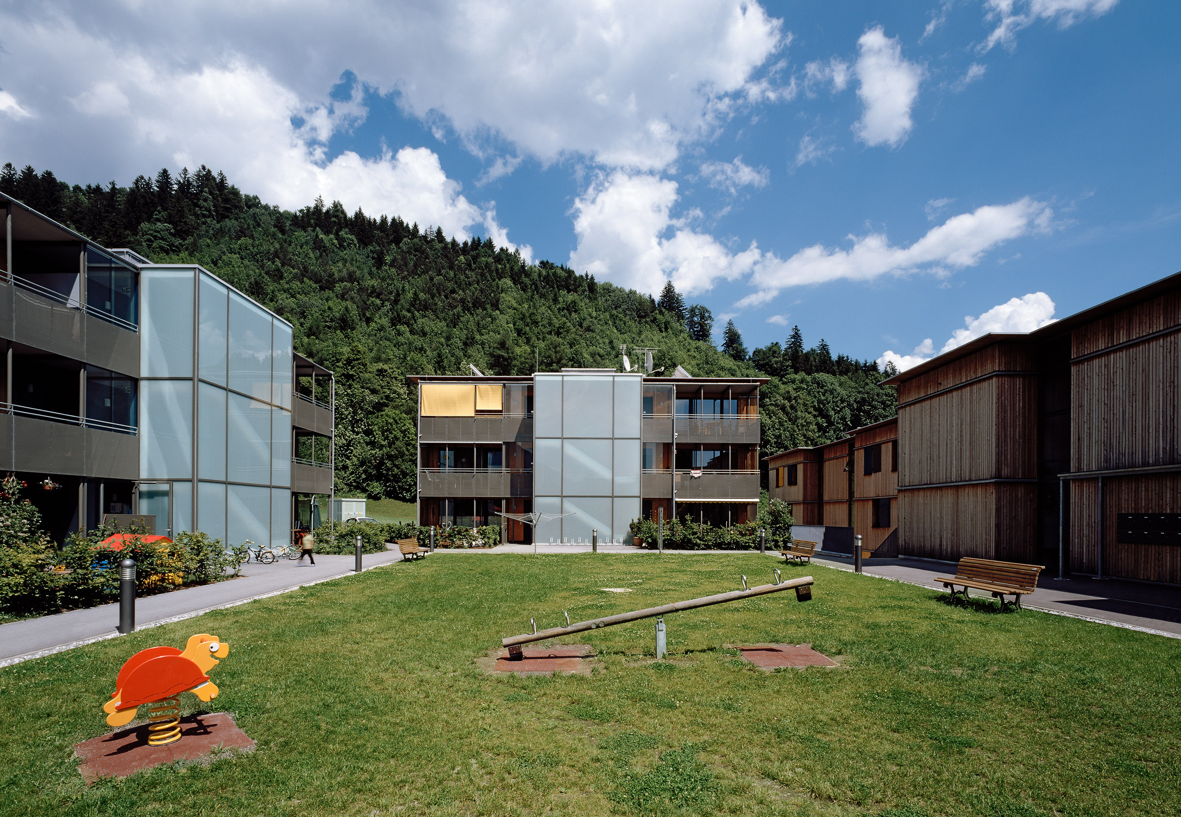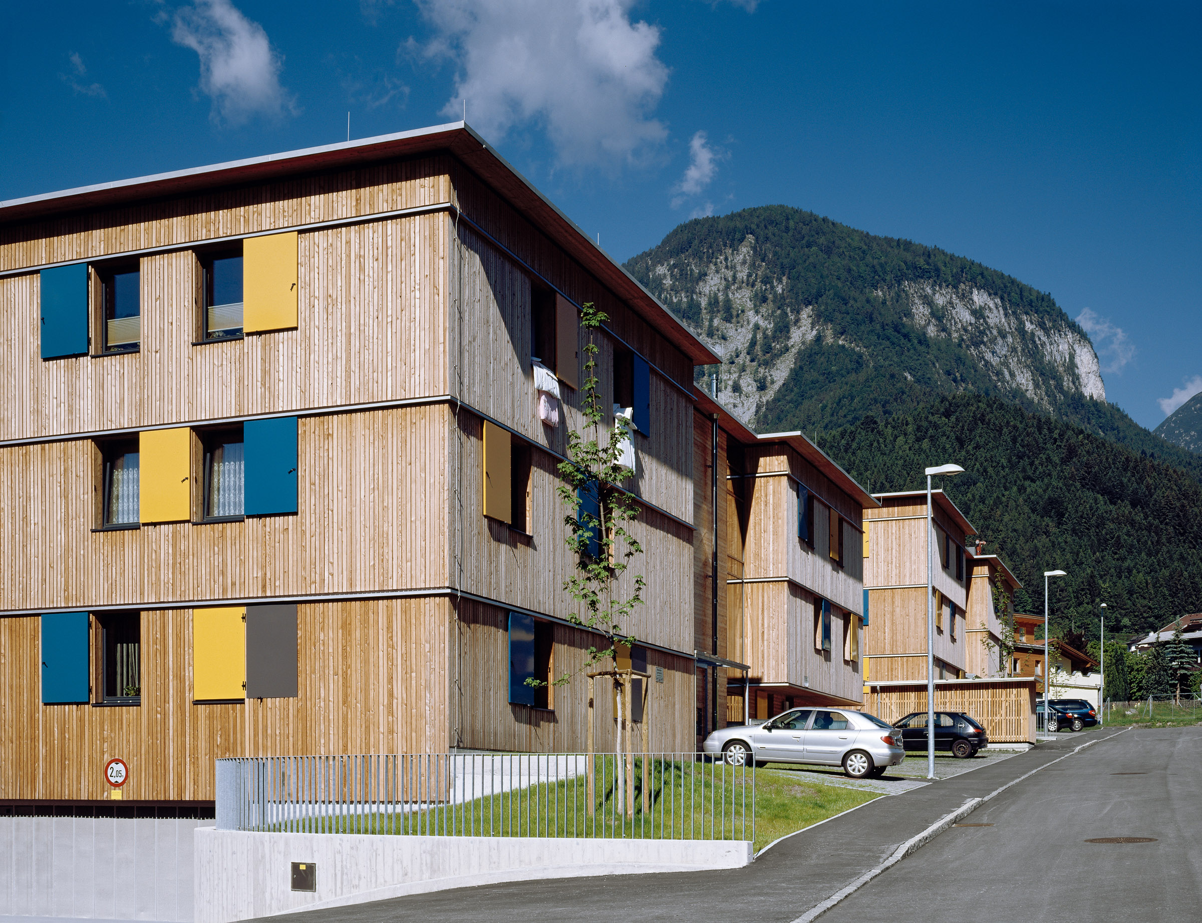 Mehrgeschossiger Wohnbau in Holz wird immer mehr gerade im Mietwohnungsbau als Alternative zu herkömmlichen Bauten gesehen. Dabei erhofft man sich neben der durchaus belegbaren Verminderung der CO2 Belastung (ca. Faktor 3) durch die Herstellung des Bauwerkes selbst eine Alternative zur herkömmlichen Materialwelt im Mehrwohnungsbau. So errichtet der gemeinnützige Wohnbauträger Neue Heimat Tirol auf den Niedermühlbichler Gründen in Jenbach eine Wohnanlage mit 67 Wohnungen in Holzbauweise und im Passivhausstandard. (Energieeinsparung für den Betrieb ca. Faktor 4 gegenüber Niedrigenergiehaus) Diese Anlage ist bereits der dritte Holzwohnbau der NHT, jedoch der erste in Passivhausqualität. Hier soll evolutionär ein weiterer Erfahrungsbaustein dazukommen und zudem ein Projekt entstehen, das in die Zukunft weist. Im ersten Bauabschnitt werden 42 Einheiten errichtet. Dieser bildet einen Hof, von dem aus alle Wohnungen erschlossen werden und der als Kinderspielfläche sowie großer Kommunikationsraum angeboten wird. Es sind hier auch alle großen Wohnungen angeordnet, ein familiengerechtes Wohnen ist hier das Hauptthema.