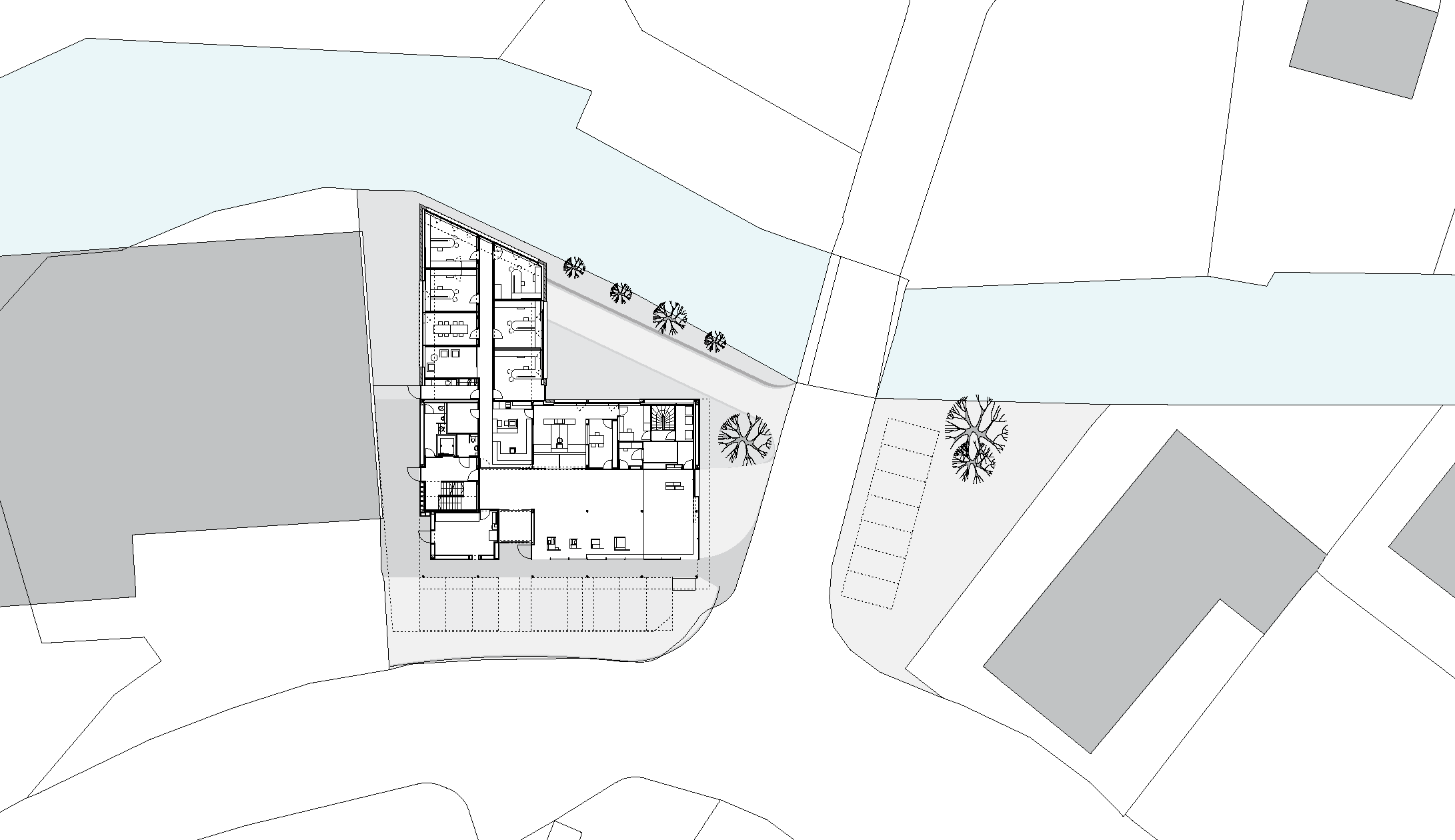 Geplant wurde ein 4-geschossiges Bankgebäude in kompletter Holzbauweise mit einer Gesamtnutzfläche von über 1.400 m².