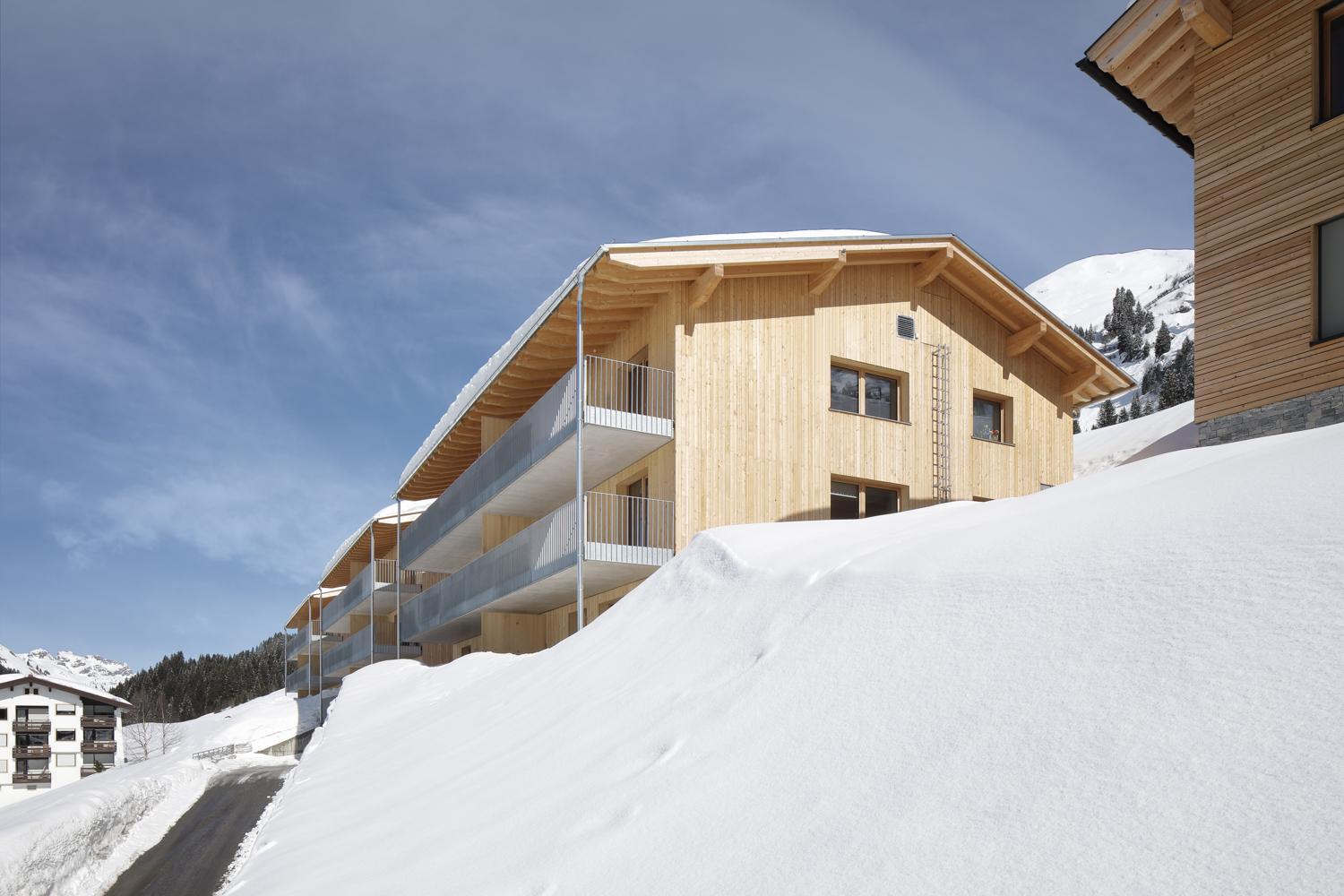 Die Umsetzung eines gemeinnützigen Wohnbauprojektes im international renommierten Wintersportort Lech am Arlberg stellt eine besondere Bauaufgabe dar. Diese exklusive Lage treibt die Quadratmeterpreise der Mietobjekte in die Höhe und macht leistbares Wohnen zu einer Herausforderung. Die Kosten müssen daher scharf kalkuliert werden, doch dürfen Sparmaßnahmen nicht an den falschen Stellen ansetzen, um Lebensqualität und Wohlbefinden der Bewohner zu gewährleisten.