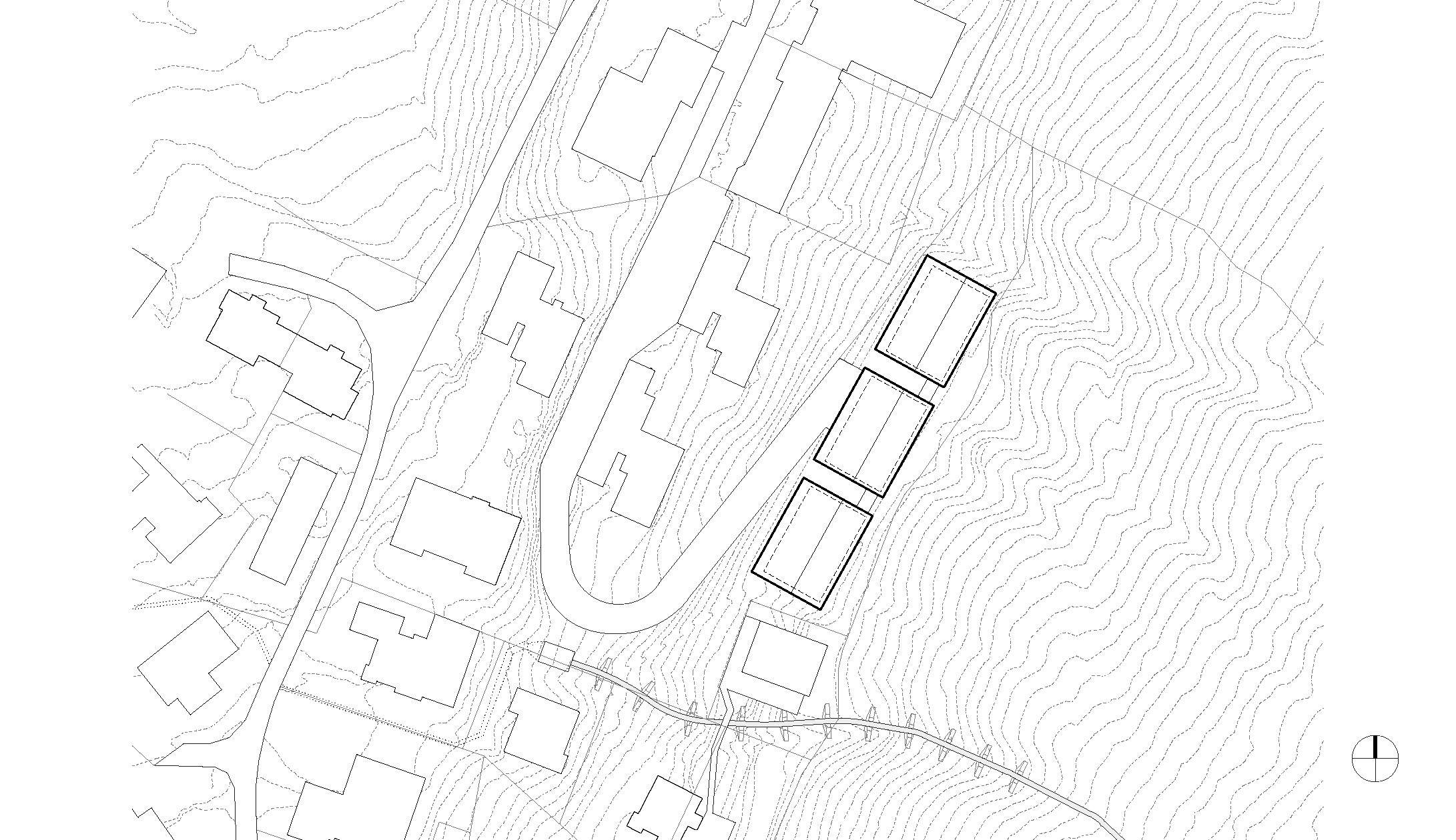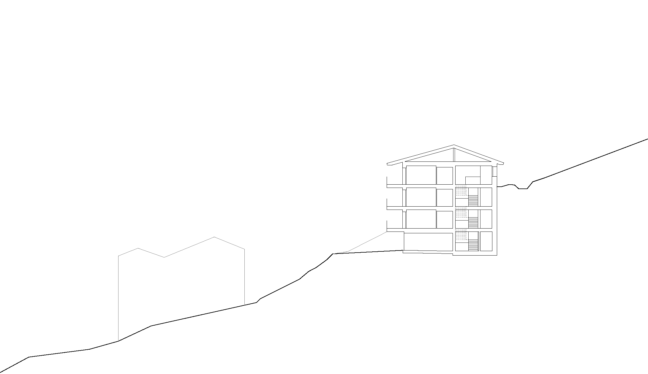 An einem steil nach Westen abfallenden Hang im Ortsteil Stubenbach sollten 18 Wohneinheiten mit je zwei bis vier Zimmern entstehen. Um die Körnung des umliegenden Quartieres aufzunehmen und eine optimale Belichtung sicherzustellen, wurde das Volumen in drei parallel stehende, analog dimensionierte Baukörper gegliedert. Diese sind durch eine Tiefgarage und die kostengünstig konzeptionierte, gemeinsame Erschließungsanlage an der Geländeseite miteinander verbunden. Die Gebäudetrakte verfügen über drei Geschosse, in denen jeweils zwei unterschiedlich geschnittene Wohnungen angelegt wurden, die sich zu großzügigen vorgelagerten Balkonen öffnen. Hier können die Mieter das Bergpanorama und die Nachmittagssonne genießen. Die Einheiten im Erdgeschoss weisen kleinere Dimensionen auf, da auch die allgemeinen Abstellflächen dort untergebracht sind. In den Stockwerken darüber ermöglicht die segmentierte Gebäudestruktur eine Orientierung der Grundrisse nach zwei Richtungen.