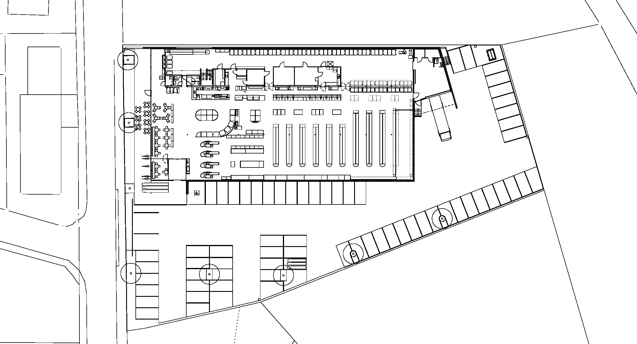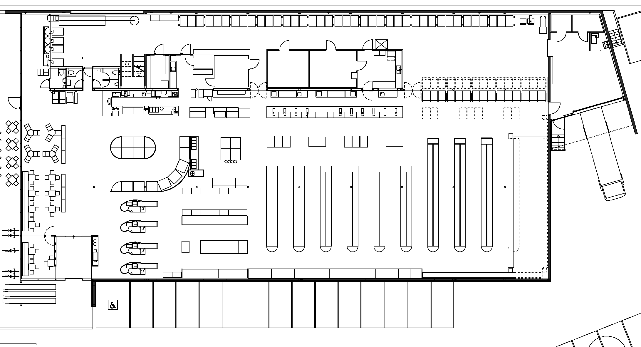 Schon vor dem Eintritt steht man nicht vor einem geschlossenen Gebäude, mit Werbung verklebt und sucht die schmale Öffnung des Einganges, sondern großzügige Glasfronten machen neugierig auf das dahinter liegende. Nach Betreten der Halle wird der Kunde von einer duftenden Cafebar empfangen, die der Anfang der großzügigen Frischeabteilung ist. Hier kann man das ursprüngliche Flair des alten Marktes wieder erleben, einen schnellen Jausen- oder Obsteinkauf tätigen, ohne durch ein Regalla-byrinth laufen zu müssen, mit Verkäufern reden oder sogar mit Freunden oder Bekannten in gemütlicher Atmosphäre einen „Schwatz“ abhalten und einen Kaffee oder Tee trinken. Von diesem Marktplatz hat man die Übersicht auf die Regalzeilen, sodass man seine Waren ohne langes Herumirren auch findet.
