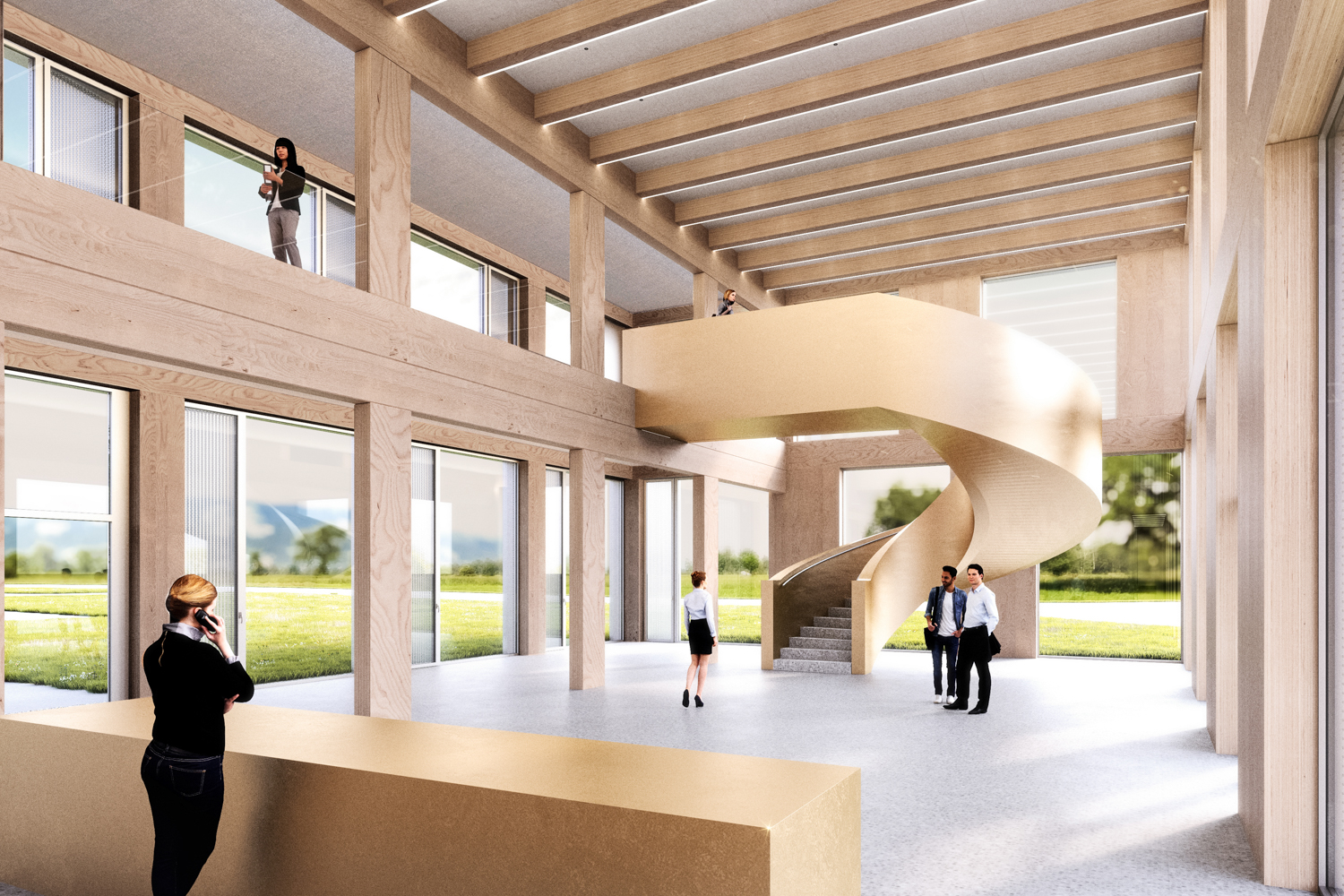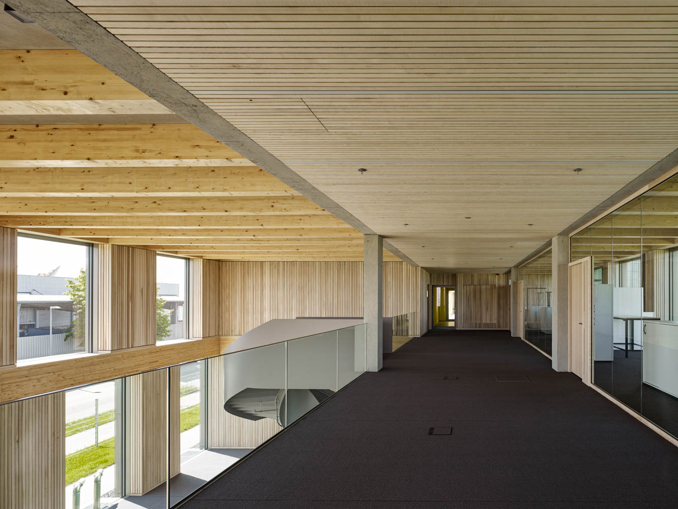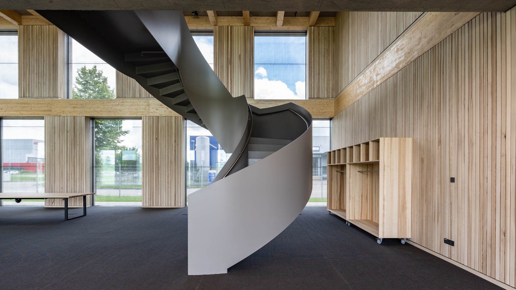 Das SWG Produktion Schraubenwerk Gaisbach GmbH in Waldenburg erfreut sich eines stetigen Anstiegs seiner Produktionskapazitäten. 230 Mitarbeiter erzeugen bis zu 12 Millionen Schrauben täglich, die Tendenz ist steigend. In Resonanz zu einer notwendigen räumlichen Expansion entwickelt sich zunächst die Idee, den Bestand des Firmensitzes im hohenlohischen Waldenburg durch einen Anbau zu erweitern. Das Entwurfsteam um Prof. Hermann Kaufmann und seine Partner argumentiert aber nachdrücklich für die Realisierung eines autonomen Neubaues, um Beeinträchtigungen des laufenden Betriebes sowie problematische Anschlüsse und Übergänge zu vermeiden. Zudem stärkt ein souveräner architektonischer Auftritt sowohl die öffentliche Wahrnehmung als auch das Selbstverständnis des Unternehmens.