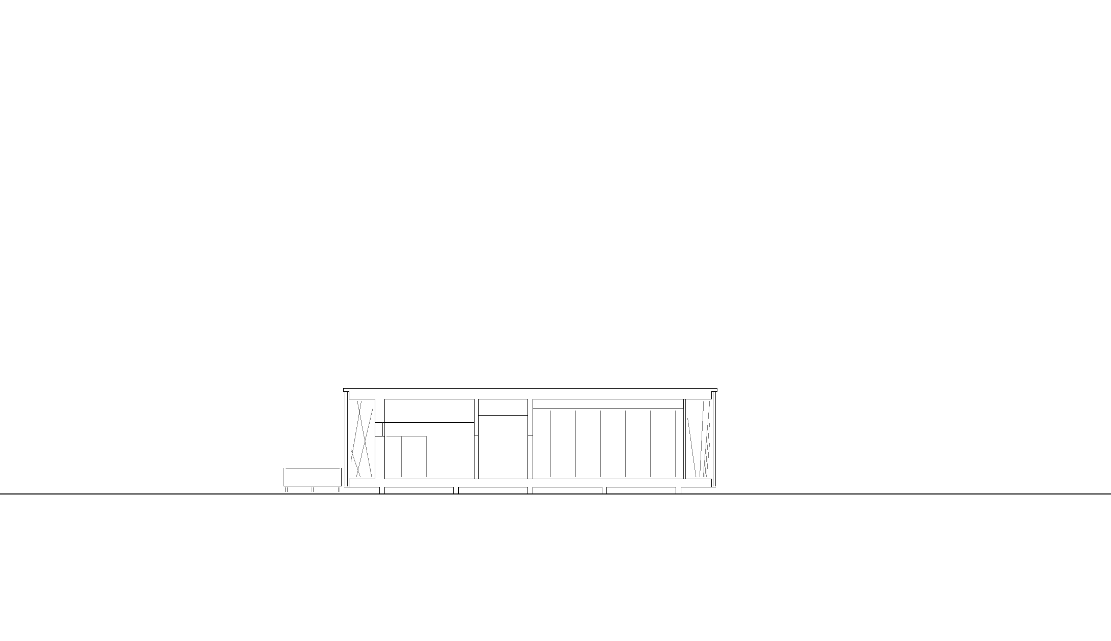 Die Konstruktion wurde auf eine Höhe von 75 Zentimeter aufgeständert und als Holzrahmenbau erstellt, der Boden und das Dach aus 9 mal 4 Meter großen Elementen gefügt. Durch den hohen Vorfertigungsgrad konnte der gesamte Aufbau in wenigen Monaten erfolgen.