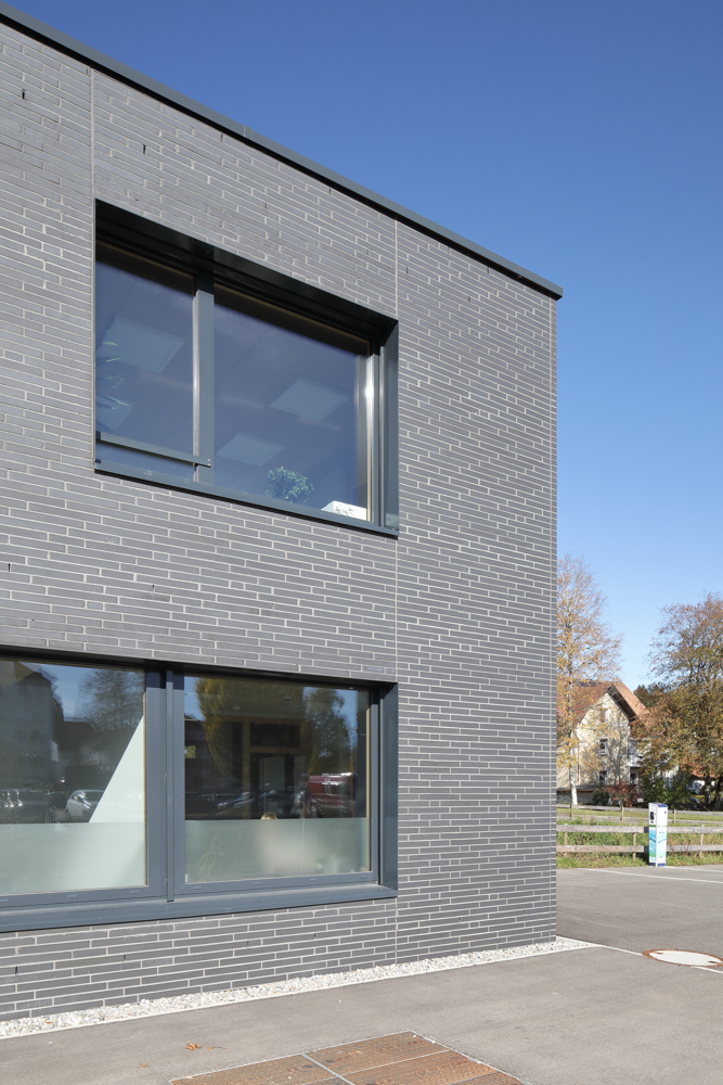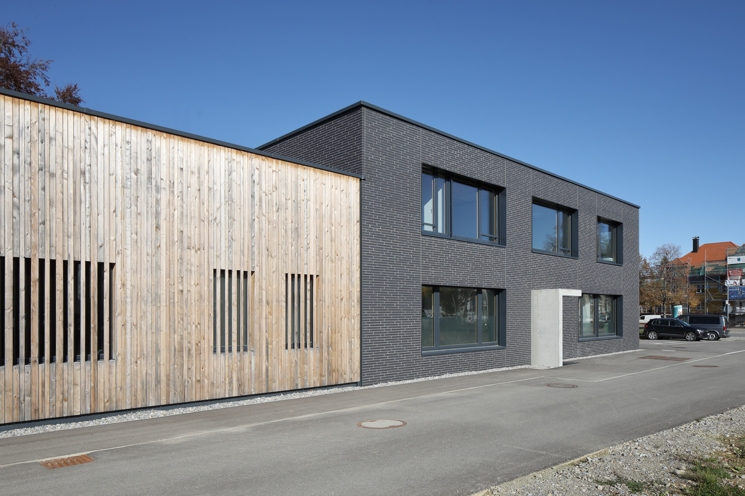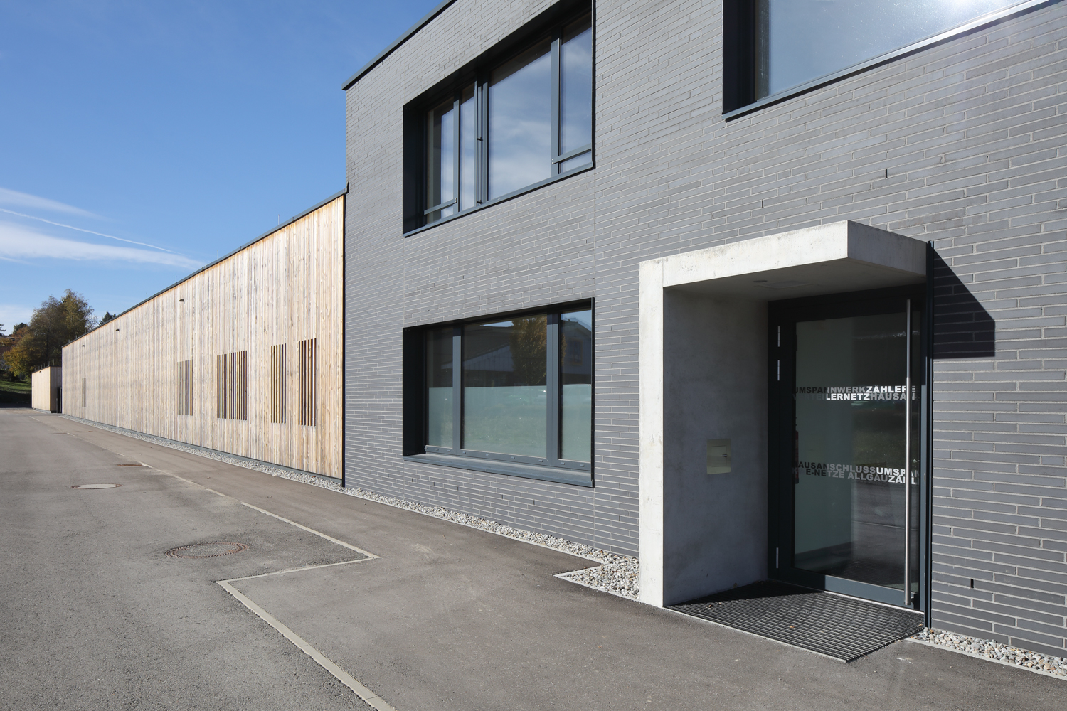 Die Kleinstadt Lindenberg im Westallgäu ist in das Versorgungsnetz des Vorarlberger Energieunternehmens VKW eingebunden. In einer locker bebauten Mischzone westlich des Ortskerns wird der weitläufige Altbestand der Betriebsstelle durch ein kompakt gestaltetes Ensemble ersetzt, um die wertvollen zentrumsnahen Flächen mit Wohnbauten zu verdichten. Der Gebäudekomplex und seine Außenanlagen rücken von der Sedanstraße zurück und erstrecken sich als eingefasstes Areal entlang der neu geplanten Erschließungsachse.