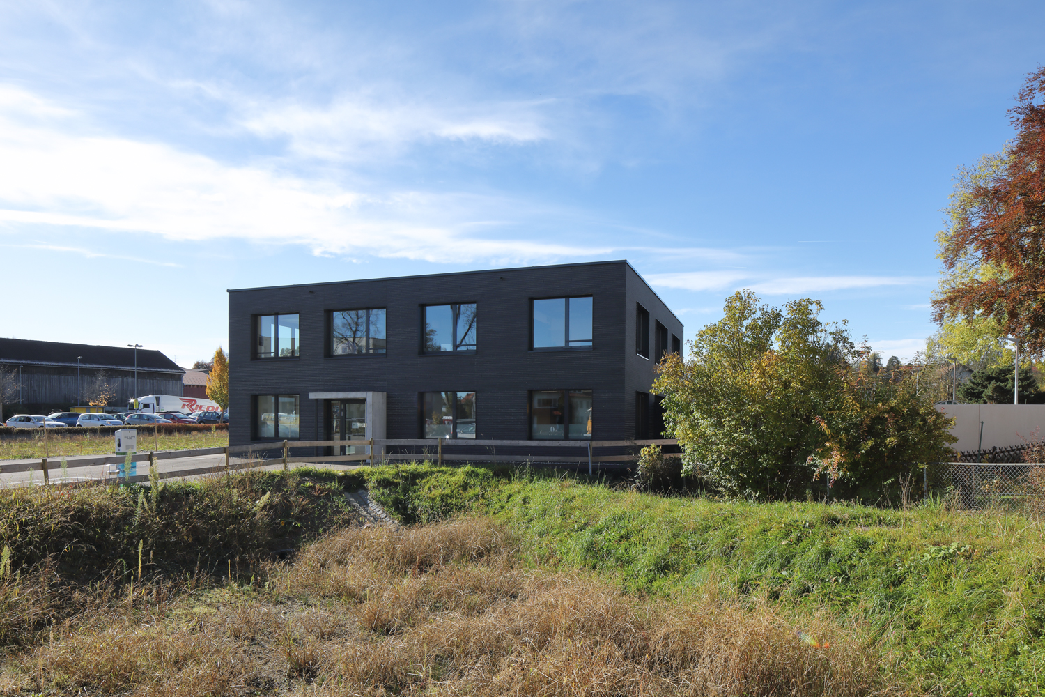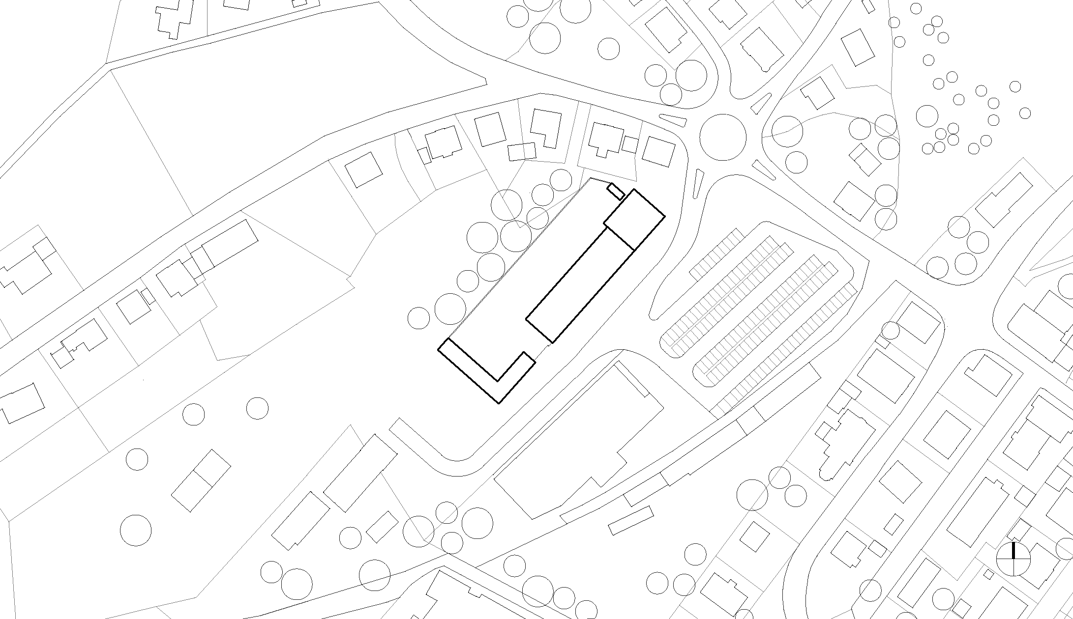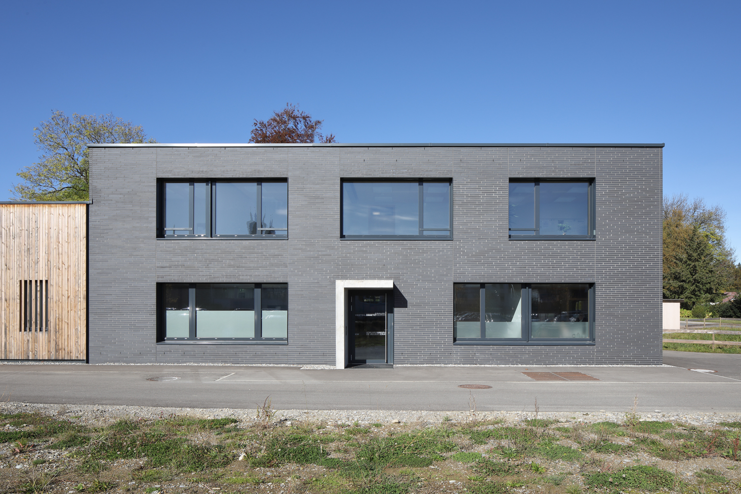 Die Kleinstadt Lindenberg im Westallgäu ist in das Versorgungsnetz des Vorarlberger Energieunternehmens VKW eingebunden. In einer locker bebauten Mischzone westlich des Ortskerns wird der weitläufige Altbestand der Betriebsstelle durch ein kompakt gestaltetes Ensemble ersetzt, um die wertvollen zentrumsnahen Flächen mit Wohnbauten zu verdichten. Der Gebäudekomplex und seine Außenanlagen rücken von der Sedanstraße zurück und erstrecken sich als eingefasstes Areal entlang der neu geplanten Erschließungsachse.