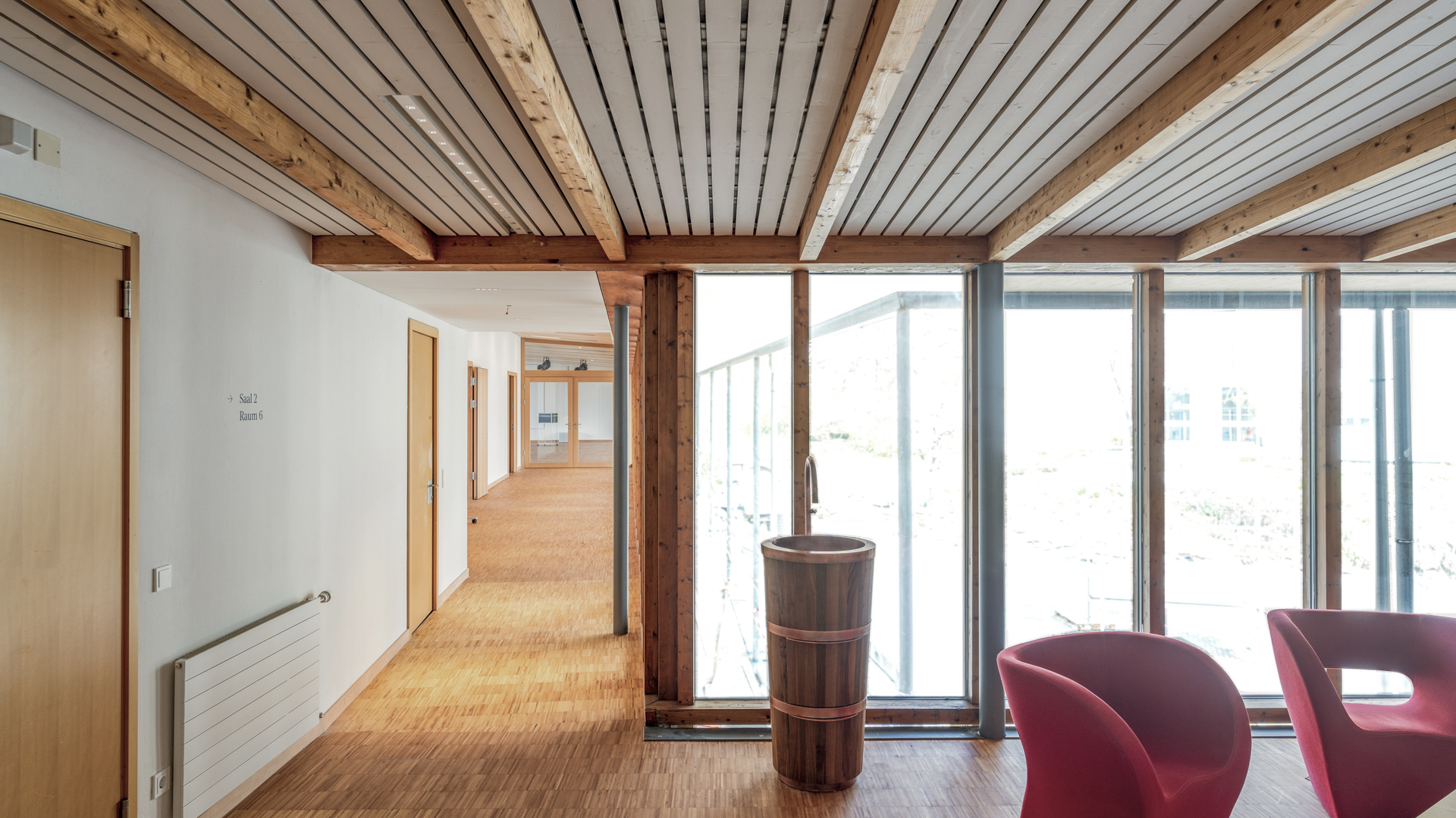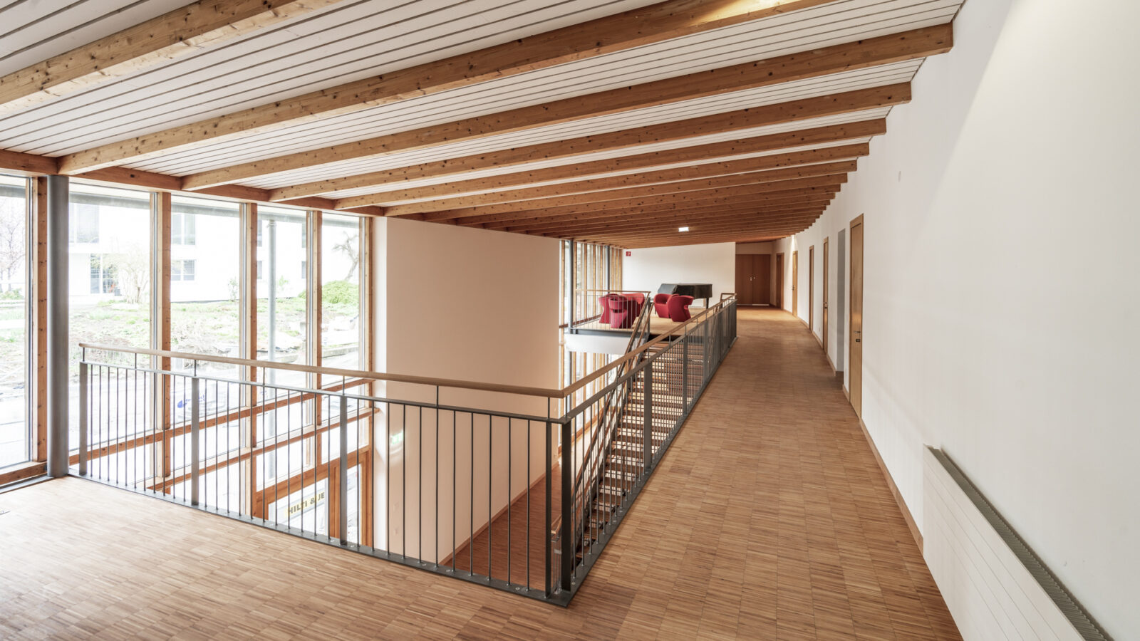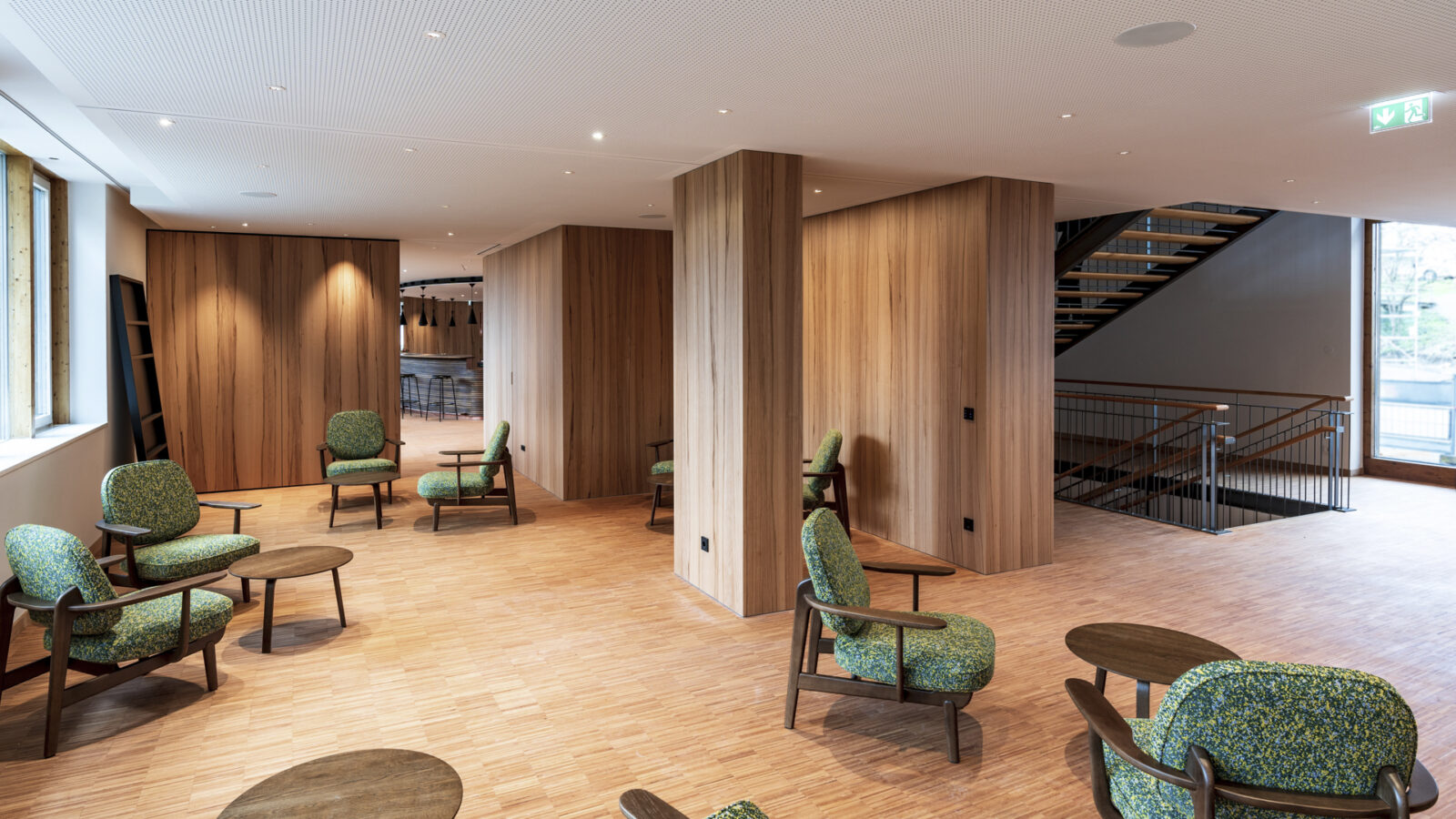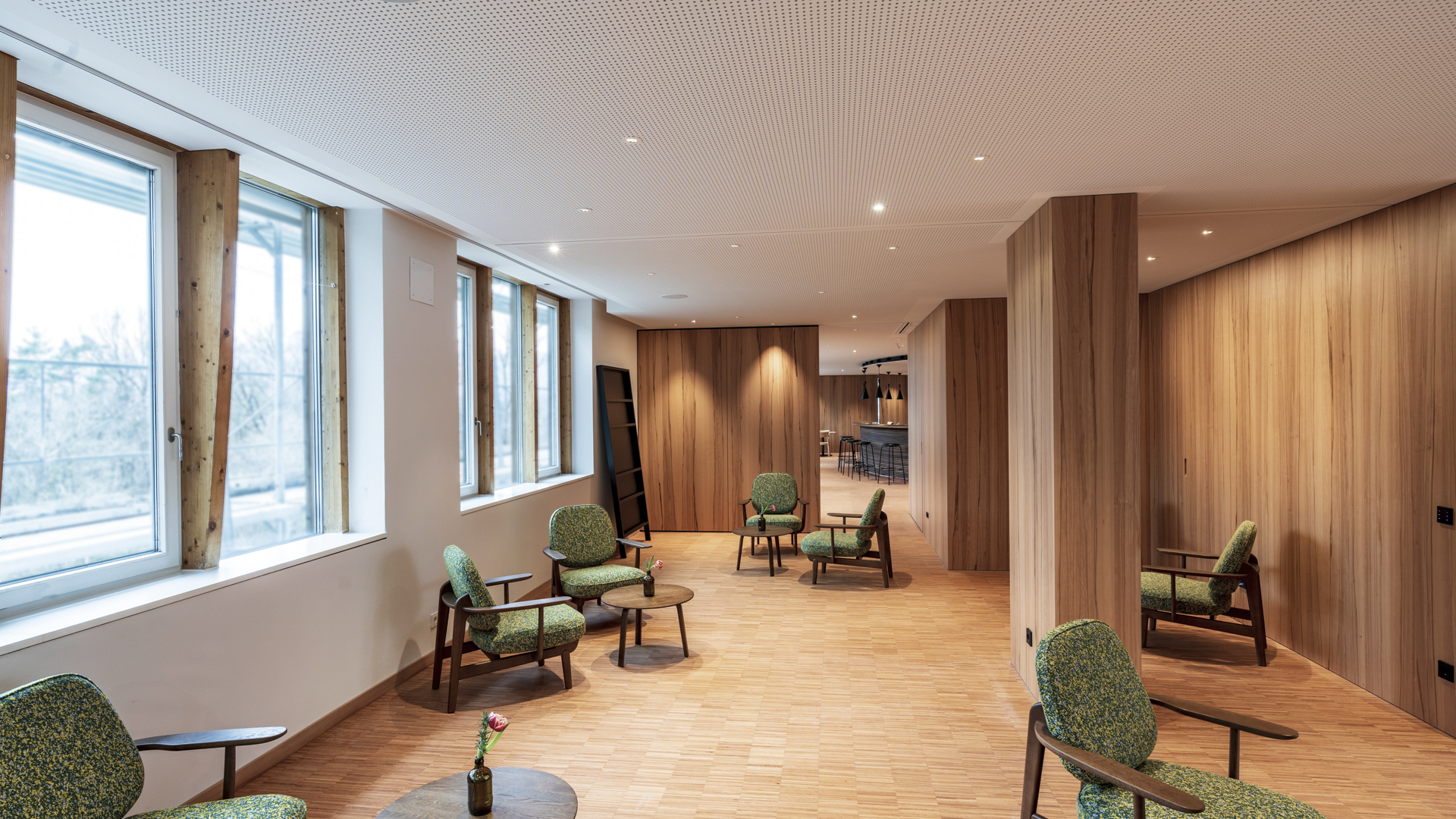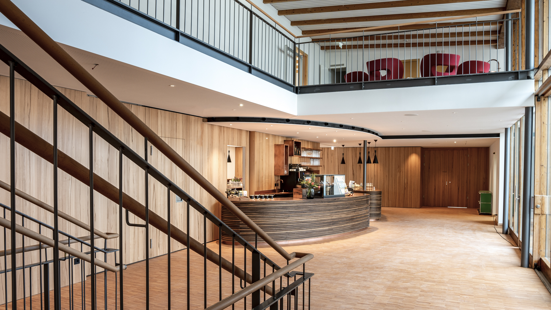 The renovations were carefully designed to give the existing building a high degree of openness, transparency and comfort and to create additional space. While the staff flats in the basement were converted into a creative space and light offices, various other areas of use were combined and restructured on the access level.