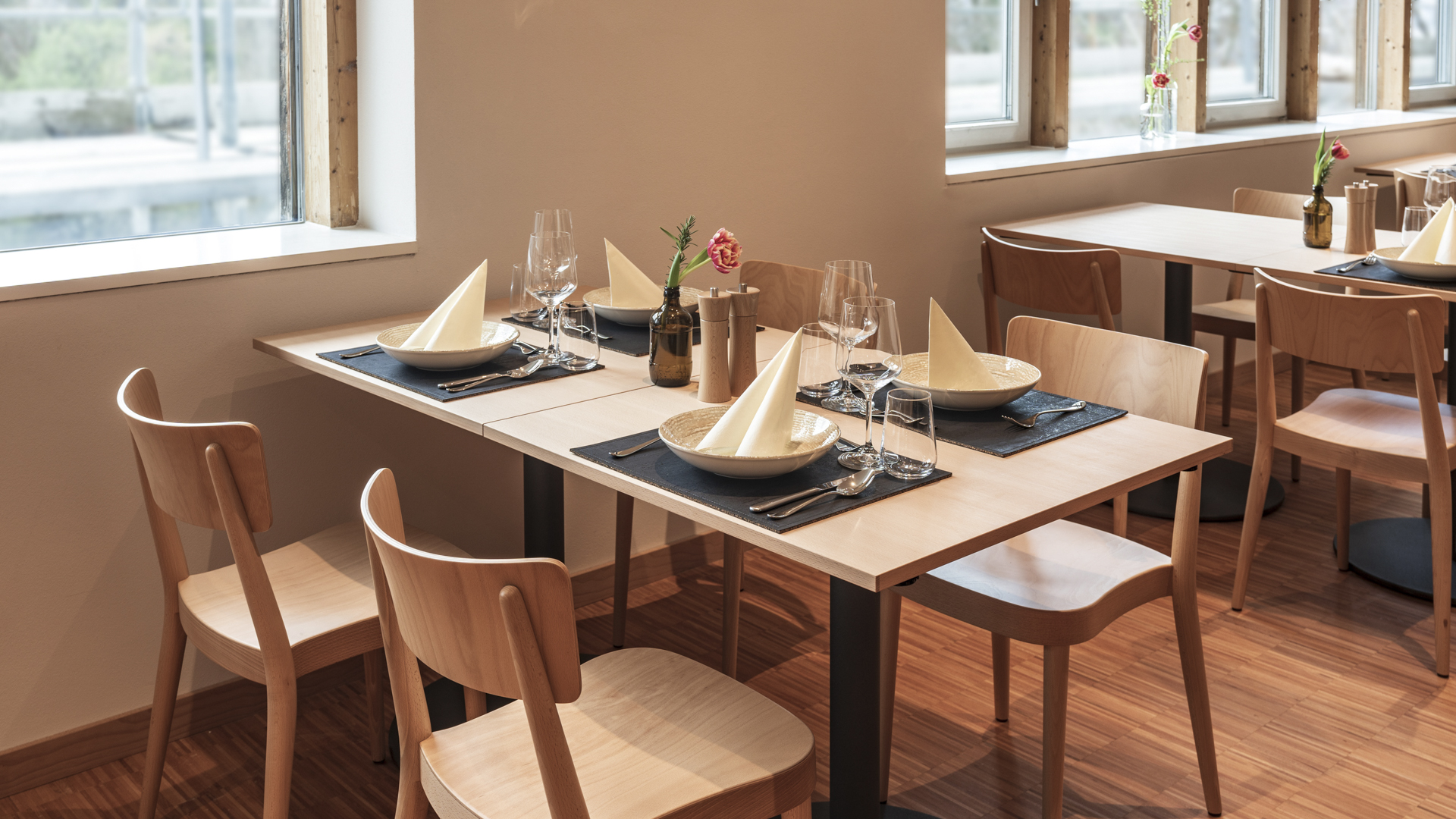 More than 30 years ago, Hermann Kaufmann and Christian Lenz designed the L-shaped main building as a landscape-defining structure that captures the softly flowing outdoor spaces. Now, the two architects have joined forces again to gently renovate the complex and to equip and design it in a contemporary way.