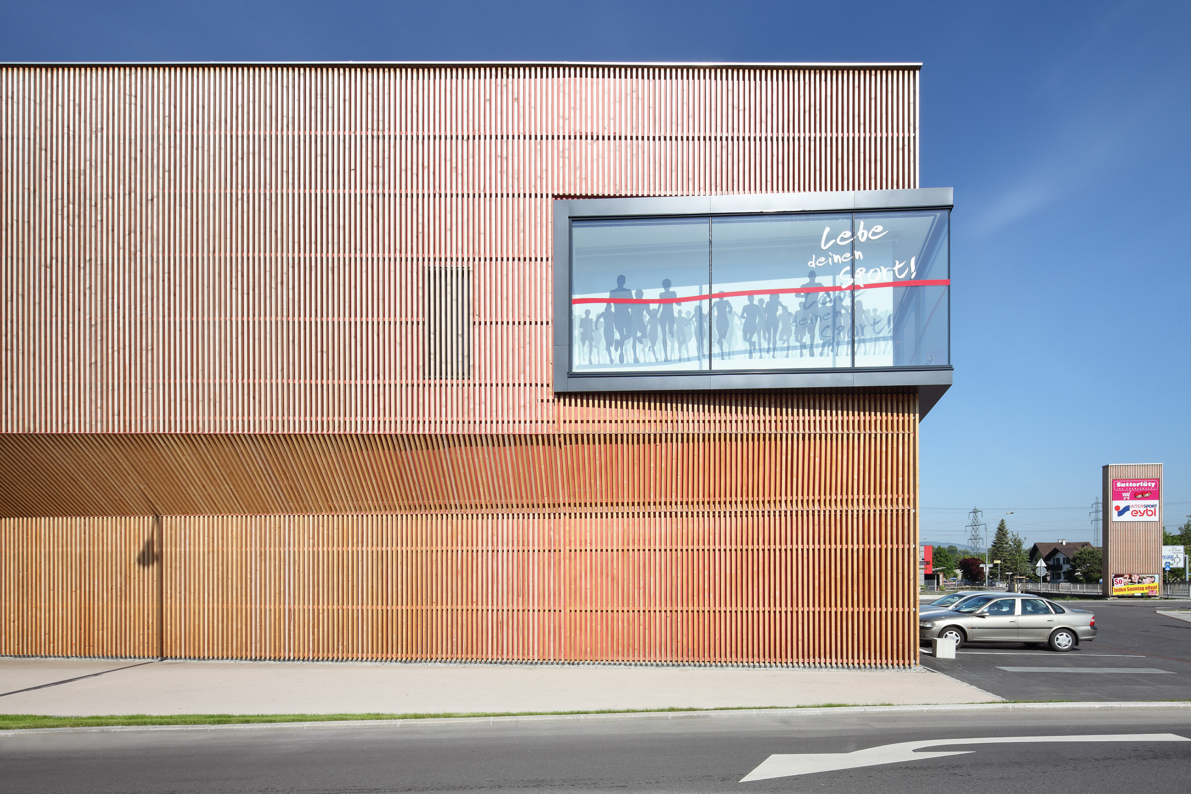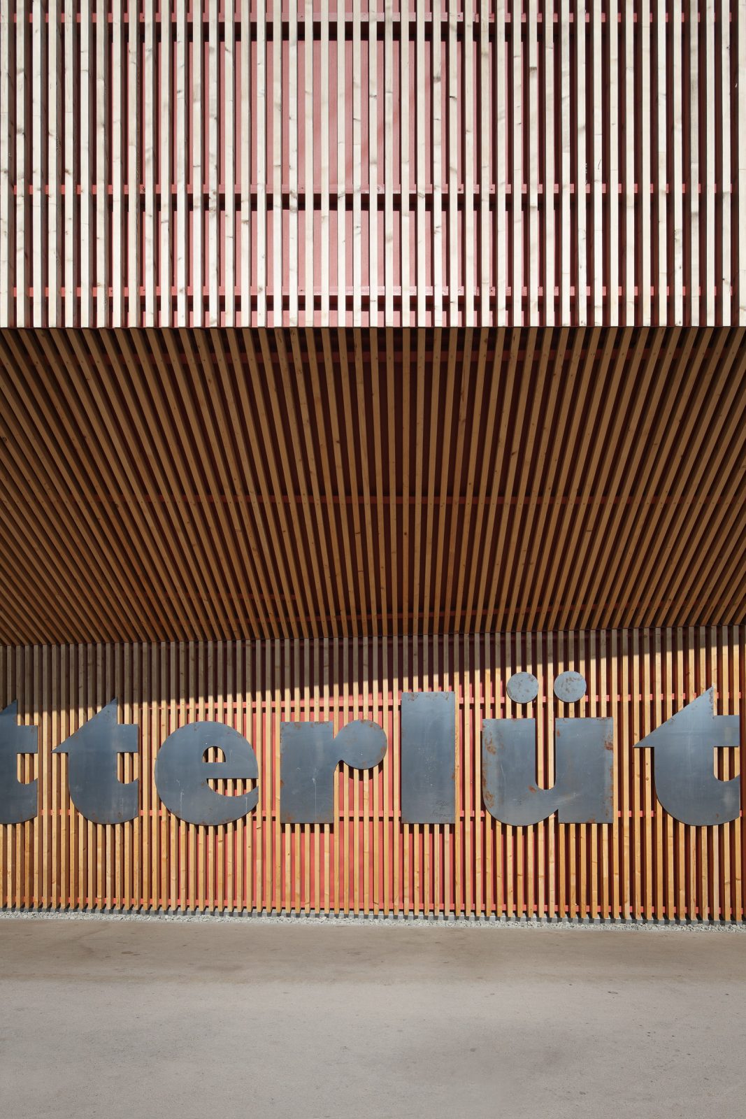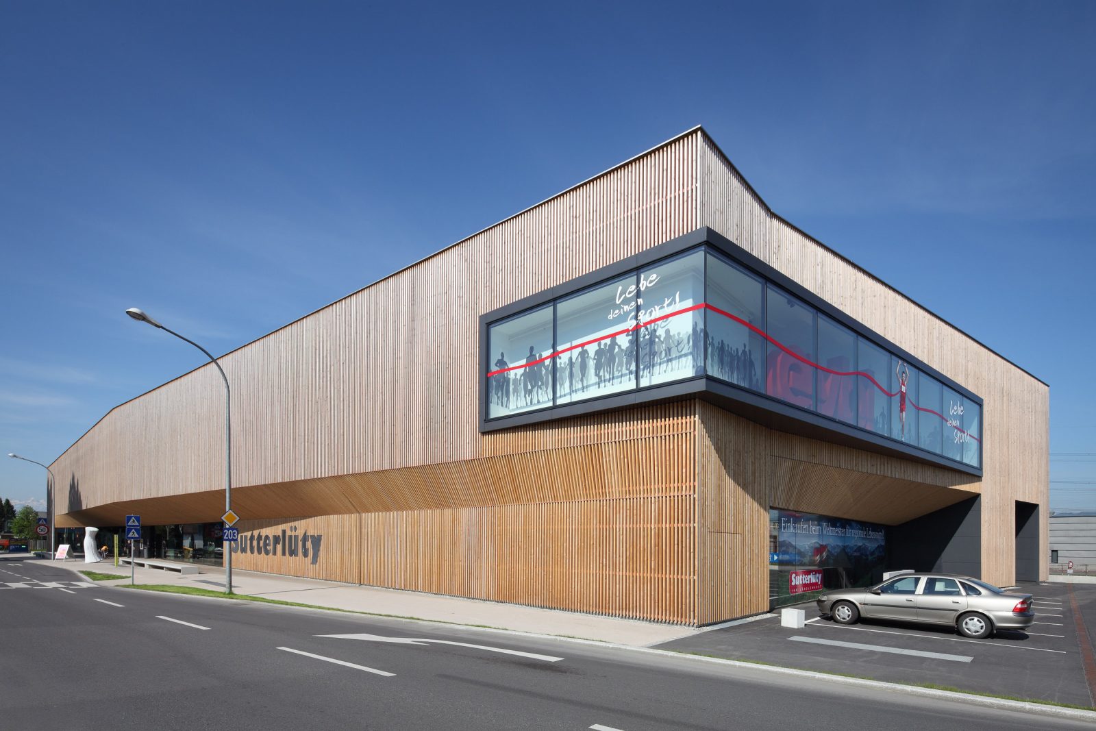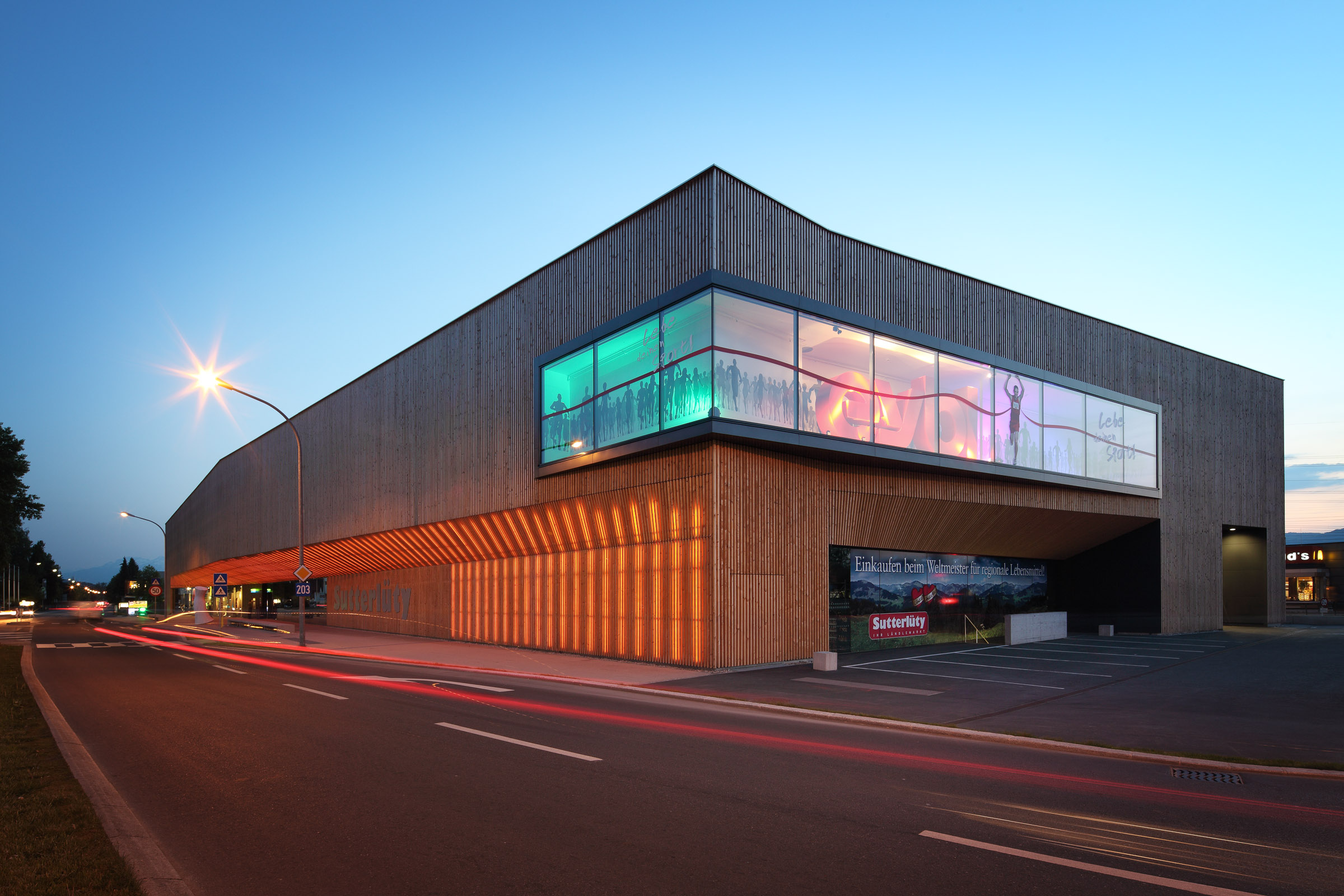 The building consciously rejects the language of the simple “box”, instead offering a vivid interpretation, inspired by the town itself. In order to emphasise its distinctness, the front is kept very calm with a considered use of materials, in this case a layer of spruce. Sutterlüty is well known for its honest approach and regional roots. That philosophy is reflected in the building by using regional materials, specifically timber.