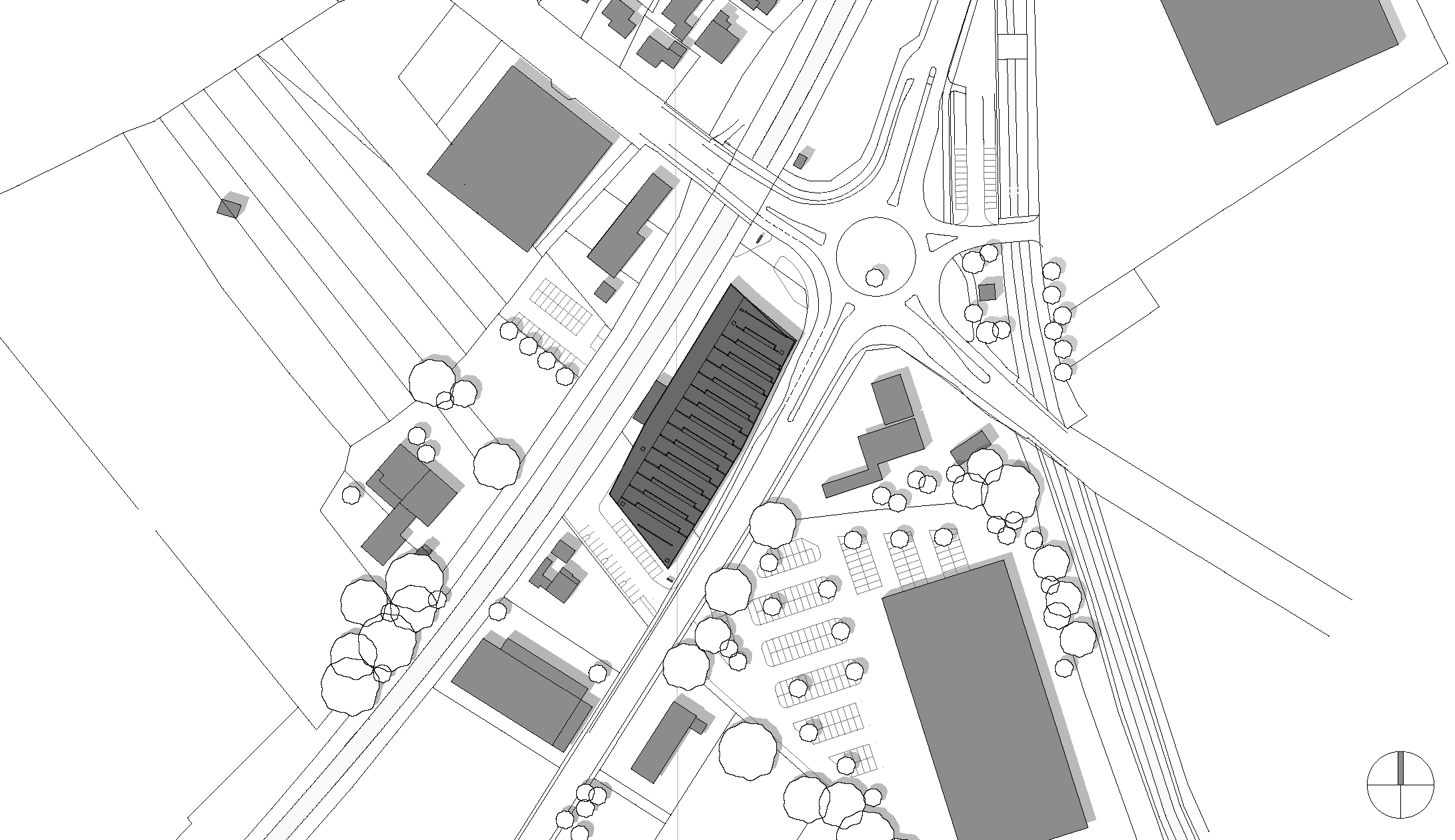 The architecture of the building has multiple sides, with varying attributes and geometry. The unexposed sides are calm and contained, whereas the “shop fronts” are structurally more expressive and angular. Viewed from the roundabout, the ‘face’ reveals its personality while the longer side receives the visitor with a sweeping, generous gesture that culminates in the entrance way.