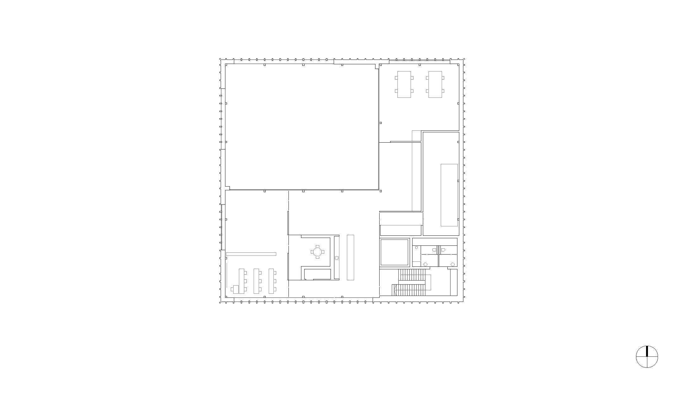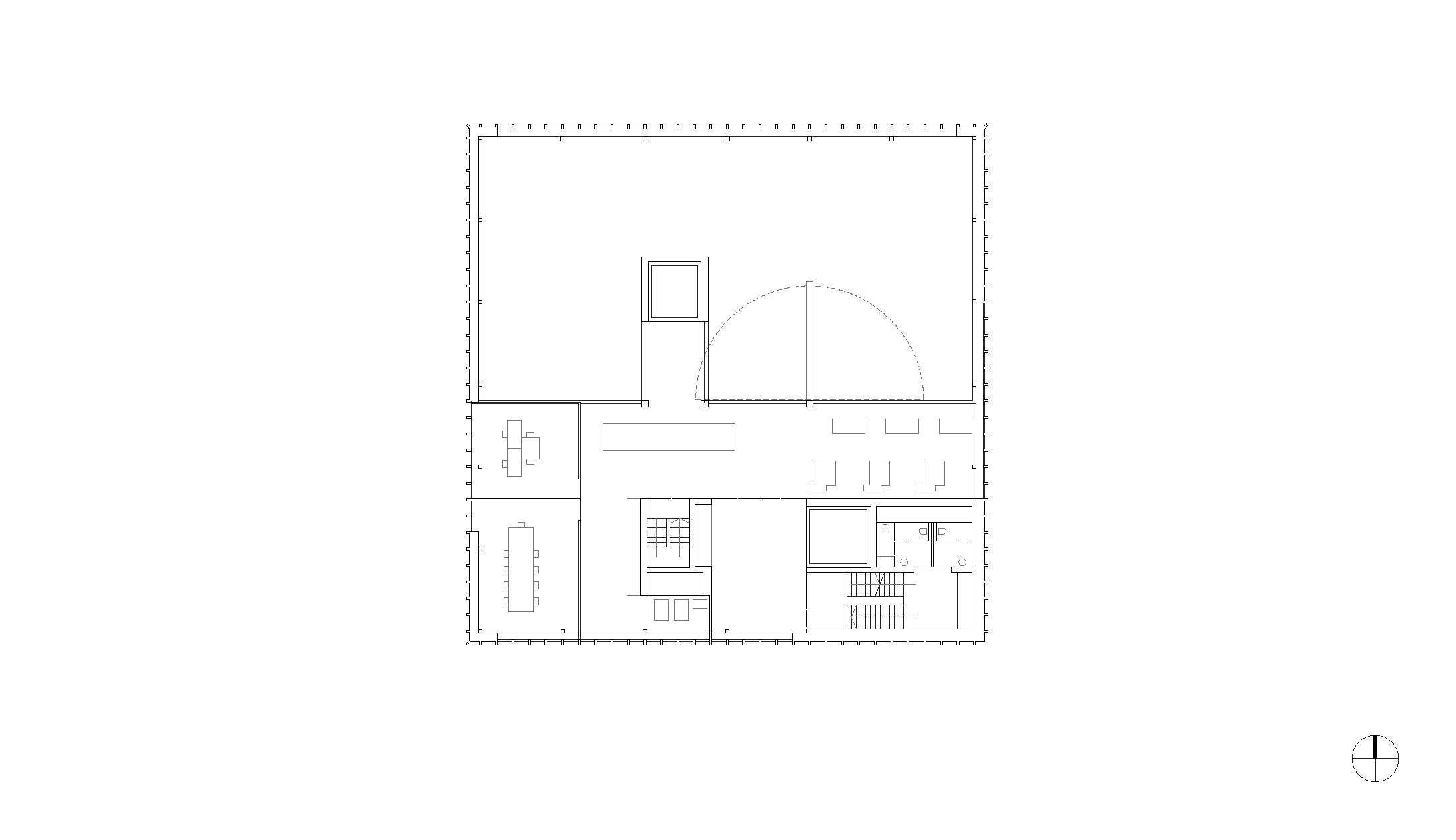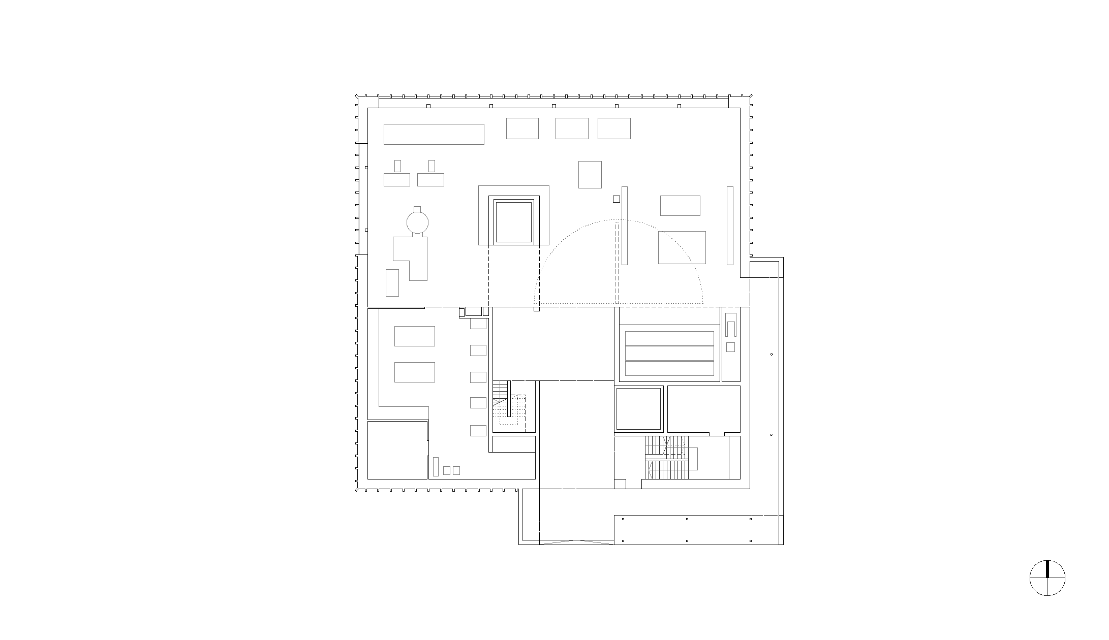 On top of the concrete basement, with technical and service zones, four storeys were built in steel-concrete composite construction. The workrooms of the metal technology training branch occupy the two lower floors. The heart of the building is a two-storey machine hall, which opens extensively to the north and creates visual links and communication axes through extensive gallery areas.