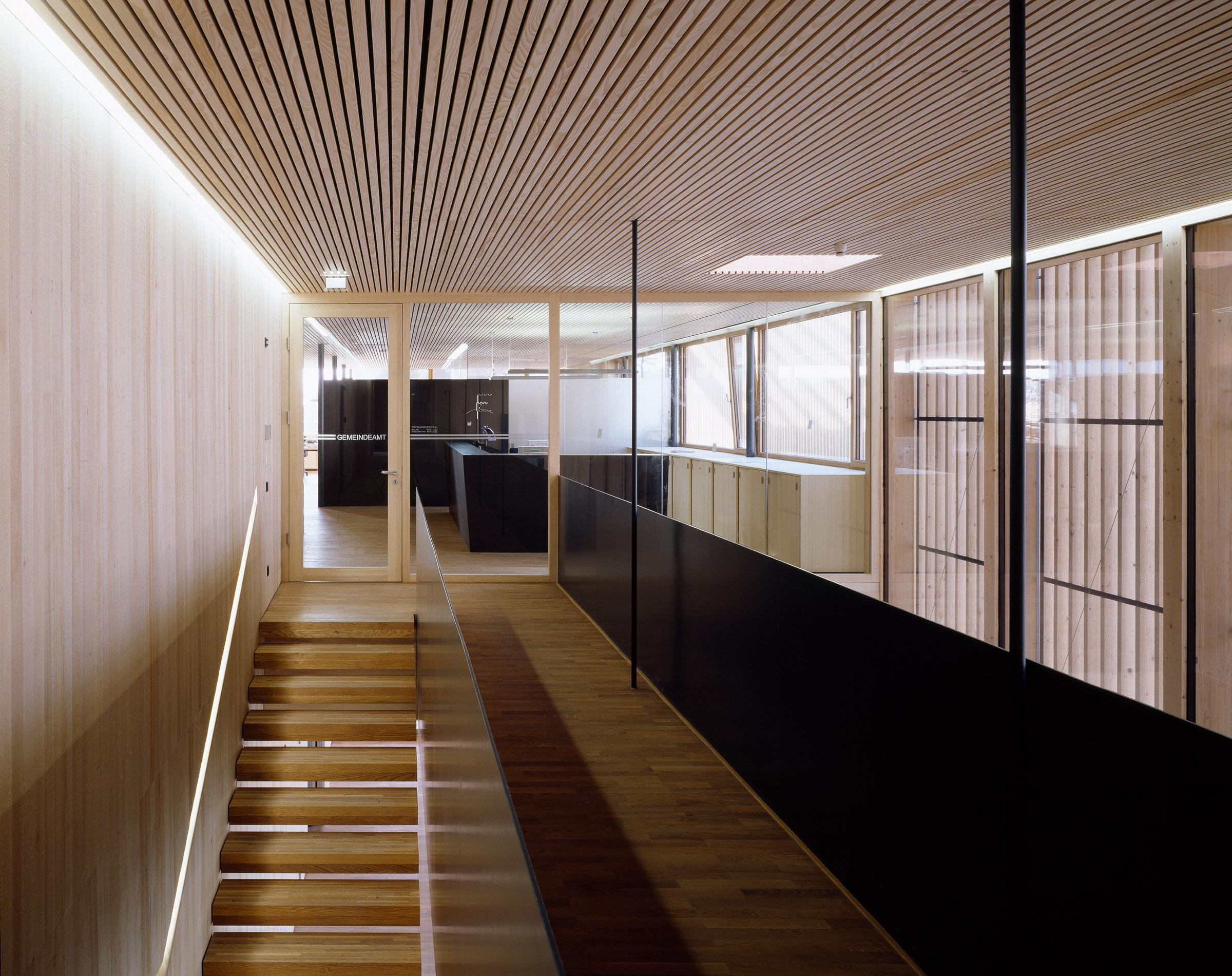 Over the years that Ludesch developed, the town had never created a concentrated centre or a traditional village square. The spatial relationship between the church, school and the old council offices was incoherent. The new two-story building creates the urban focal point that the town needed, bringing with it newly defined public spaces including a courtyard, with a beautiful glass canopy, that opens up onto the main road. The project offers the town a multipurpose zone, integrating a café, a bank, the library, offices, seminar rooms and event spaces.