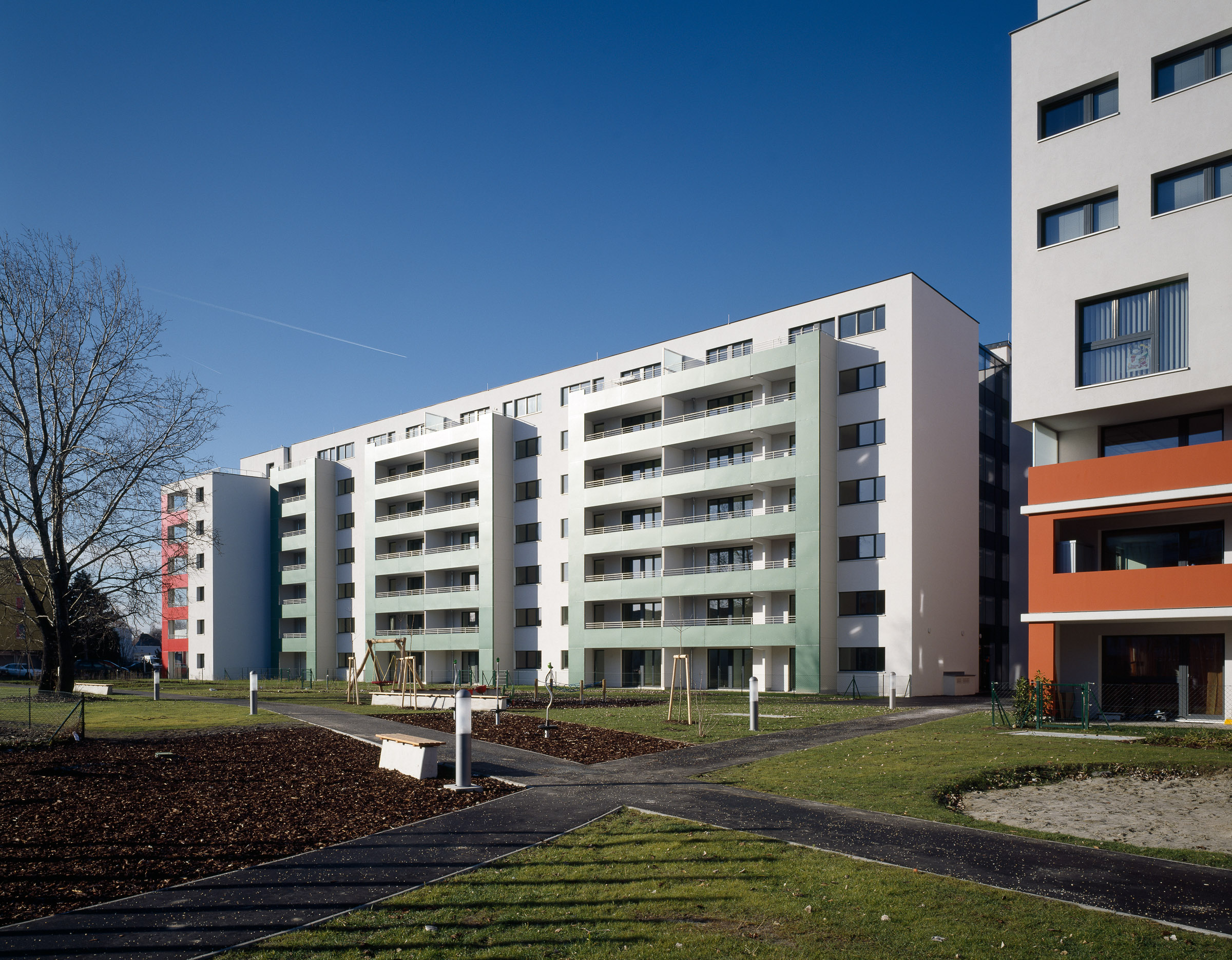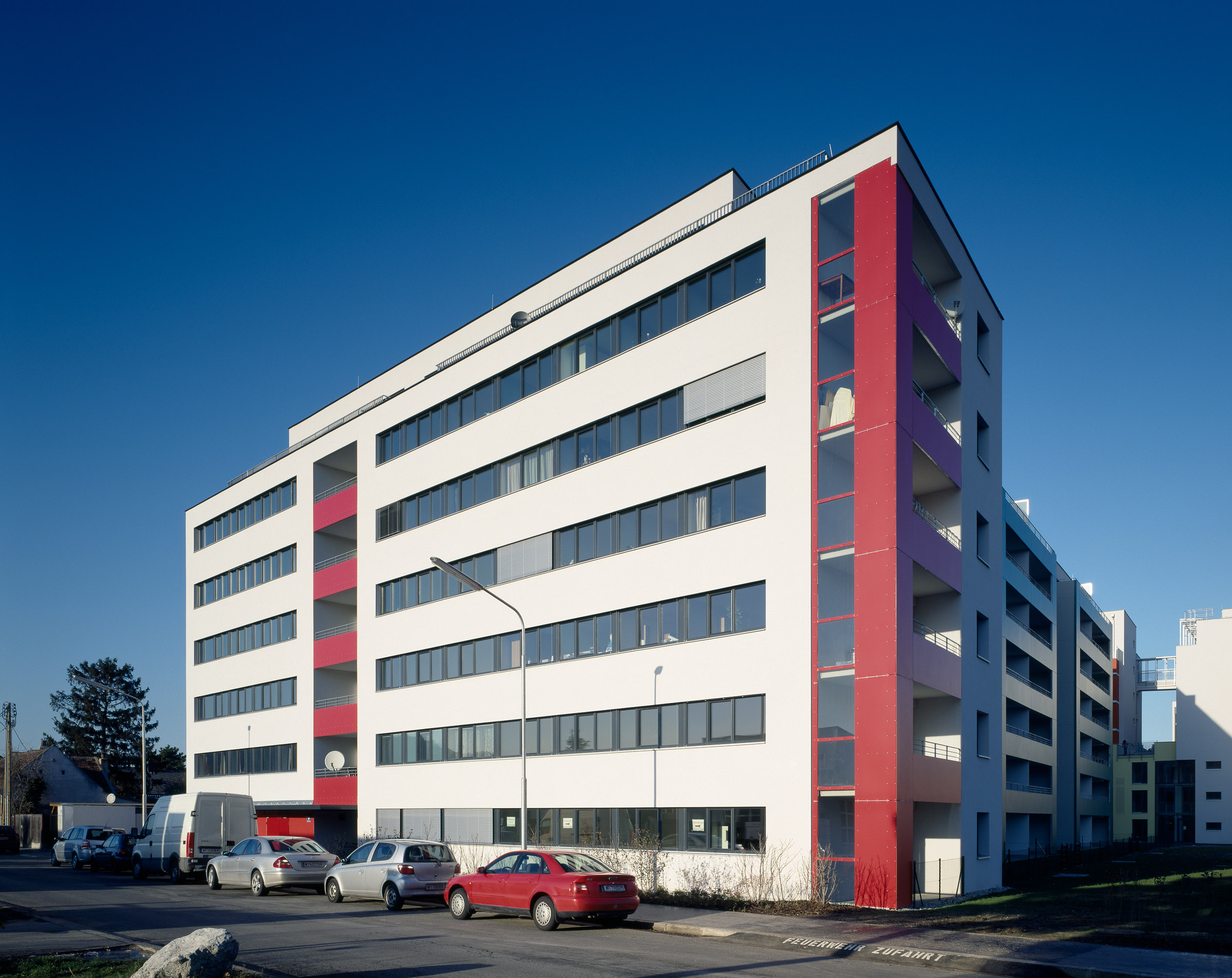 We answered a tender process in Vienna for a new style of development. The goal is the construction of approximately 100 flats, all reaching Passive House construction standards. In Vienna this is the first Passive House standard project. Also, a first for the city is the realisation of the seven-storey building in mixed timber construction.