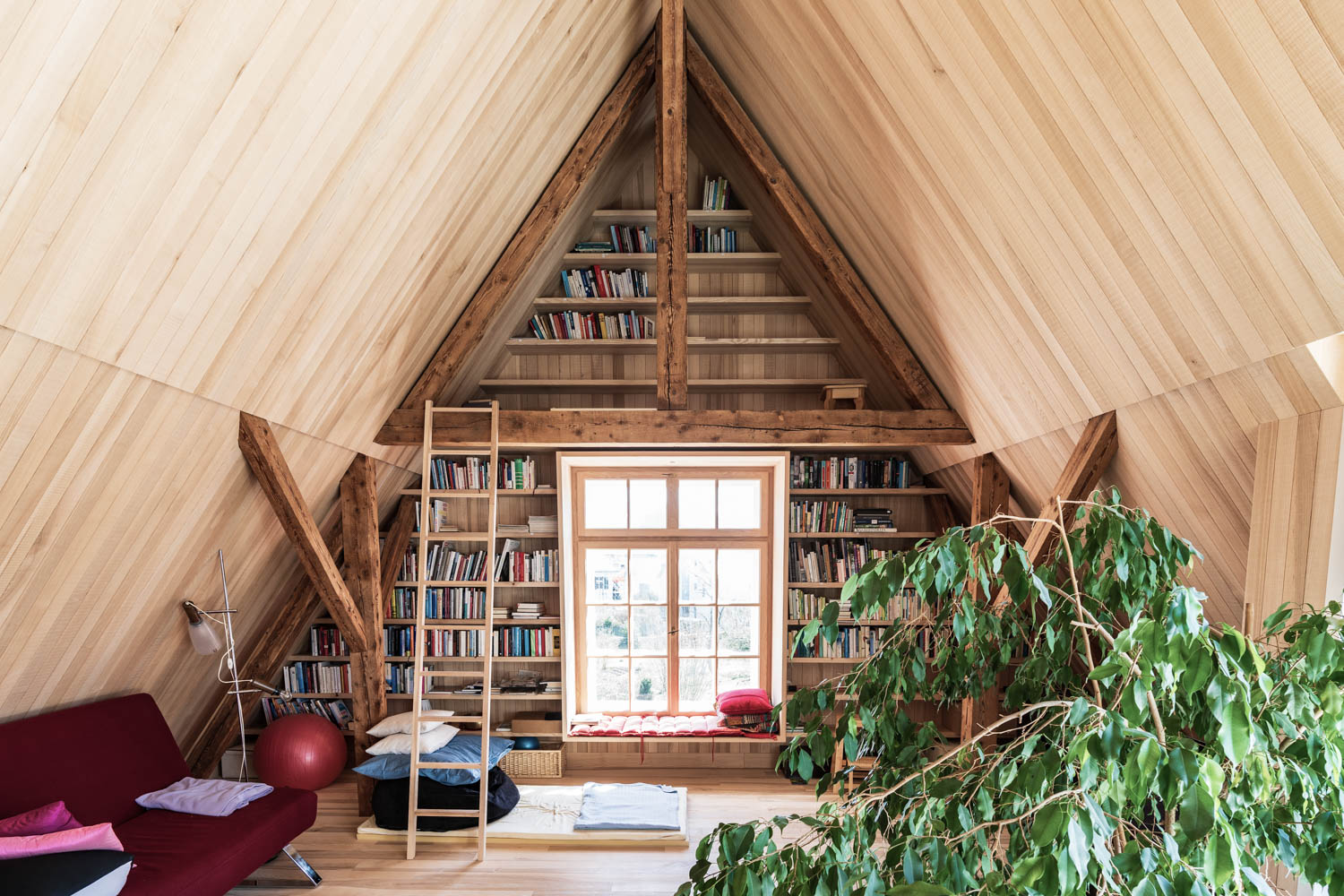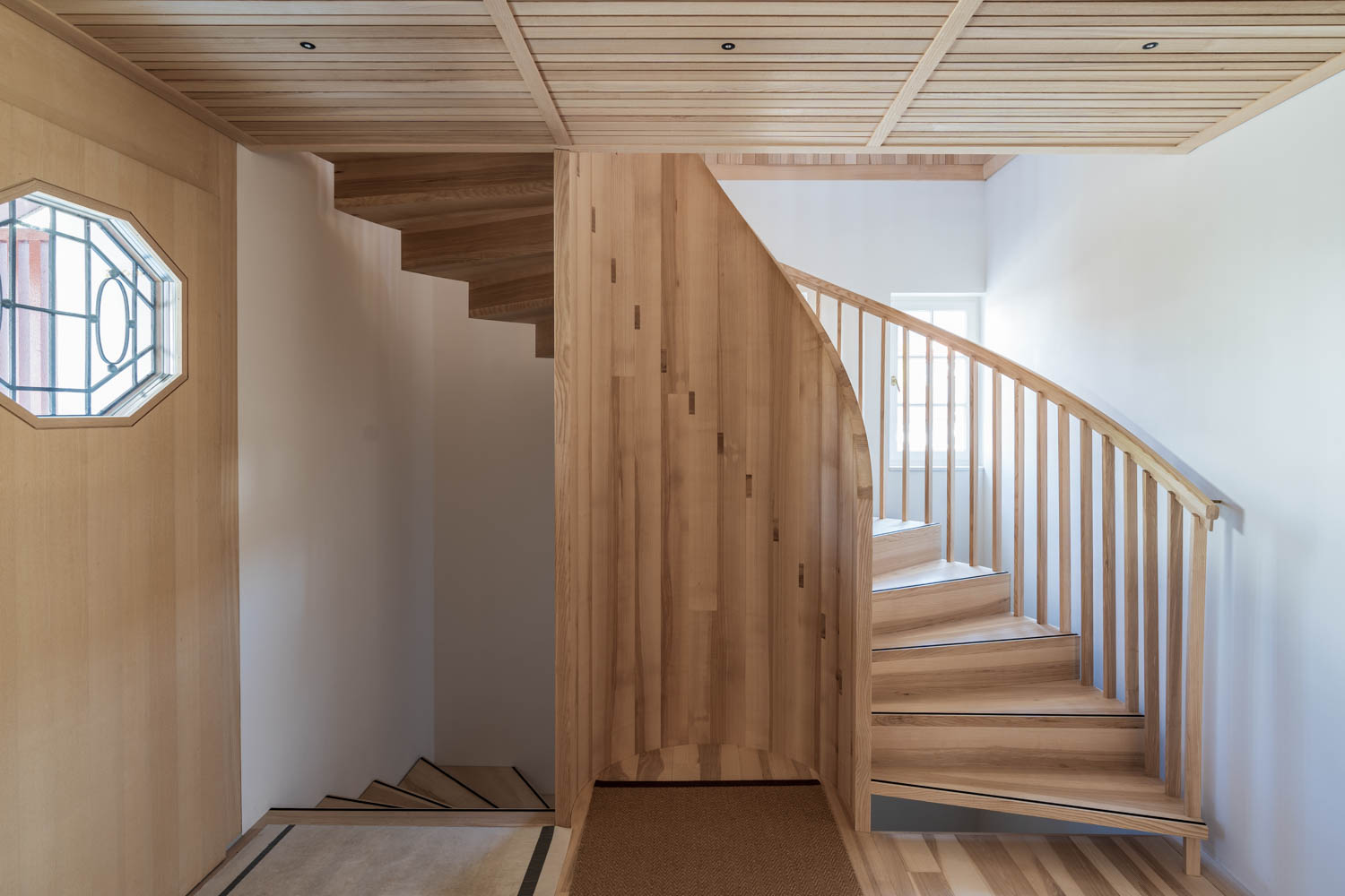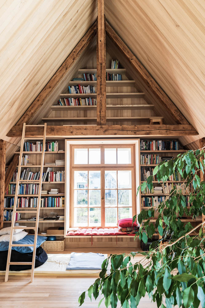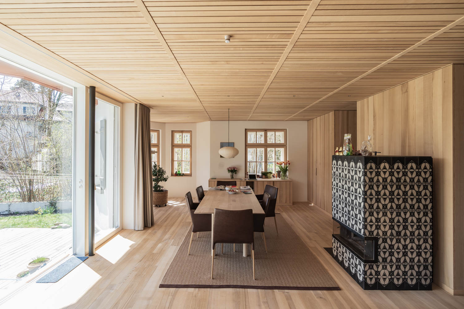Now it has been carefully restored and the floor plan carefully opened and the attic expanded. After exposing the timber frame construction it was necessary to renew its finely knitted facade cladding made of shingles and vertical formwork boards, while the original windows and shutters could be restored.