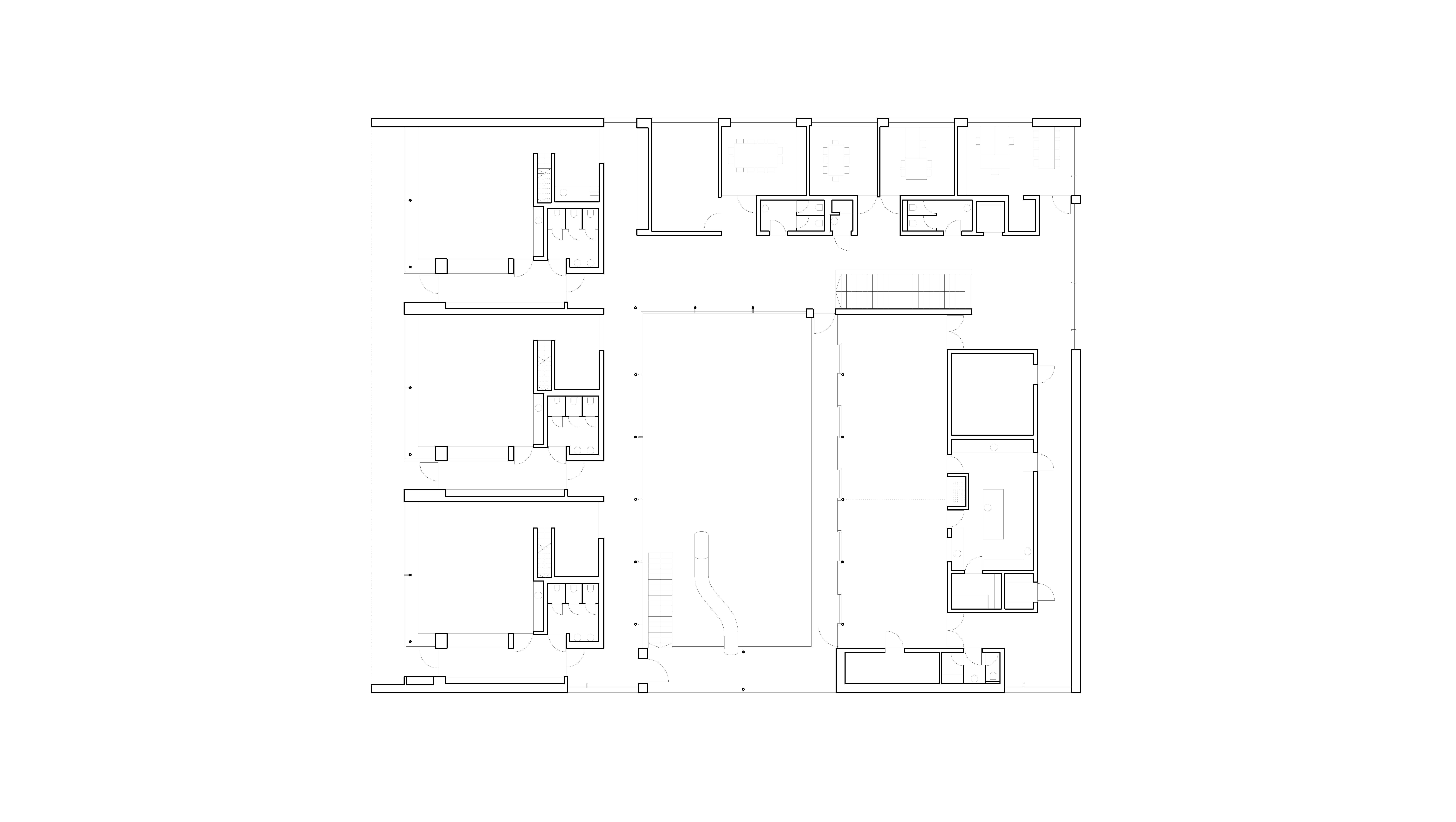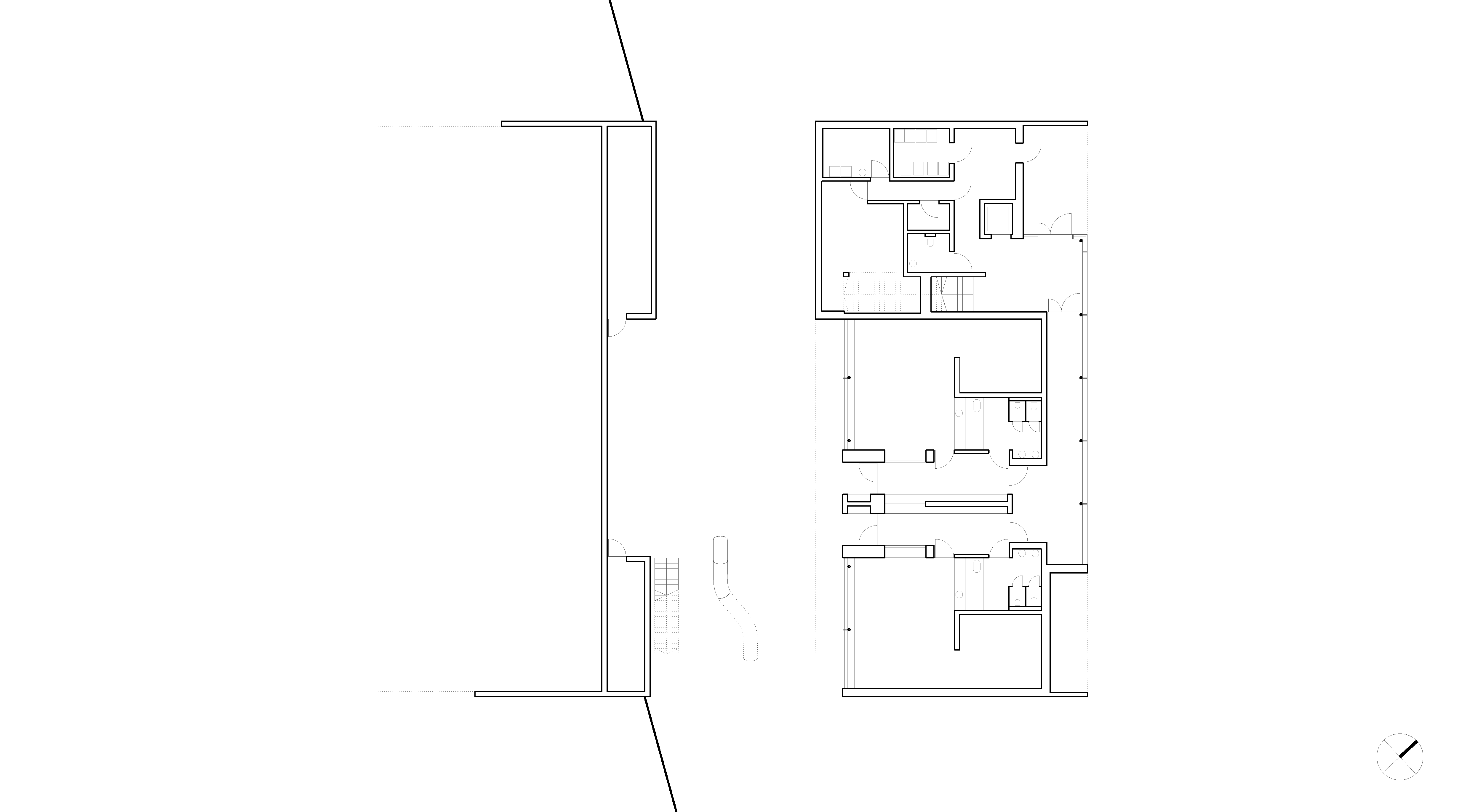 The western wing accommodates the administrative offices, counselling rooms, and staff areas, while to the southeast, a multipurpose hall with an adjoining kitchen provides flexible space for events and communal use. The clear spatial organisation of functional areas guarantees efficient circulation and intuitive day-to-day operations.