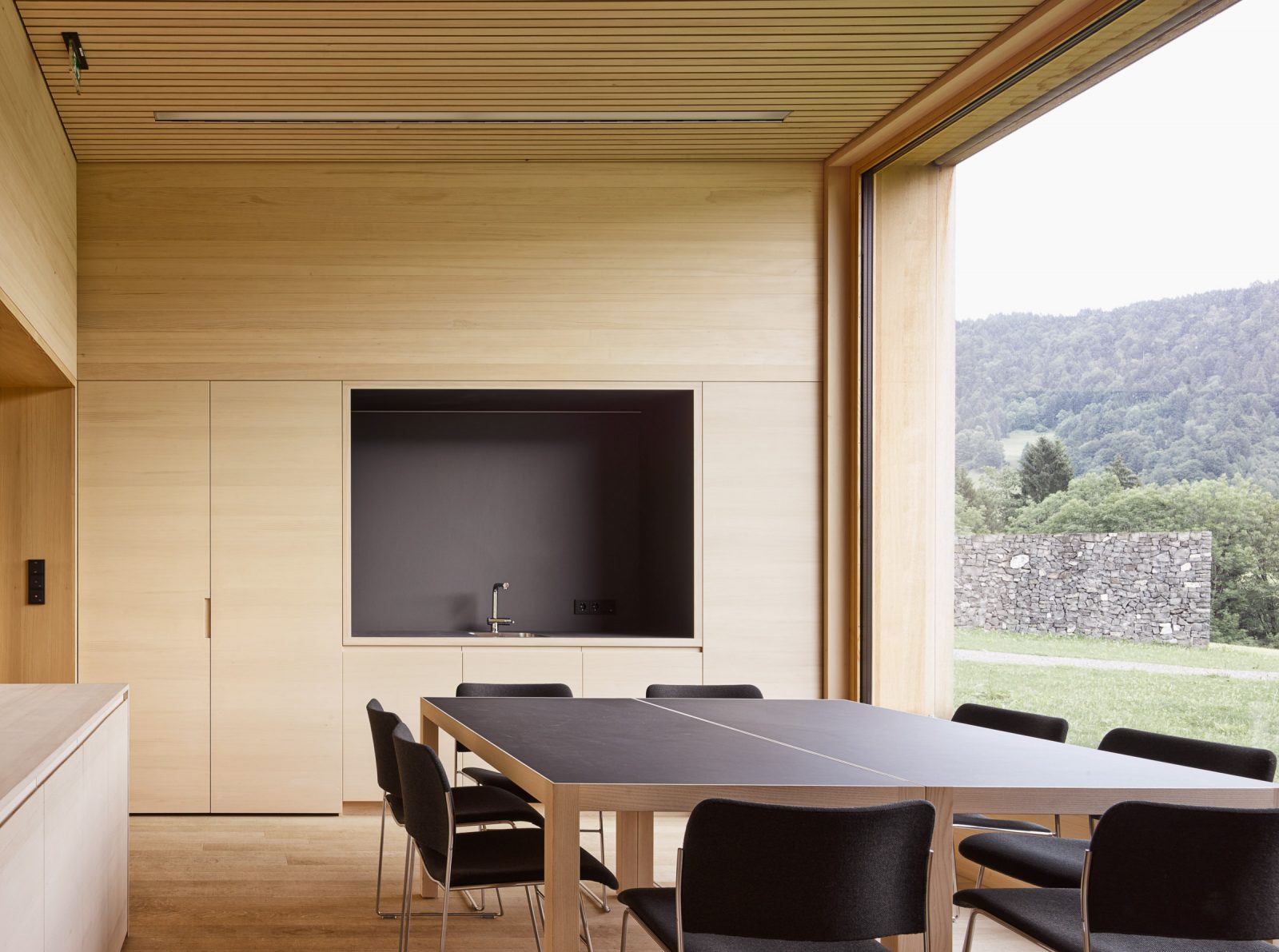 “For a long time, the Vorderwald was dormant” says Hirschbühl. “It was an opportunity to set up an active land policy. The community stopped urban sprawl and focused on the centre. With financial support from the state of Vorarlberg, we organised projects, brought in private parties to the table, and engaged with the community. The “Dorfhus” started in 1999: a shop, a hairdresser, a cafe, all with apartments above. The community renovated its parish hall, the church renewed the cemetery, it added residential buildings, and a bus stop with a large roof. In 2008, the three architects Hermann Kaufmann, Bernardo Bader and René Bechter of Bechter Zaffignani conducted a study to strengthen the centre. If you want to achieve something in Vorarlberg, you have to build a house.”