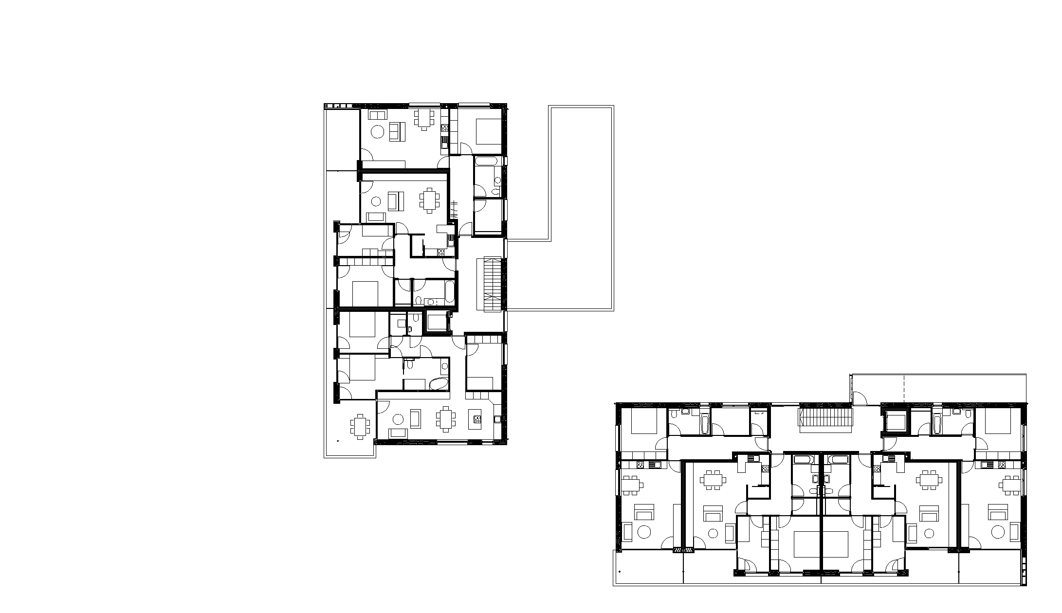 The main initiator of this development is the current mayor Arnold Hirschbühl, who also contributed the plot of land for this new venture. The two new buildings take their proportions and dimensions from the adjacent old farmhouse and form, with the farmhouse, an ensemble within the centre. Both houses have pitched roofs and a consistent natural timber finish. While the street-side building is social housing with rental apartments, the back house is a private condominium.