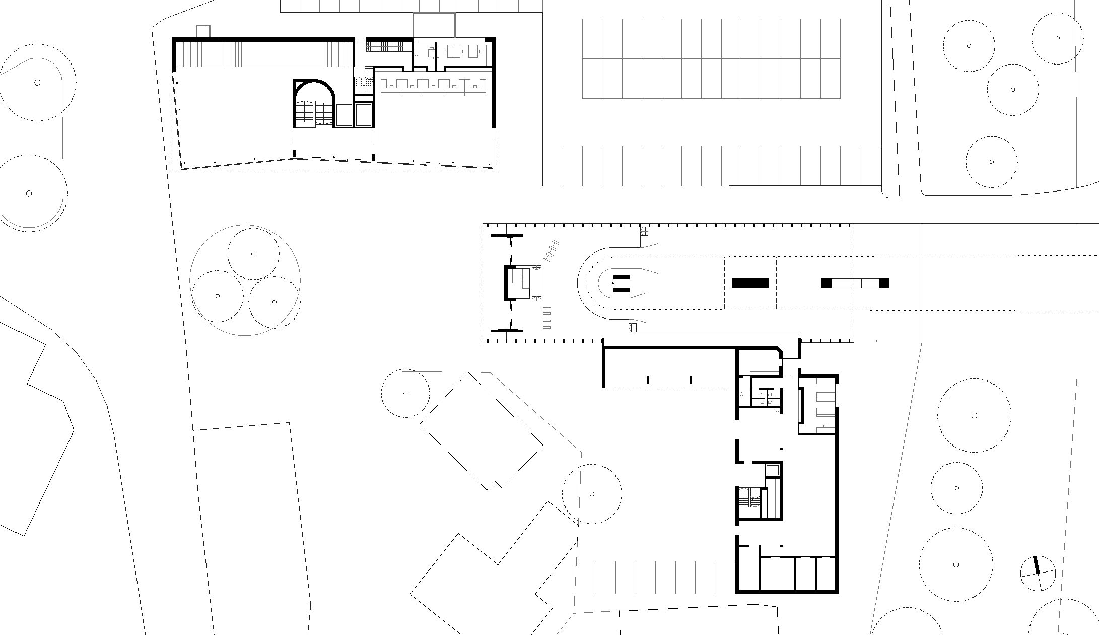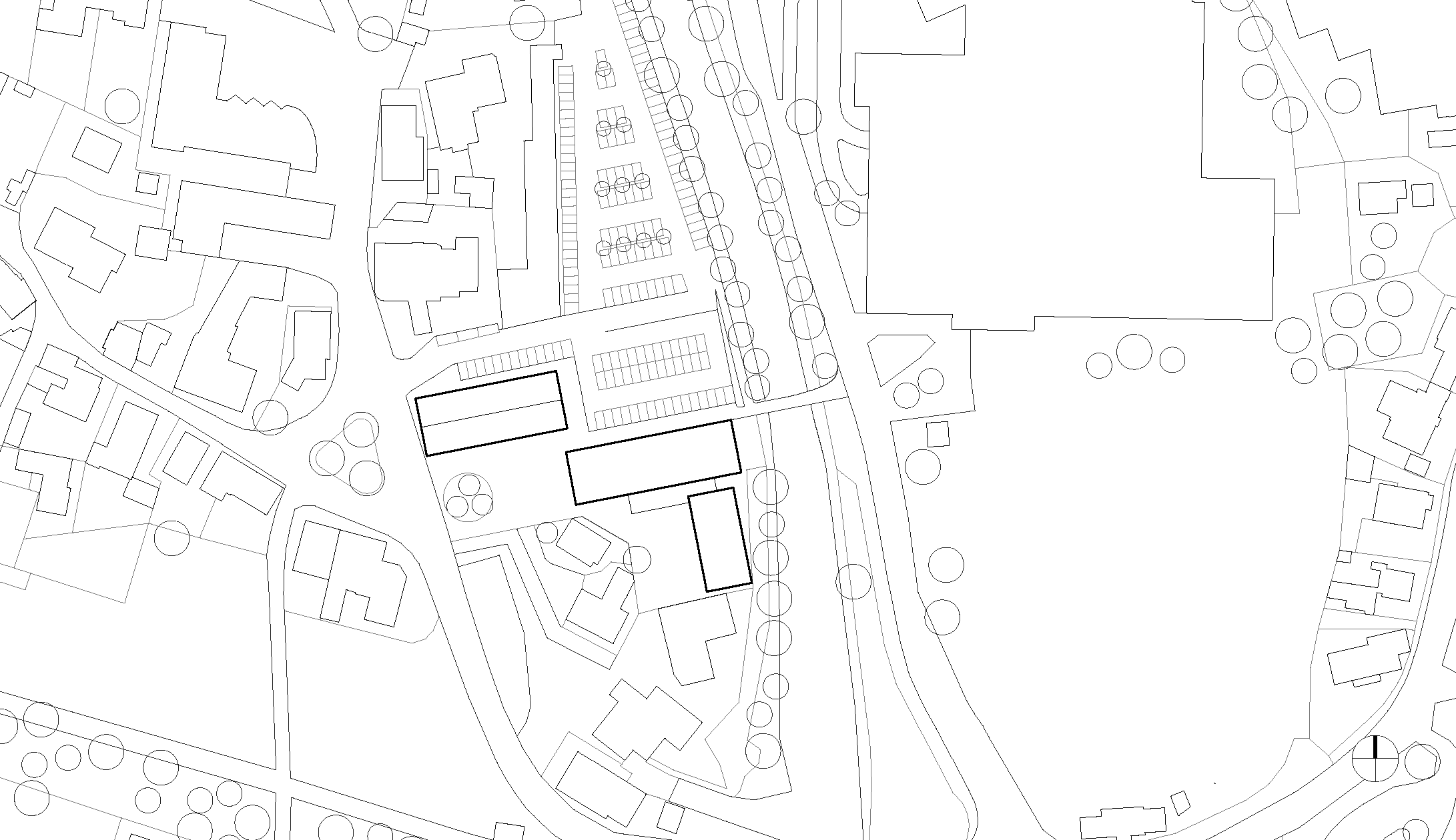 Its striking location in the centre of the village determines the basic urban and architectural concept of the project. In order to allow for a careful further development of the surrounding small-scale building structure, the various functional areas are distributed over three buildings. The carefully considered placement of the individual volumes organises the existing outdoor spaces and generates added value for the site.